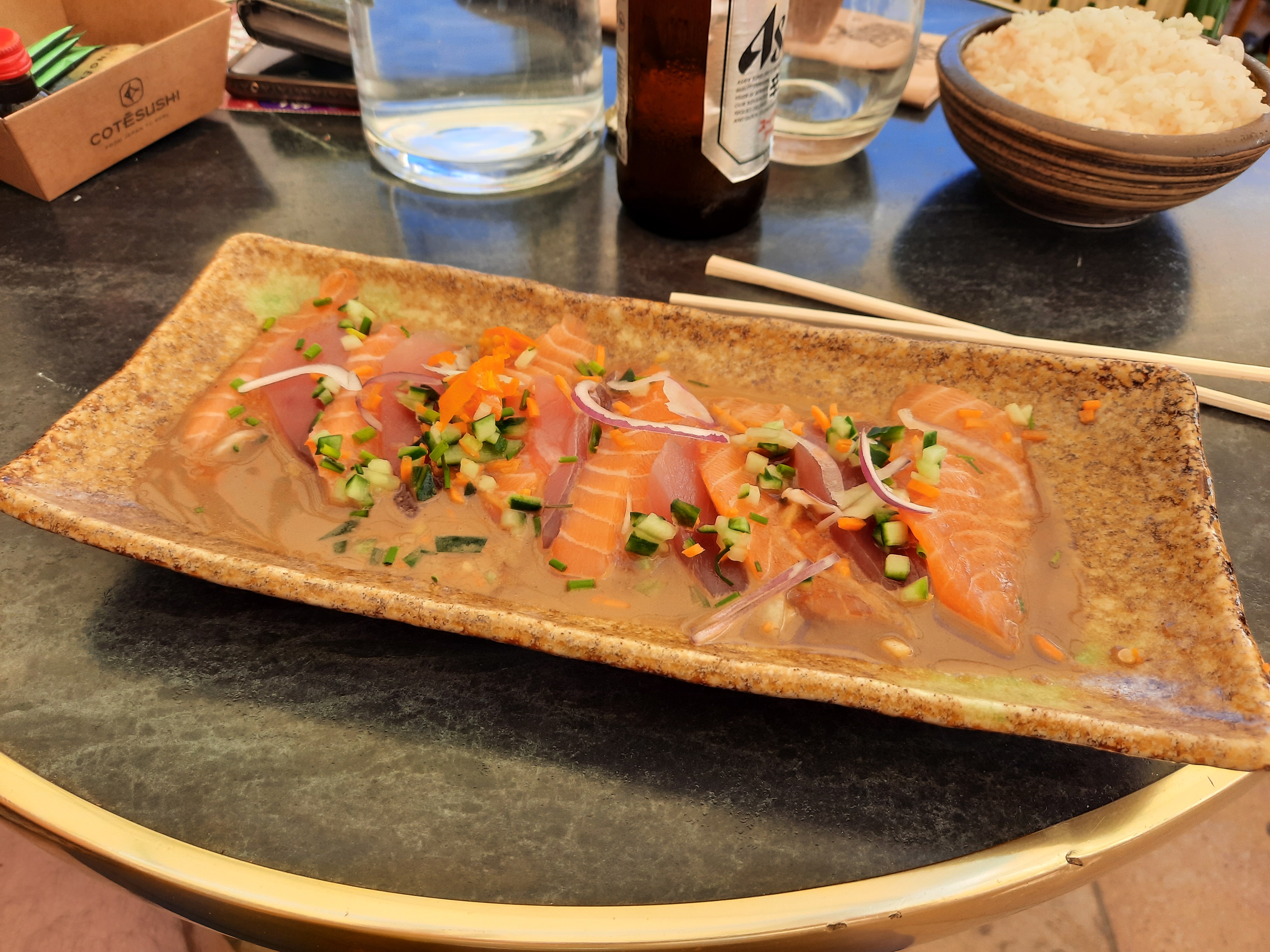 Nous ne connaissions pas cette enseigne. Nous nous sommes régalés de cette cuisine japonaise aux accents péruviens. En cela Côté Sushi se démarque des autres grosses chaînes de sushi en amenant des saveurs d'ailleurs à un ailleurs maintenant bien connu.