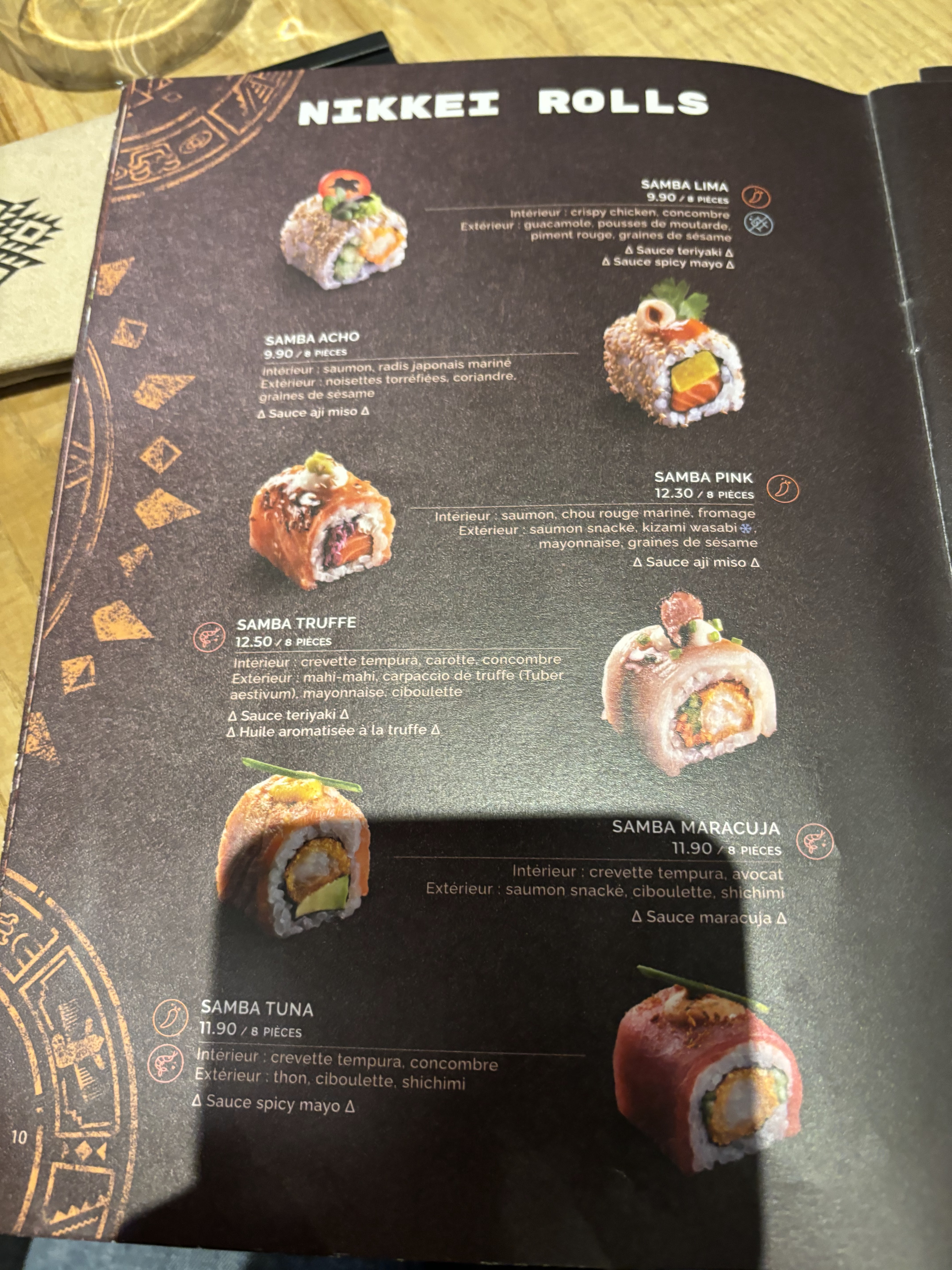 Les sushis et makis étaient excellents et la fusion Pérou/Japon est un concept légitime. Quelques petits problèmes facilement réparables. Aucun effort particulier sur la présentation spécifique du plat. Néanmoins les baguettes sont très pratiques et les tables sont bien dressées Les menus sont sympas et la décoration est inspirée du Pérou. Mention spéciale aux alpagas à l'entrée. Une jambe était cassée pour un, donc elle a pu être réparée rapidement Les toilettes ne fonctionnaient pas au moment de la visite. La limonade n'était pas vraiment savoureuse Presque un 5 étoiles mais c'était légèrement décalé. Facilement réparable et n'hésitez pas à l'essayer. Cela pourrait être une note parfaite si les détails sont pris en compte