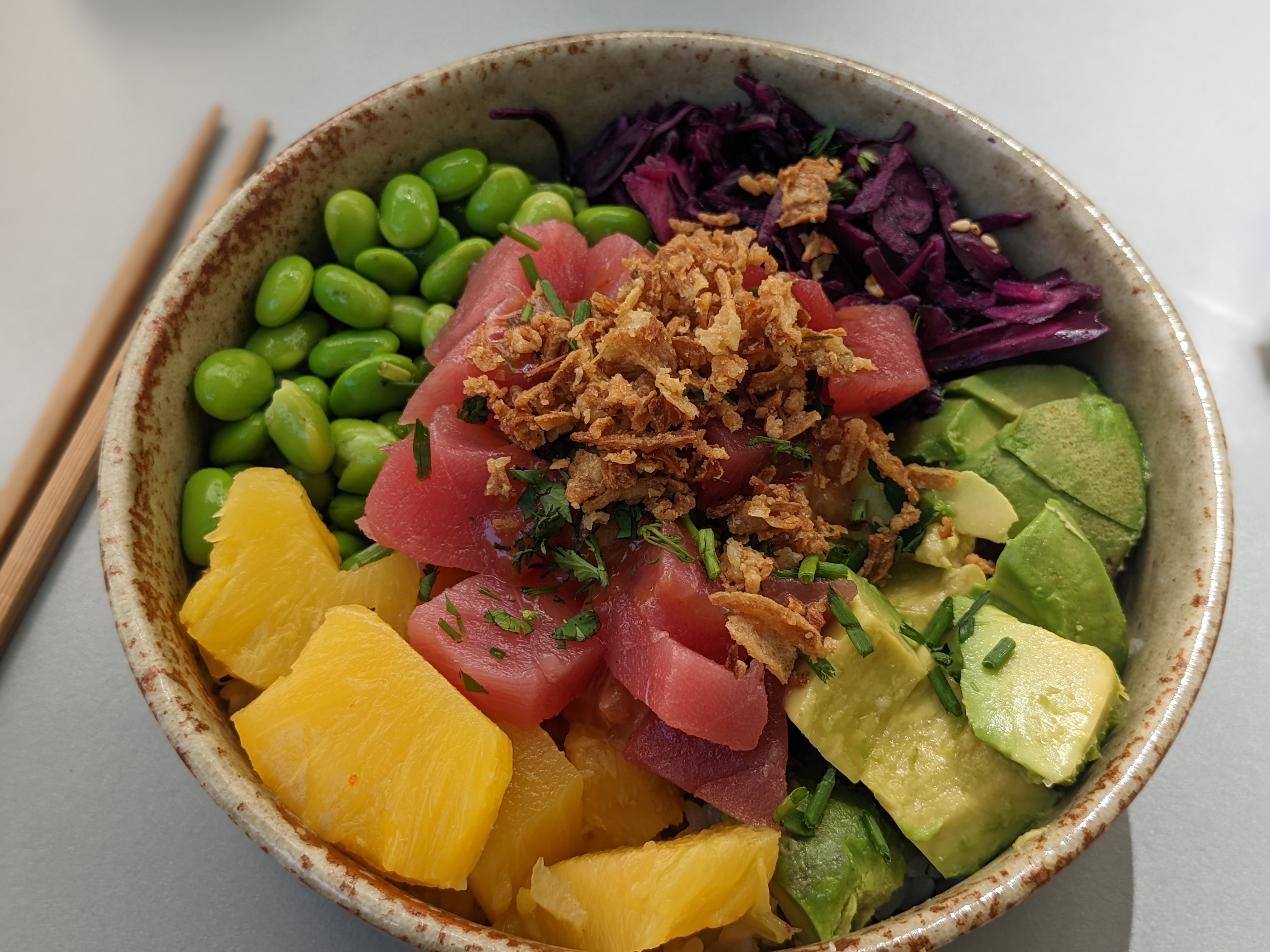 Excellente option de déjeuner japonais et péruvien. J'adore leur poke bowl.
