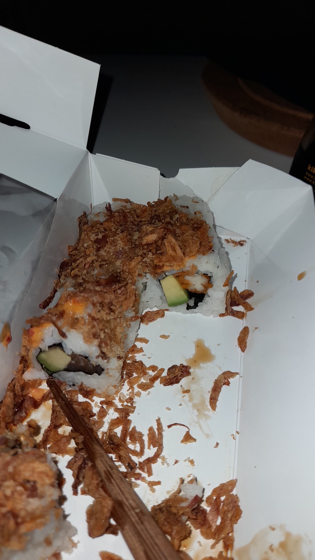 Très déçue , aucun goût , les californias rolls saumon avocat sont ultra petits , le riz est super dur ….