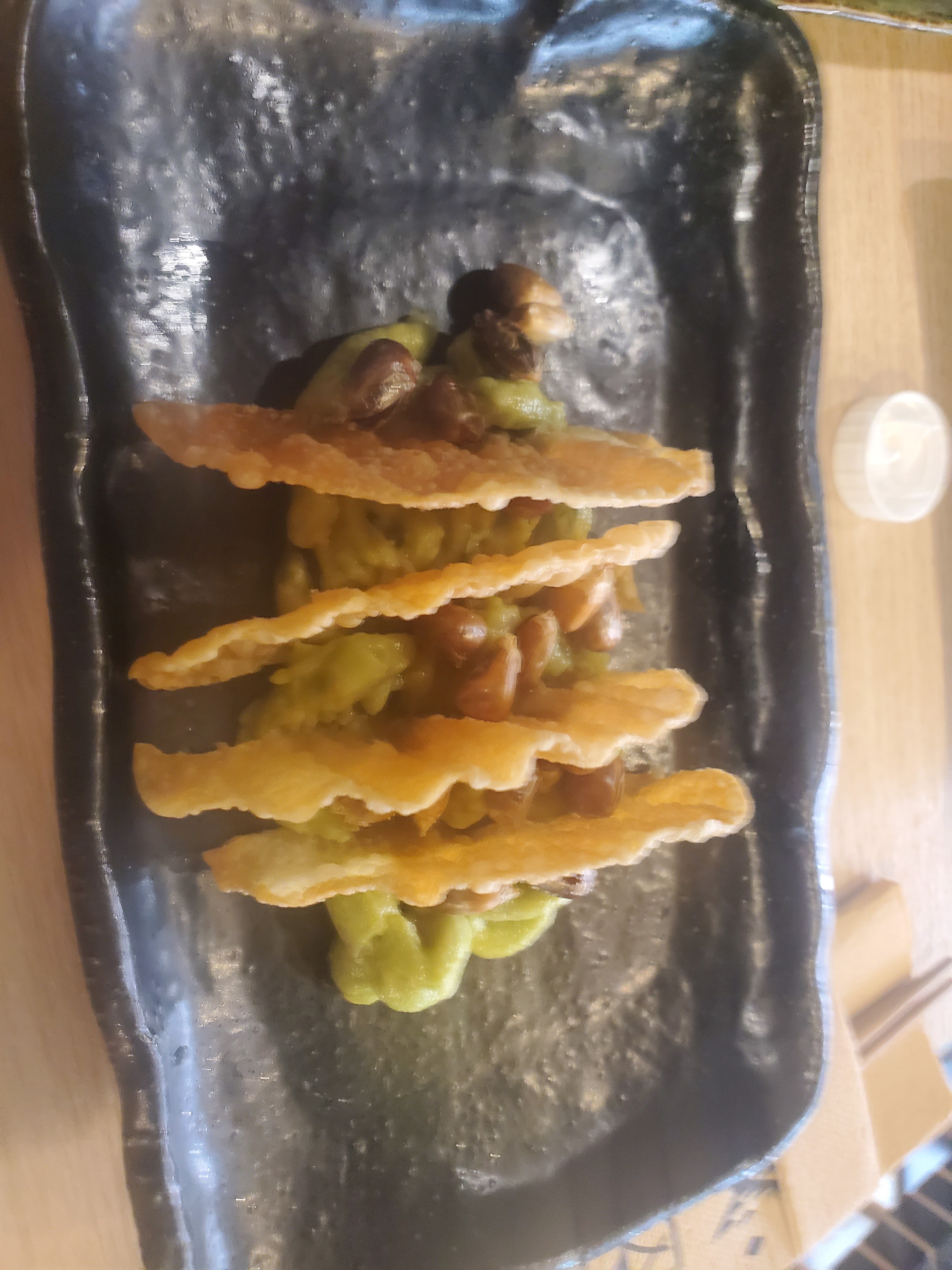 Visuellement parlant, les suhis semblent très intenses en saveur, mais en bouche ils sont très léger, donc j'étais un peu déçue mais j'ai rehaussé avec le wasabi et sauce soja, l'avantage est que j'ai pu finir sans être écœurée. Par contre portion petites ! Sinon, Je trouve le prix abordable pour les créations originales, service bien, lieu propre et sympa