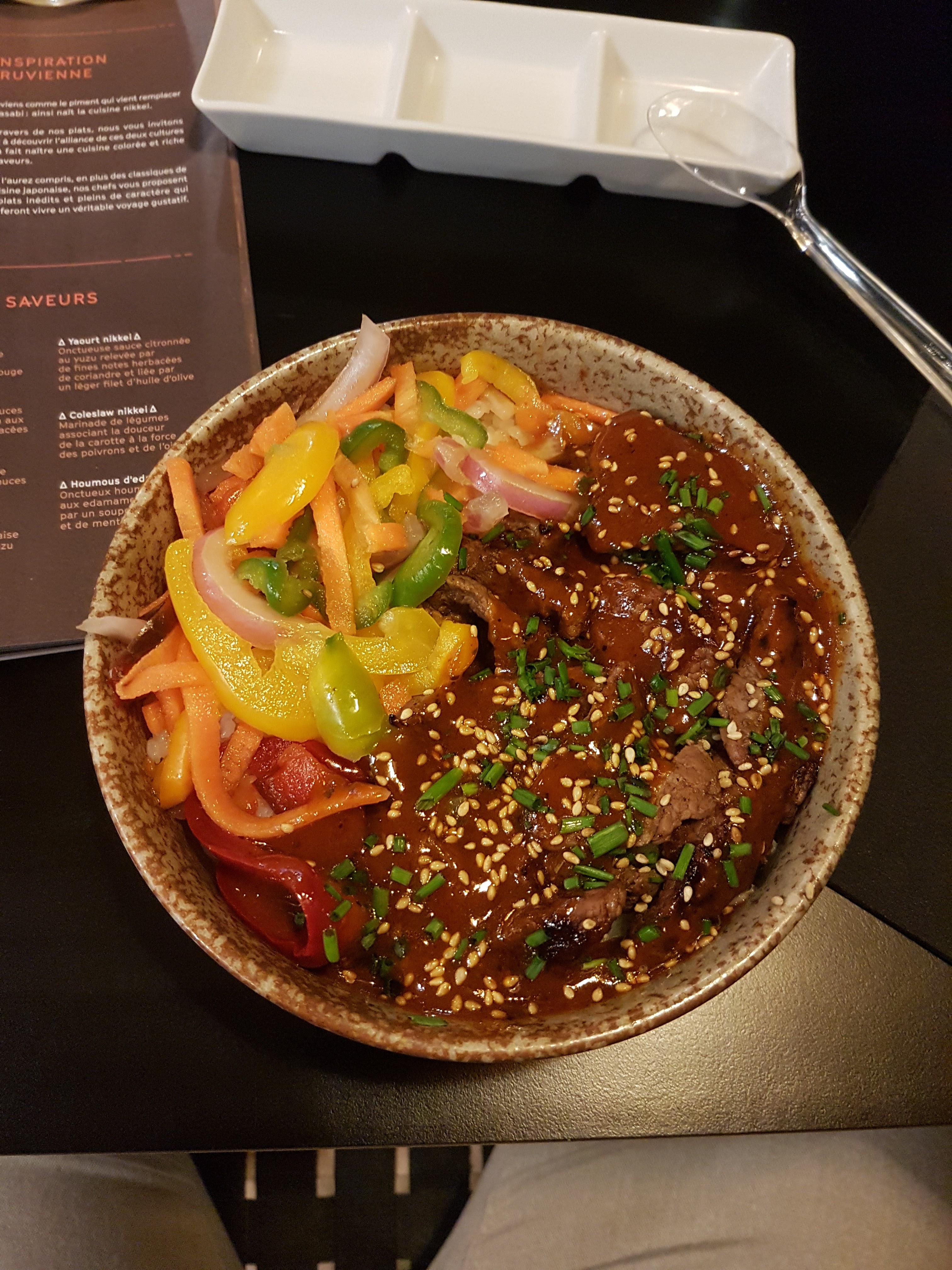 Laissez vous emporter par le mélange des saveurs japonnaise et péruvienne. Bon accueil, les tables sont plutôt bien disposées. Le service est rapide et les plats sont bons. J'ai trouvé la viande de bœuf de mon plat (Donburi beef) un peu dure mais sinon dans l'ensemble tout est correct. Une belle découverte avec la bière péruvienne au quinoa proposée.