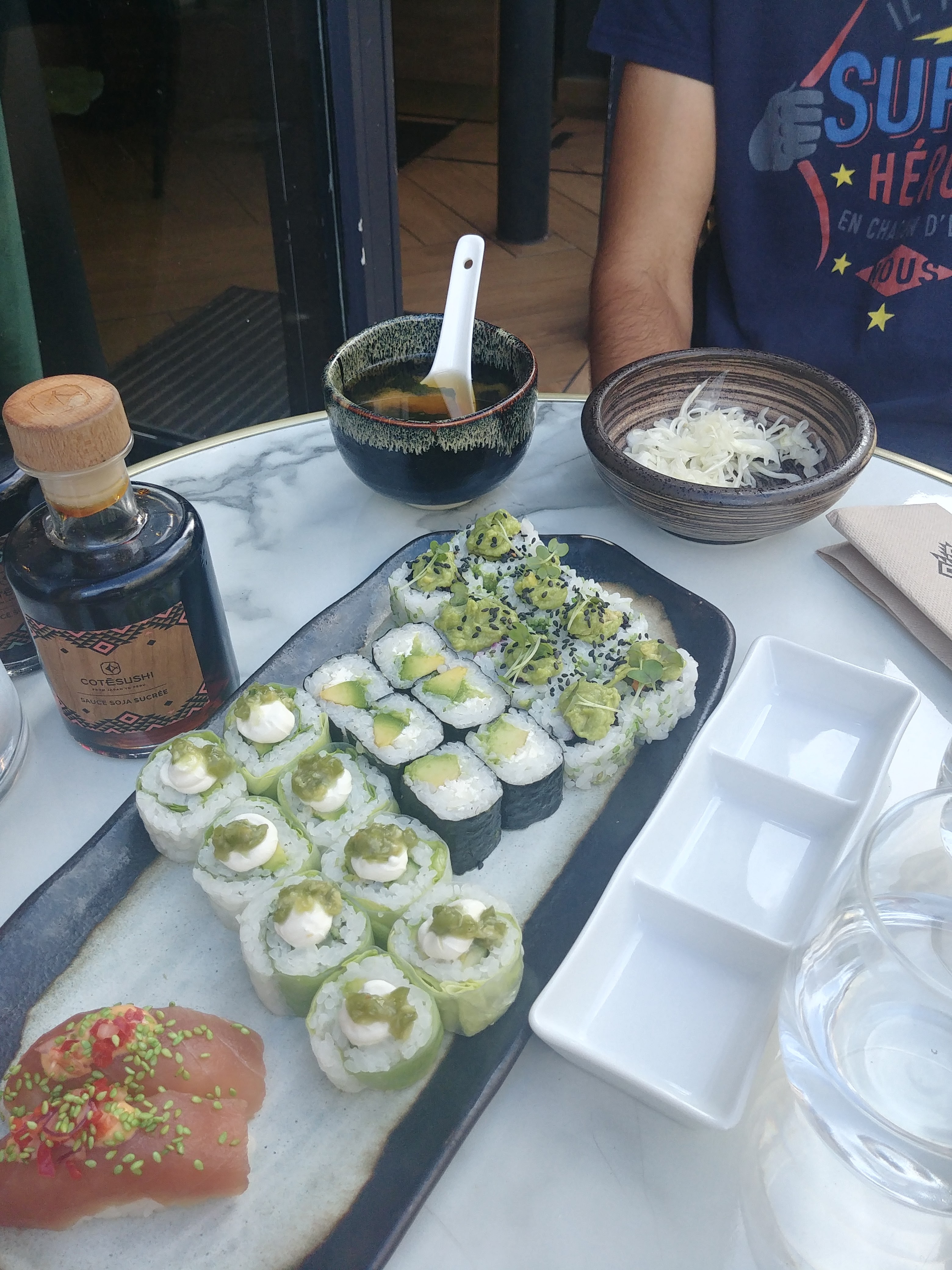 Franchement la nourriture est très bonne les plats sont super bien présenté et le manager est très sociables franchement je recommande fortement côté sushis de Suresnes 👌🏾