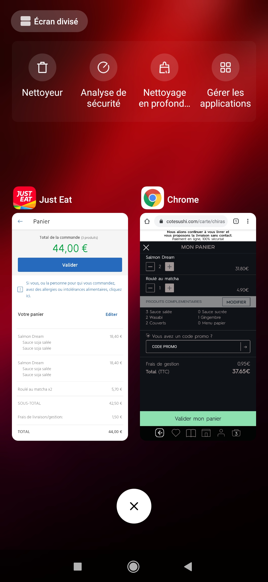 Malheureusement très decue... J’ai pourtant commandé chez vous, je pense, 50 fois, et je vois depuis quelques mois la qualité se dégrader... Modification du menu Éden Rolls de base que je trouvais top, puis suppression... Hier (commande le 13 mai vers 20h) j’ai tenté vos California crevette avec avocat : j’ai jeté la moitié. Un goût vraiment bizarre, pas sain. Une heure trente d’attente : les brochettes fromage étaient froides comme le reste... 41 euros, je suis vraiment vraiment déçue ! Je garde en mémoire mes commdandes d’il y a un an, où le goût était exceptionnel. Malheureusement je ne commanderais plus chez vous !
