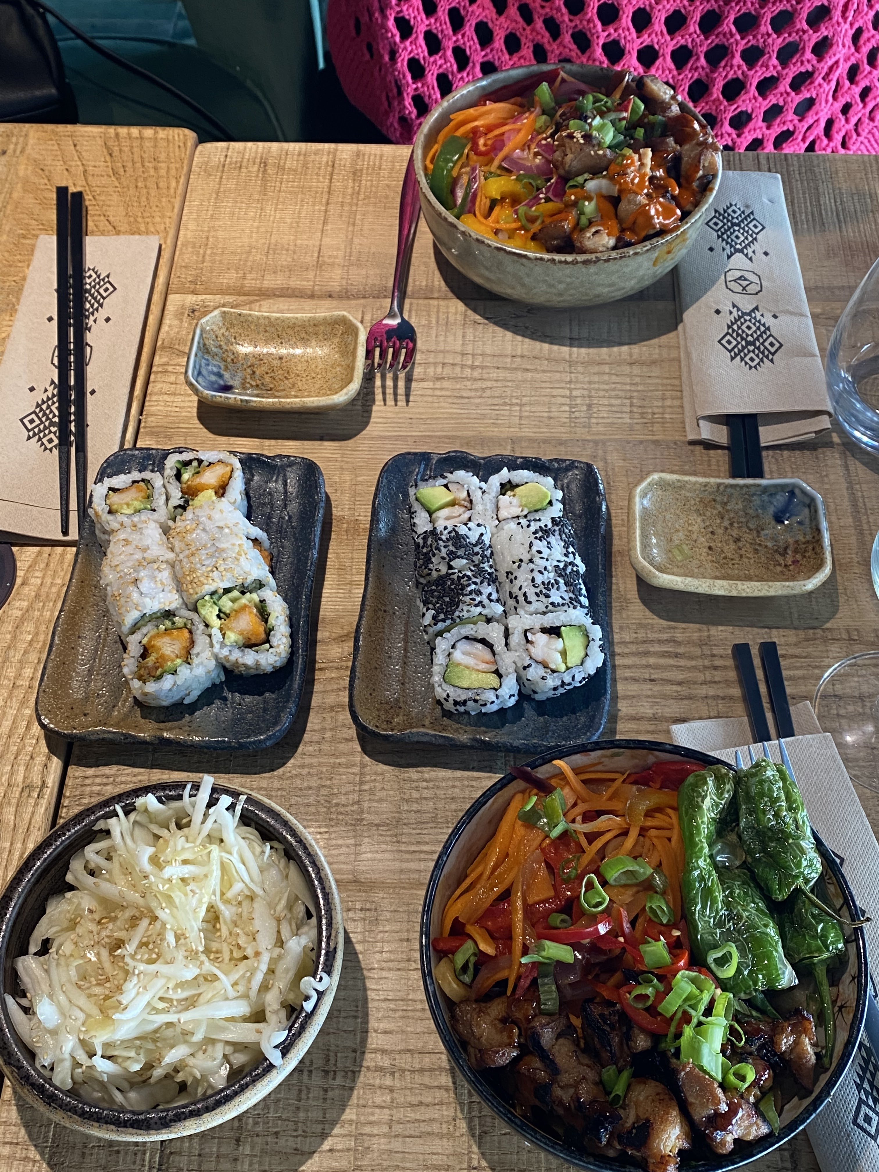Bon restaurant, un peu cher je trouve mais nourriture de bonne qualité. Ce qui est bien, c'est qu'il y a des alternatives pour les personnes qui n'aiment pas les sushis. Le personnel est très agréable !