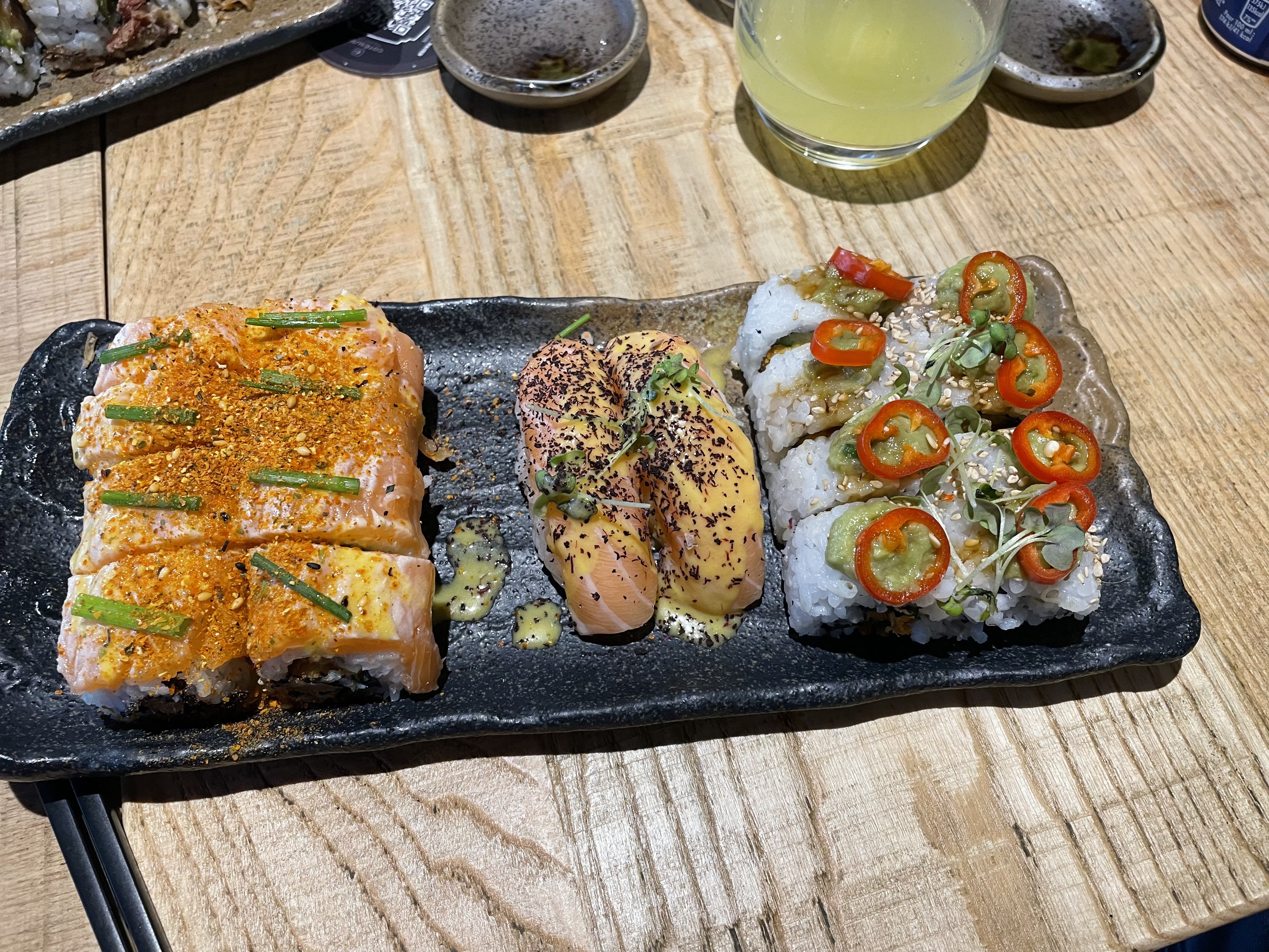 Première expérience culinaire pour ces sushis assez originaux. Tout était très bon, l'accueil et le service absolument formidables. La déco est sympa et la carte proposée est audacieuse et surprenante pour des tarifs qui restent assez corrects. À recommencer !