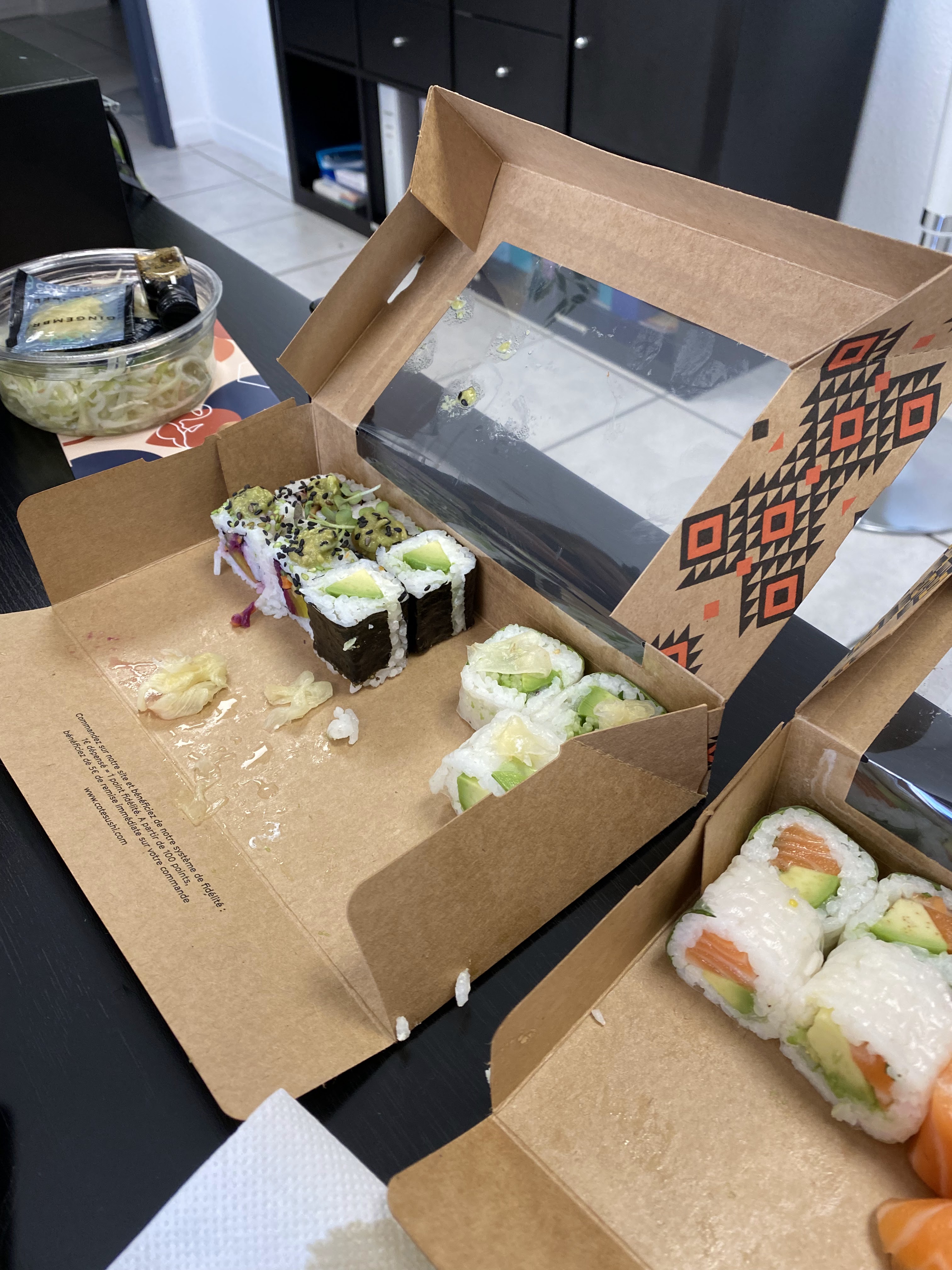 Sushis que j’ai commandé hier, la livraison était un petit peu longue (normal nous étions vendredi soir), produits frais et de qualité. Je me suis régalé sincèrement, pour le moment ce sont mes préférés de Toulon ! 😍 Je recommanderai les yeux fermés!