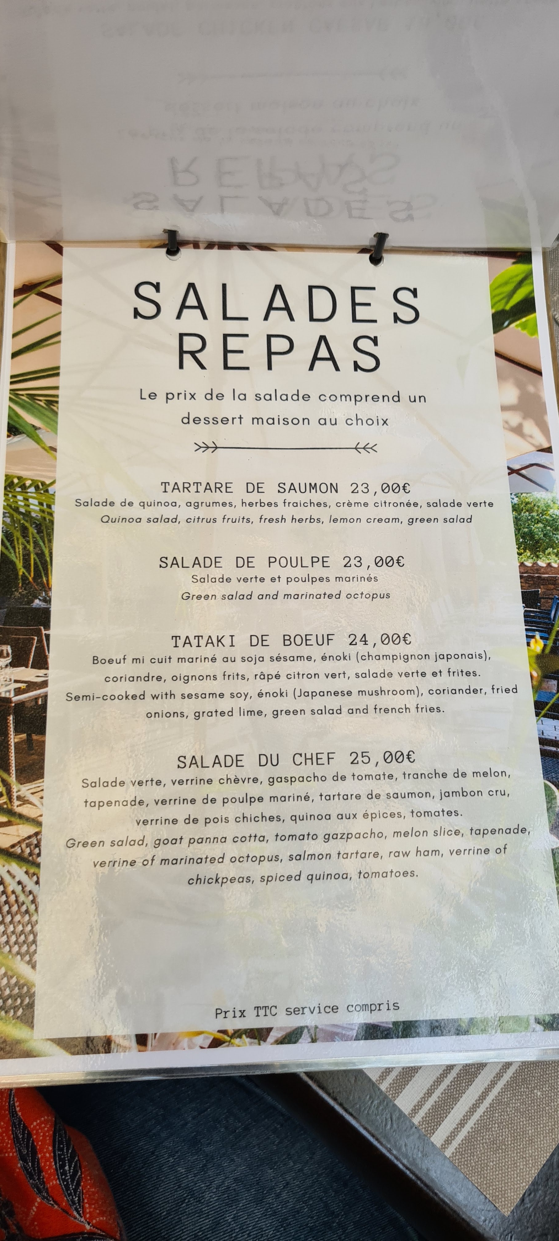 Supers salades, tartares extra. Et l'accueil, patronne et jeune génération, très pro et efficace. 79€ pour trois, plat+dessert et vin rosé local. Je recommande.