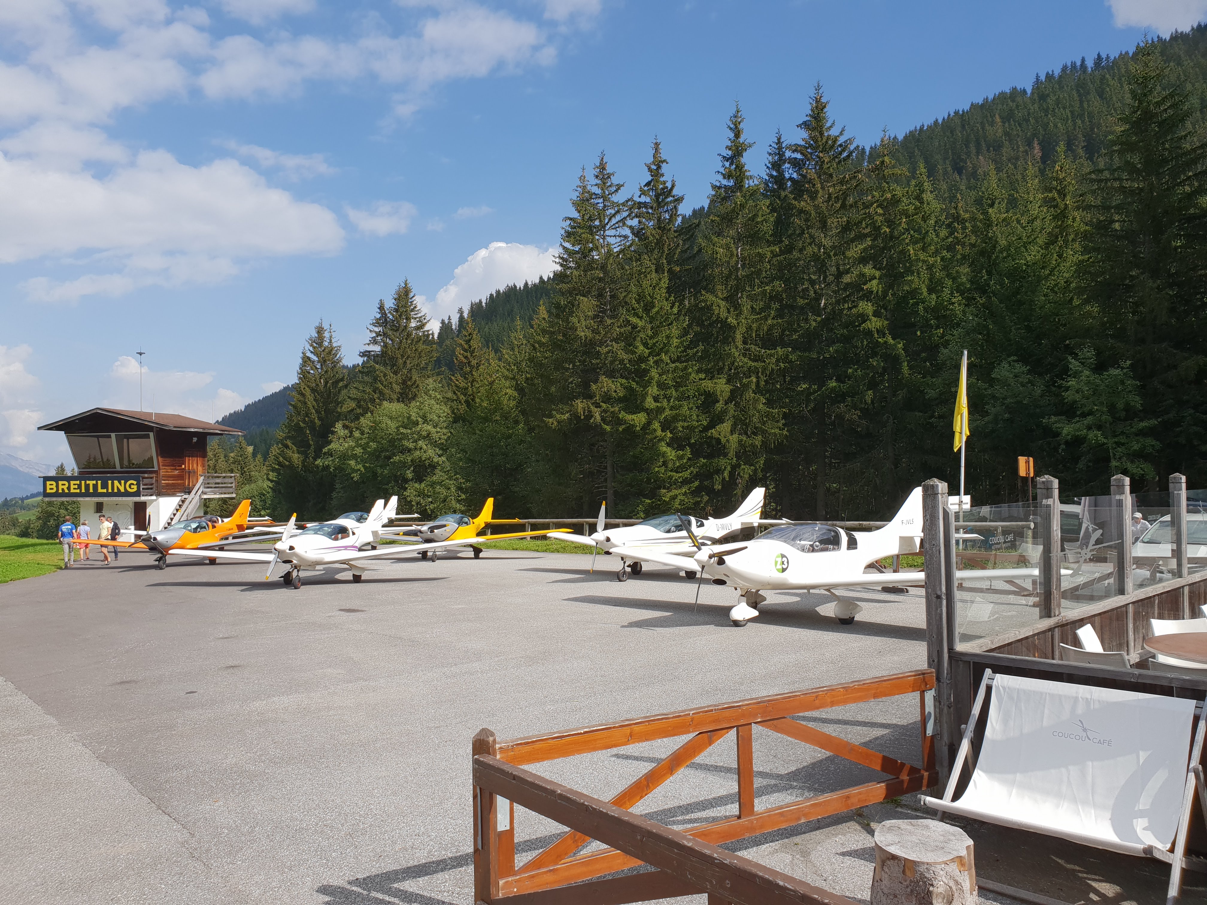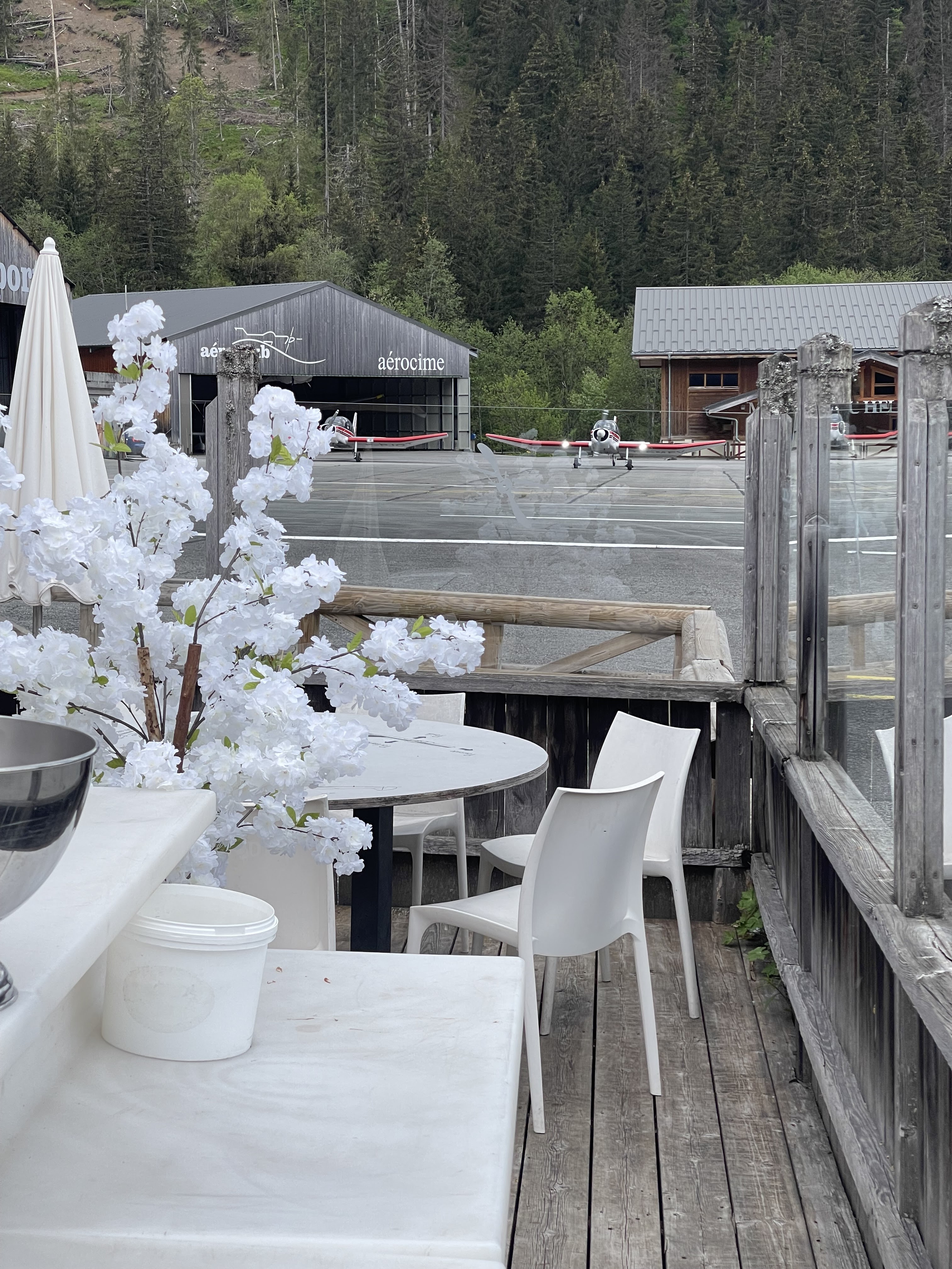 Terrasse très bien placée et insolite au bord de la piste de l altiport. Un spectacle de voir ces petits avions décoller et atterrir. Plats un peu chers pour ce que c est.