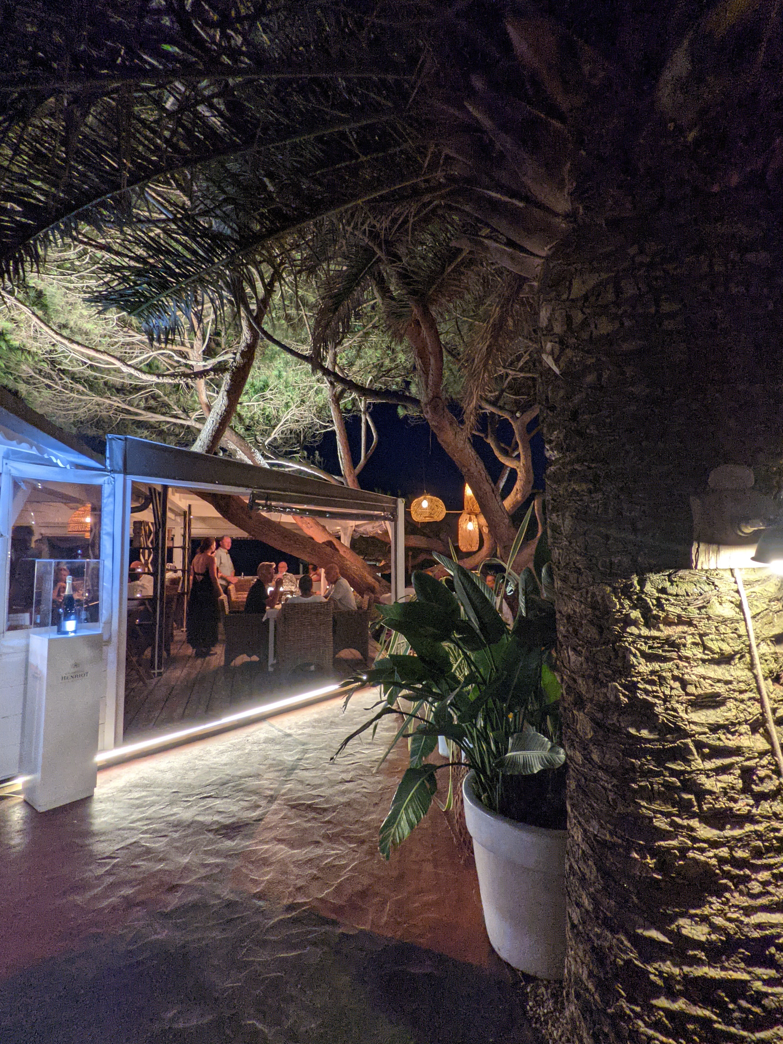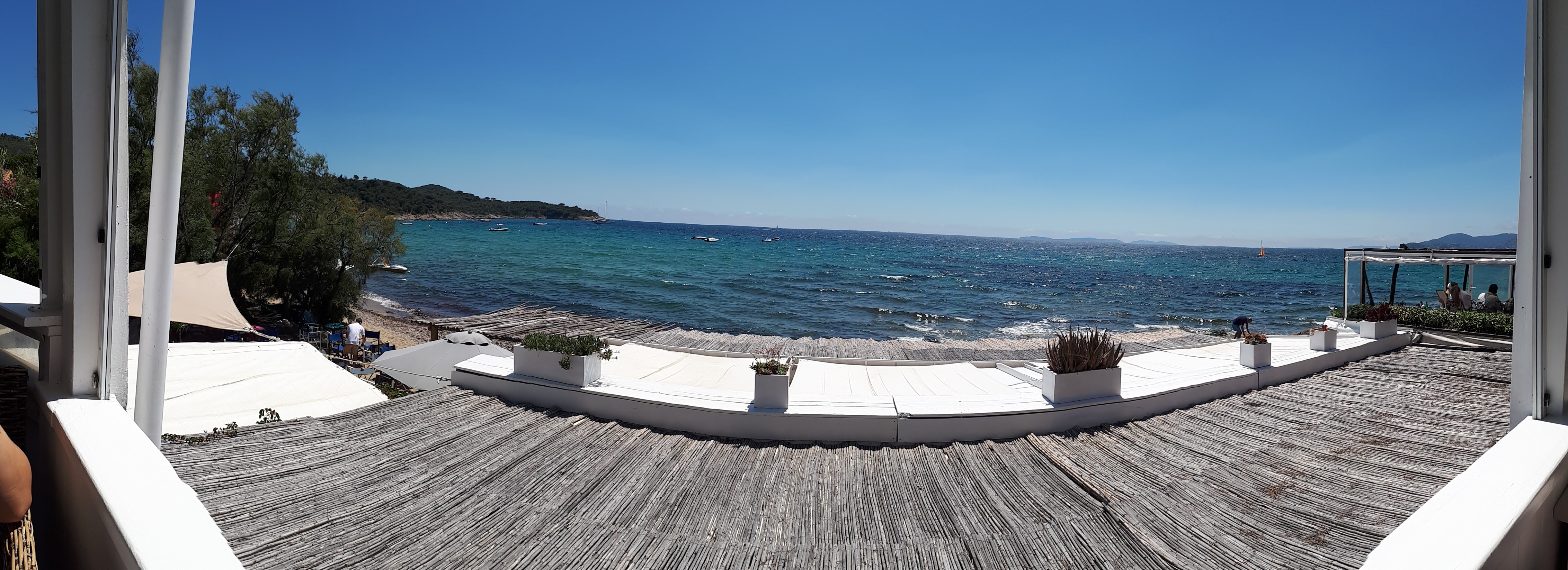 Tres bel endroit au bord de l eau...au milieu d une végétation surprenante.loin des tumultes Tropeziens .Tables entourées de branches servant de dossiers. Atypique et authentique....genial. Personnel disponible et souriant. Pour le repas, tres bon et bien servi. La plancha de langoustes,seriole,sole,accompagnements tout est bon et beau... Prix tres raisonnable..A connaitre absolument,