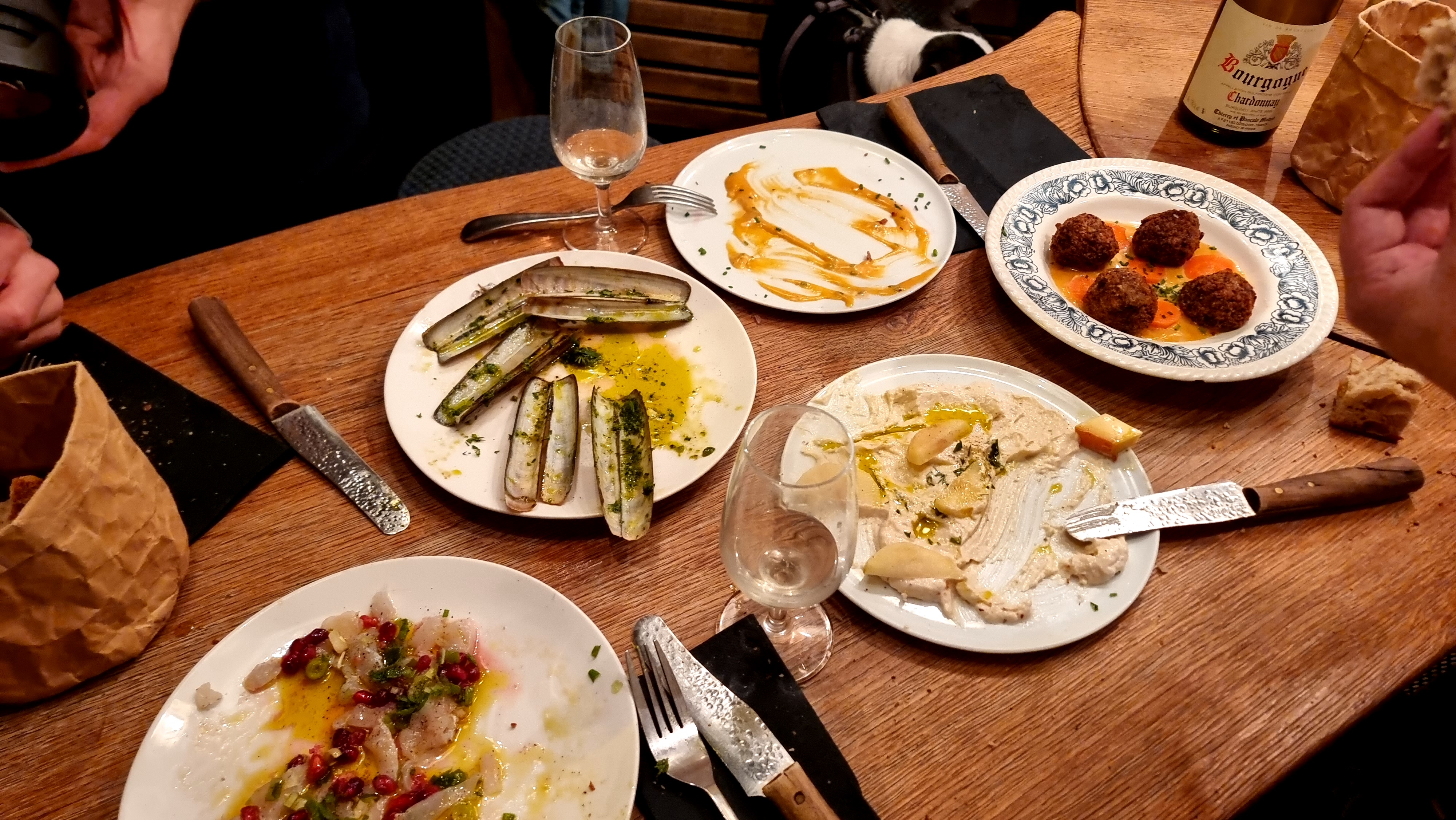 Excellente adresse. C’est la deuxième fois que je viens et nous avons été une fois de plus très bien reçu. Carte des vins de qualité et des assiettes à partager délicieuses. Mention spéciale pour les couteaux en persillades et pour le hot dog a l’agneau. Merci à toute l’équipe nous avons passé un super moment. Je recommande les yeux fermés.