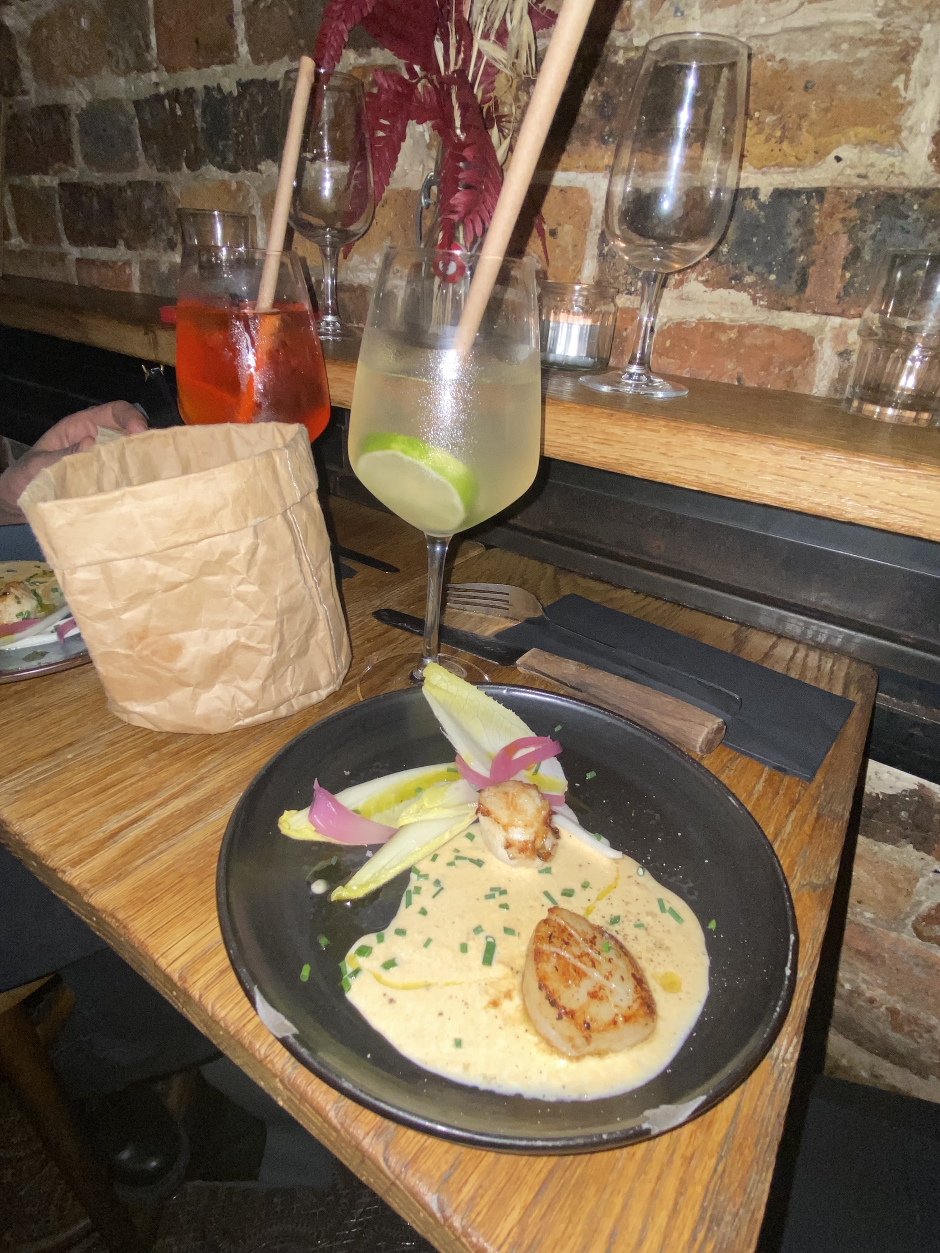 Vraiment très sympa! Très bonne adresse dans le 11e. La déco est belle, chaleureuse. Des formes en bois inattendues dans un espace en longueur. Les assiettes excellentes : Mention spéciale pour les hot dog d'agneau (une tuerie) et le poulpe très bien préparé ( et je suis difficile ). Le patron conseille et explique parfaitement l offre. Les vins sont très intéressants! Allez y!