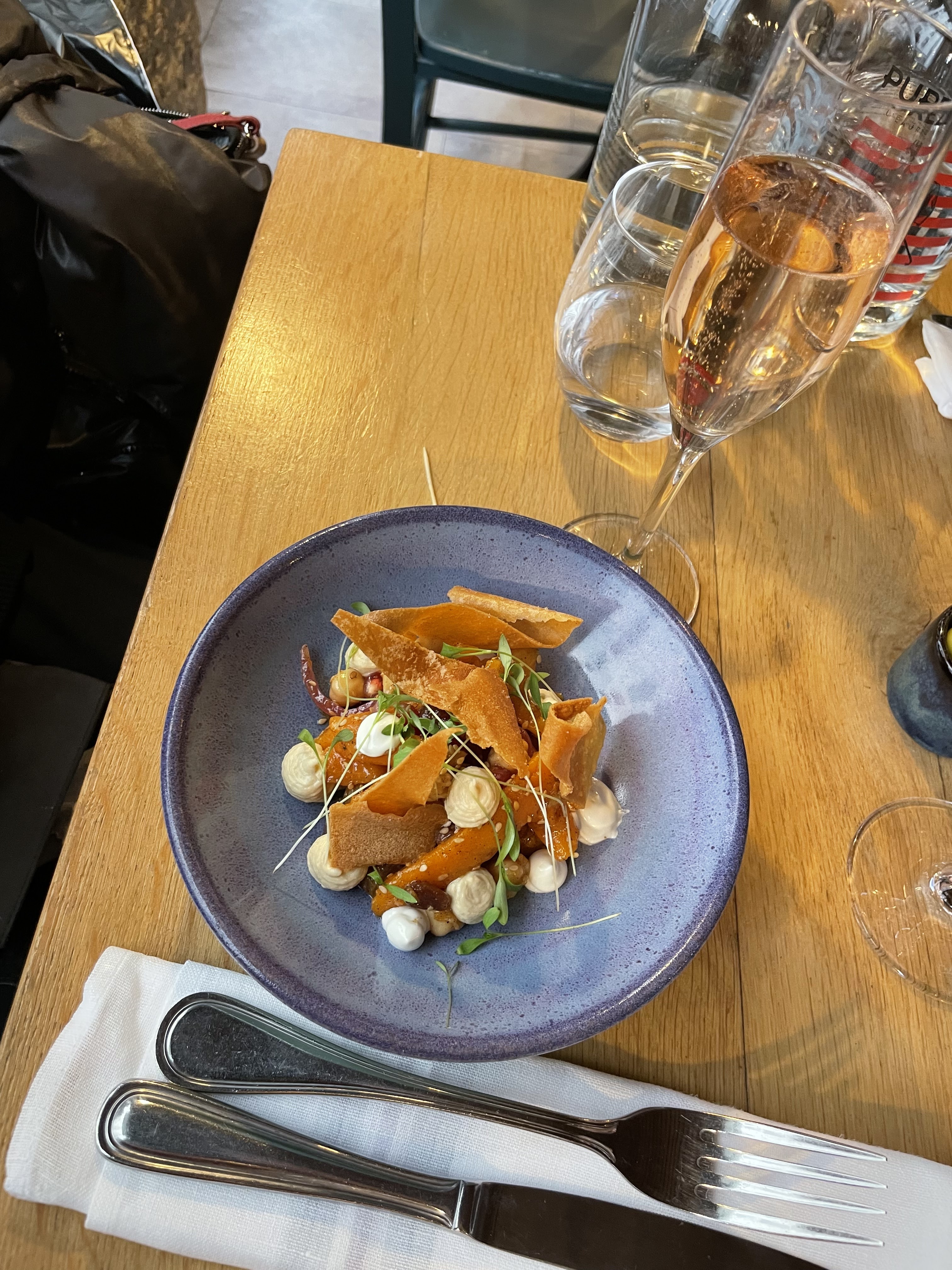 L'endroit est charmant, la cuisine originale et délicieuse... Dommage que l'accueil soit venu saupoudrer tout cela d'une ambiance désagréable 😔 Madame, lorsqu'on appelle pour demander si les animaux de compagnie sont acceptés, prenez la peine d'informer toute votre équipe que ça ne convient pas. Ça nous aurait évité des oeillades de réprobation tout au long du repas...