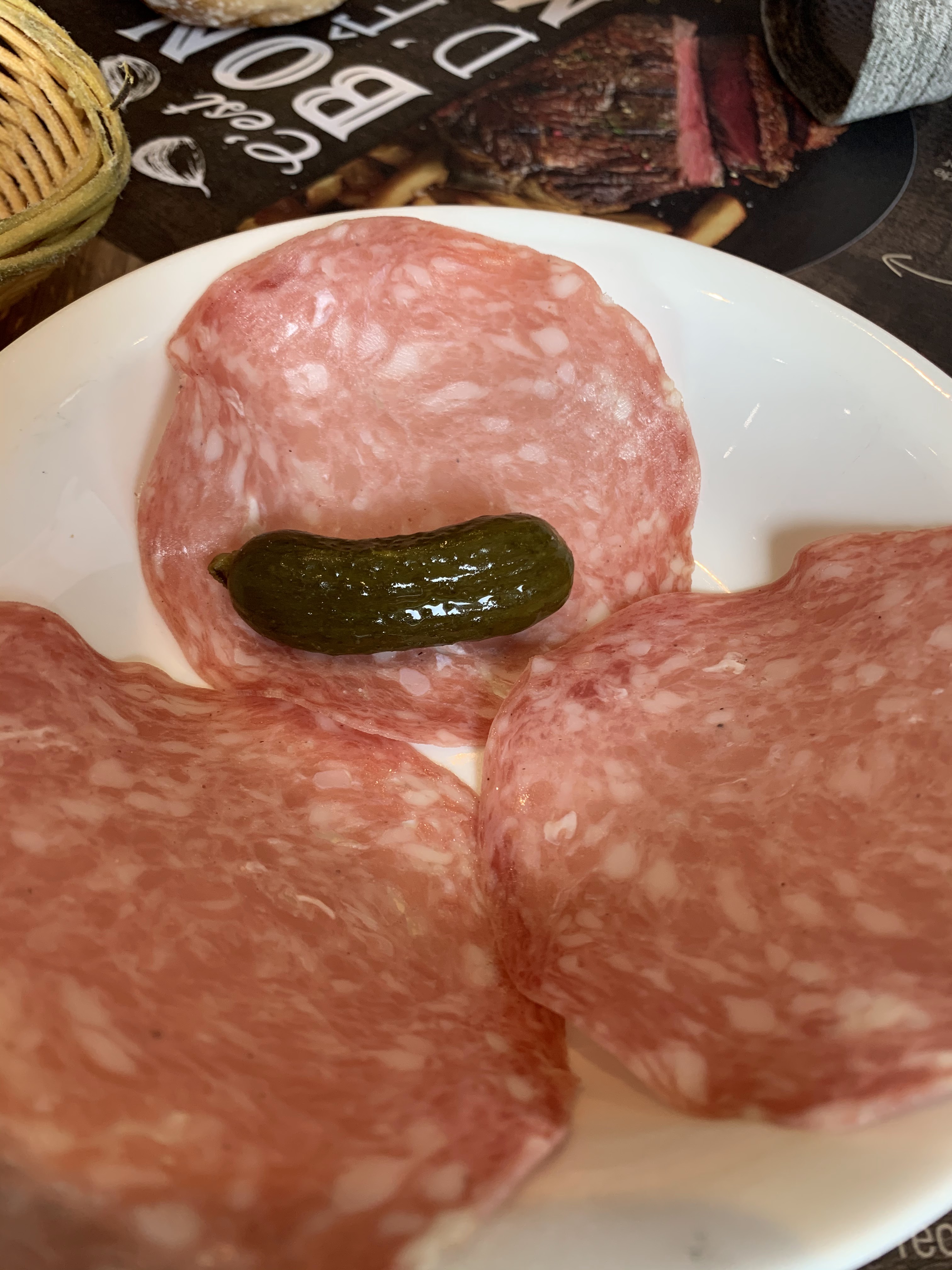 Une nouvelle carte depuis le 4 mai. Toujours les grands standards ! Andouillette, Entrecôte, Jambon grillé...