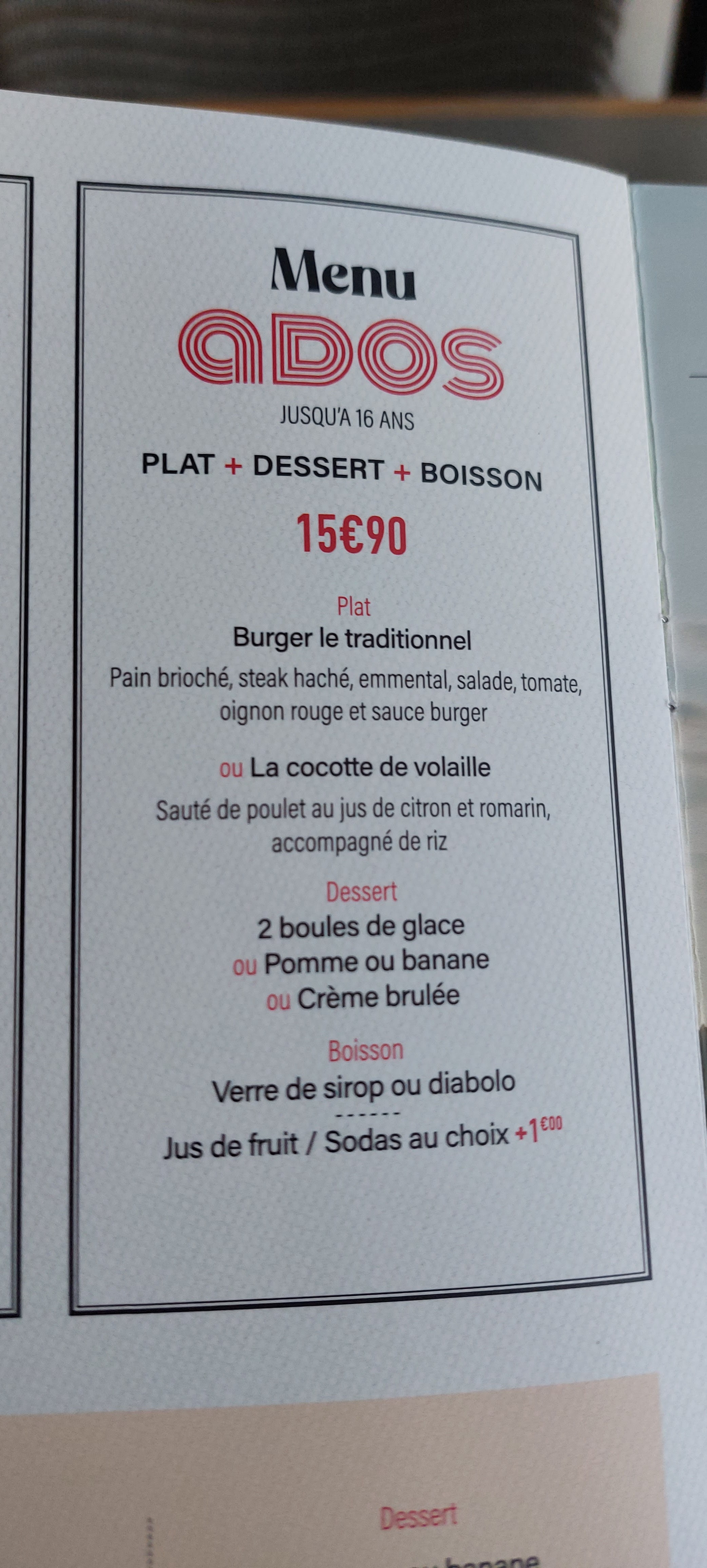 Pas tres arrangeant sur l addition. Nous qui allons souvent an courte paille la plupart du temps les commandes sont transformees en menus qd on prend plat desserts boissons !!! Ce serait au moins commercial