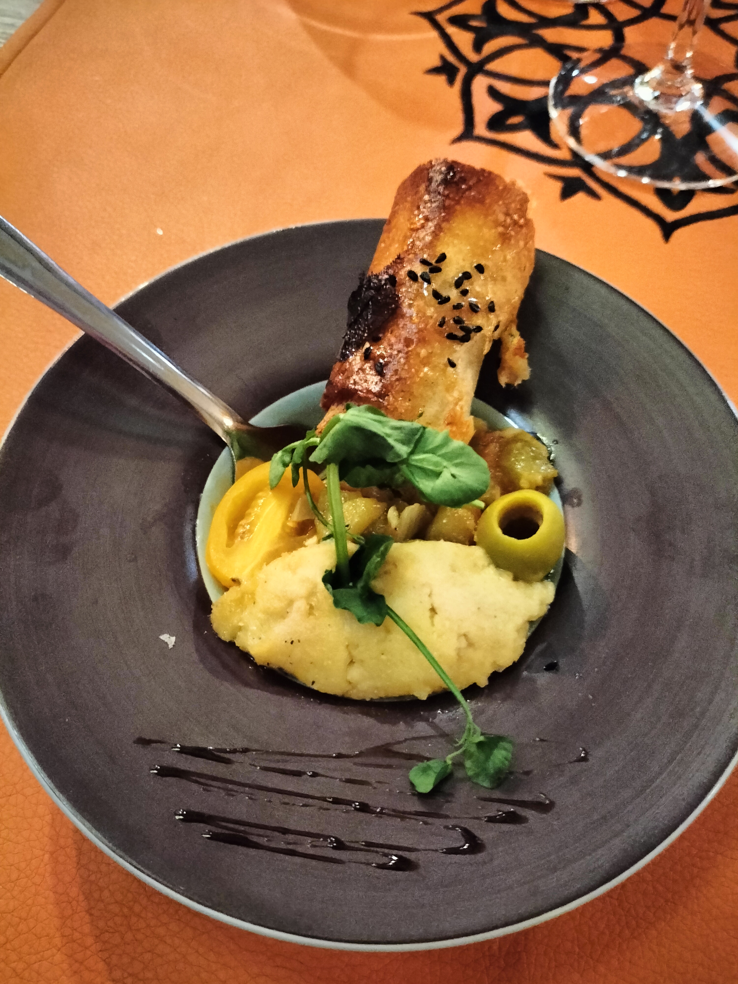 Un peu chaud , dans la salle même avant la régalade !! Choukran !! Mise en bouche tajine royale 3 poissons ...un sans faute !