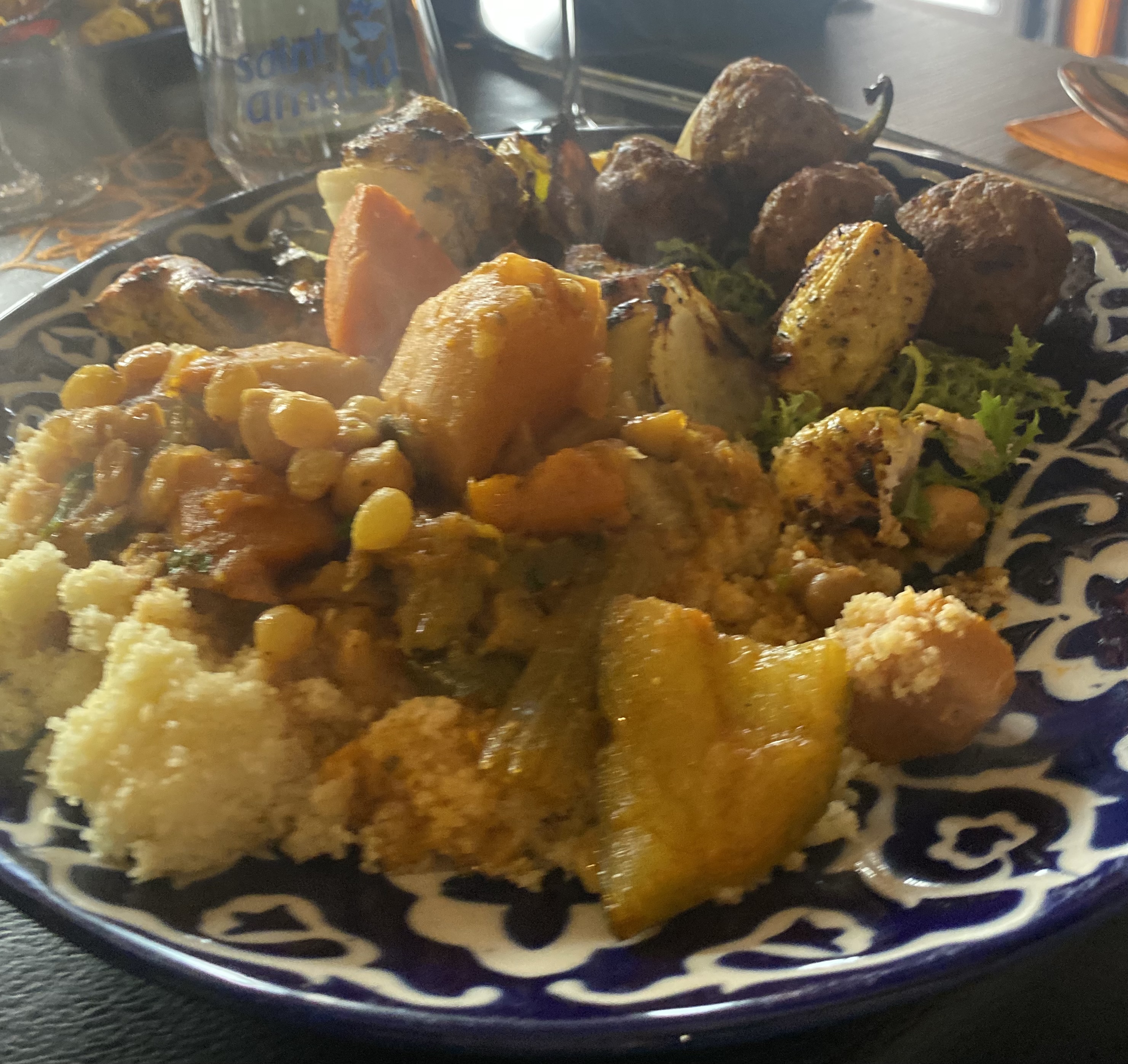 Tagines et couscous délicieux et copieux. Pareil pour les mises en bouche servies avec l'apéritif.