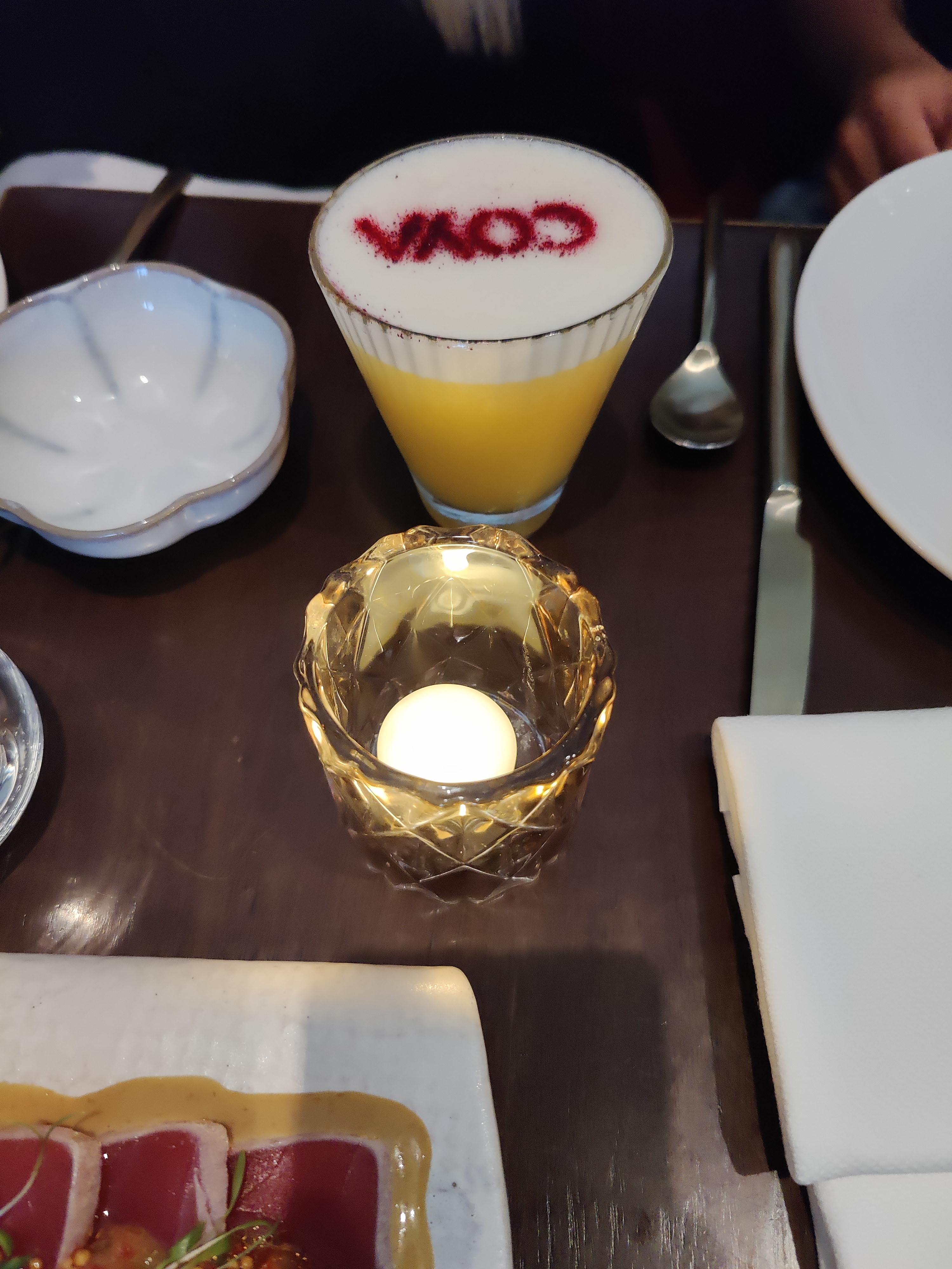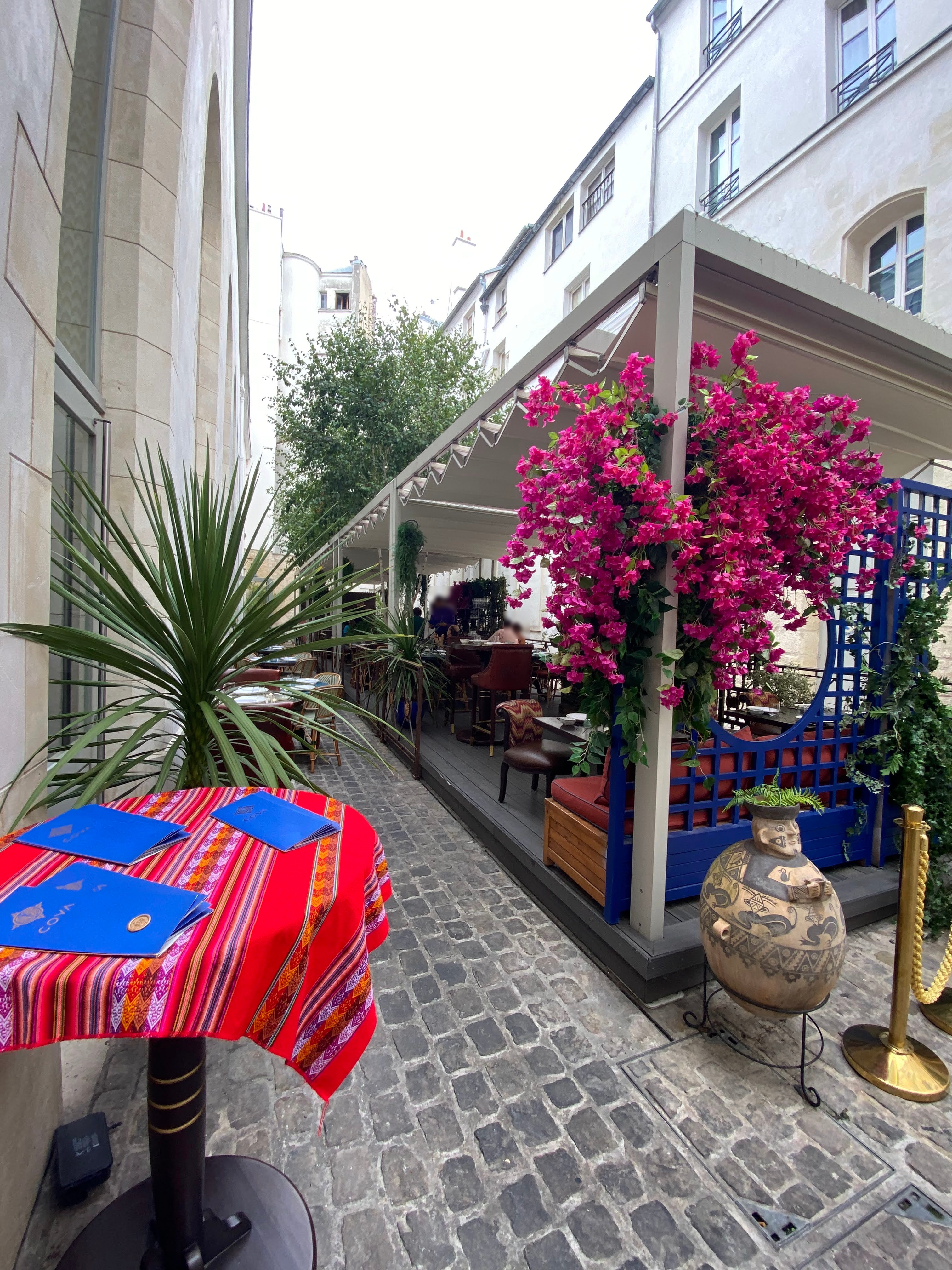 Un moment merveilleux passé pour mon anniversaire. Mon compagnon m'a fait la surprise de cet endroit magique niché dans un passage que je qualifierai de presque secret au coeur de la rue du Bac, merveilleuse rue du Bac. Je n'avais jamais mangé péruvien auparavant et suis heureuse de l'avoir découvert à travers Coya. Nous avons chacun pris un menu Dégustation avec une ribambelle de plats colorés, frais, chaleureux et même étonnants en ce qui concerne certaines saveurs et types d'aliments que je ne connaissais pas tel que le trio de mais péruvien. J'ai particulièrement apprécié les différentes alliances de poisson notamment à travers les délicieux céviches aux notes de citron vert et de doux piment. Le décors, également, mérite d'être regardé. L'ancienne bâtisse a été magnifié en décors péruvien élégant et chaleureux. La salle à l'étage est magnifique. Pour ce qui est du rez-de-chaussée, voir de loin les cuisiniers préparer les plats ainsi que les barman servir les cocktails est très agréable lors du dîner. Nous étions à une table près de la baie vitrée et cela était parfait pour un repas en amoureux. J'ai beaucoup apprécié en hiver alors je pense que le décor n'est que meilleur au printemps ! Service presque impeccable, les serveurs et cuisiniers étaient très agréables. Seul tout petit bémol : j'aurai apprécié avoir une serviette en tissu, à la hauteur de ce bel endroit, d'autant plus que nous nous servons de nos doigts pour certain plats et que ma serviette était ridiculement petite. Cette soirée était fantastique et j'y reviendrai volontiers avec ma famille pour leur faire découvrir cette cuisine du monde. Merci.