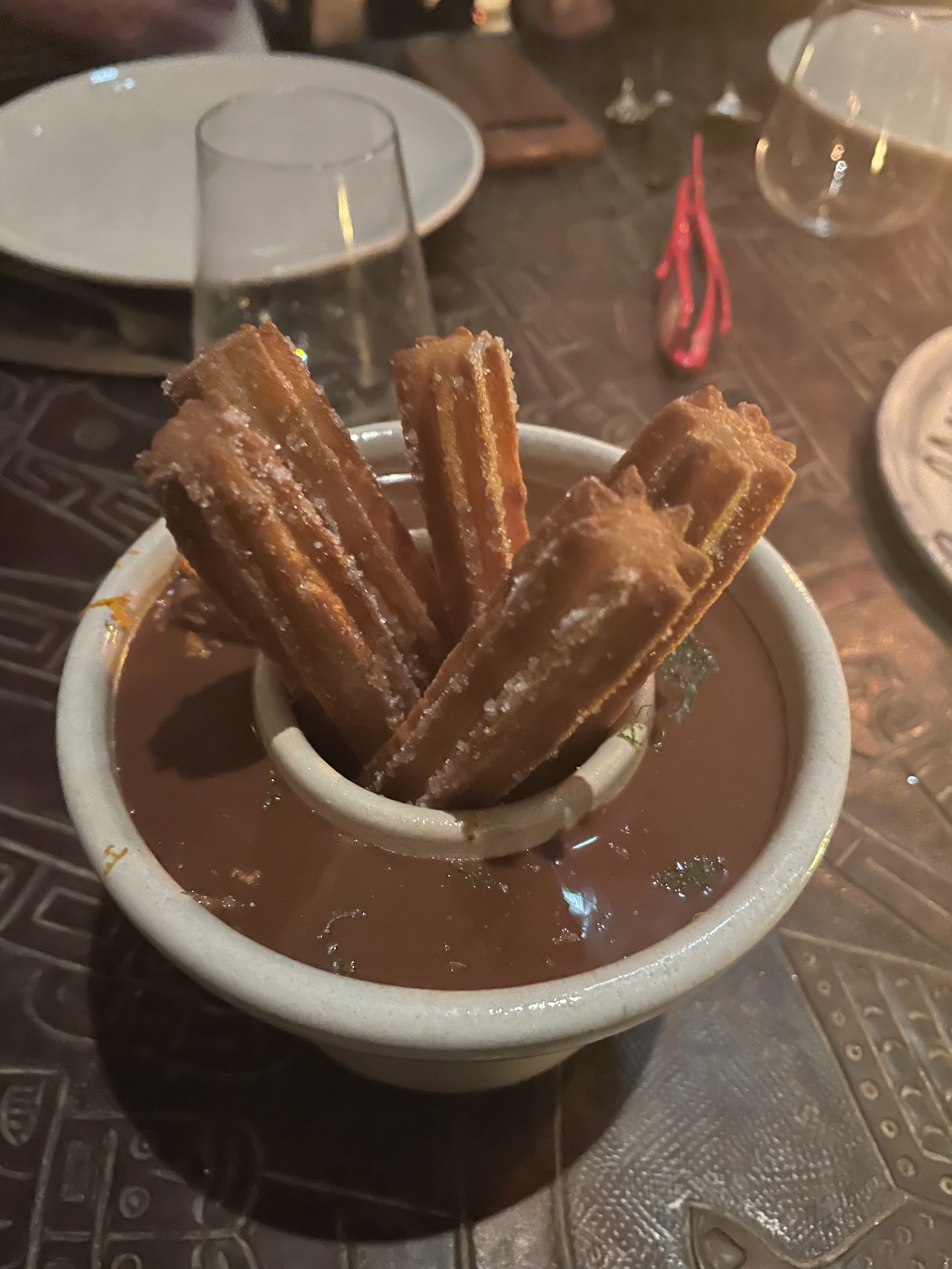 Très joli restaurant Péruvien, ambiance « SouthAmericanChic » Menu déjeuner à 39€ Le meilleur le dessert, churros à l’orange avec confiture de lait, la prochaine fois je les commande en entre, plat et désert