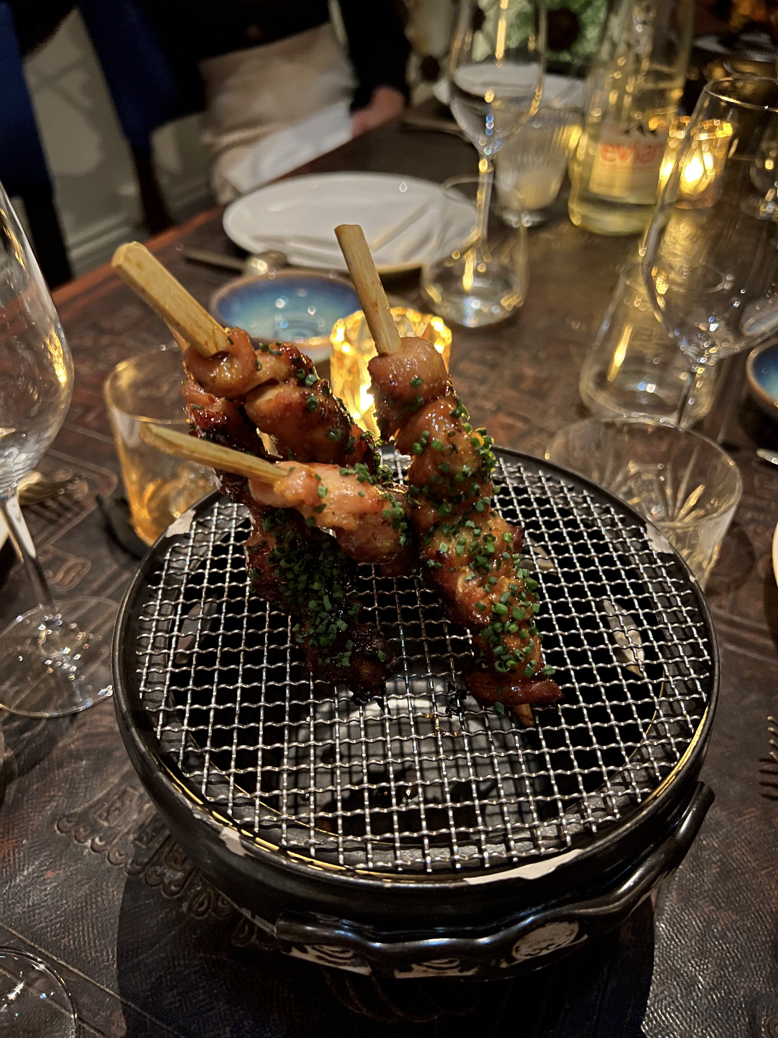 Nous étions 7 pour dîner un lundi soir. Il n’y avait pas trop de monde. Service impeccable, merci Arnaud pour cet accueil chaleureux et cet humour. Les cocktails sont exceptionnellement bons, la viande de porc cuite à la perfection. L’agneau parfumé et tendre. Les brochettes poulet un peu trop cuites à mon goût mais l’ensemble est bon ! Nous reviendrons tester le Menu dégustation qui doit être choisi pour l’ensemble de la table…