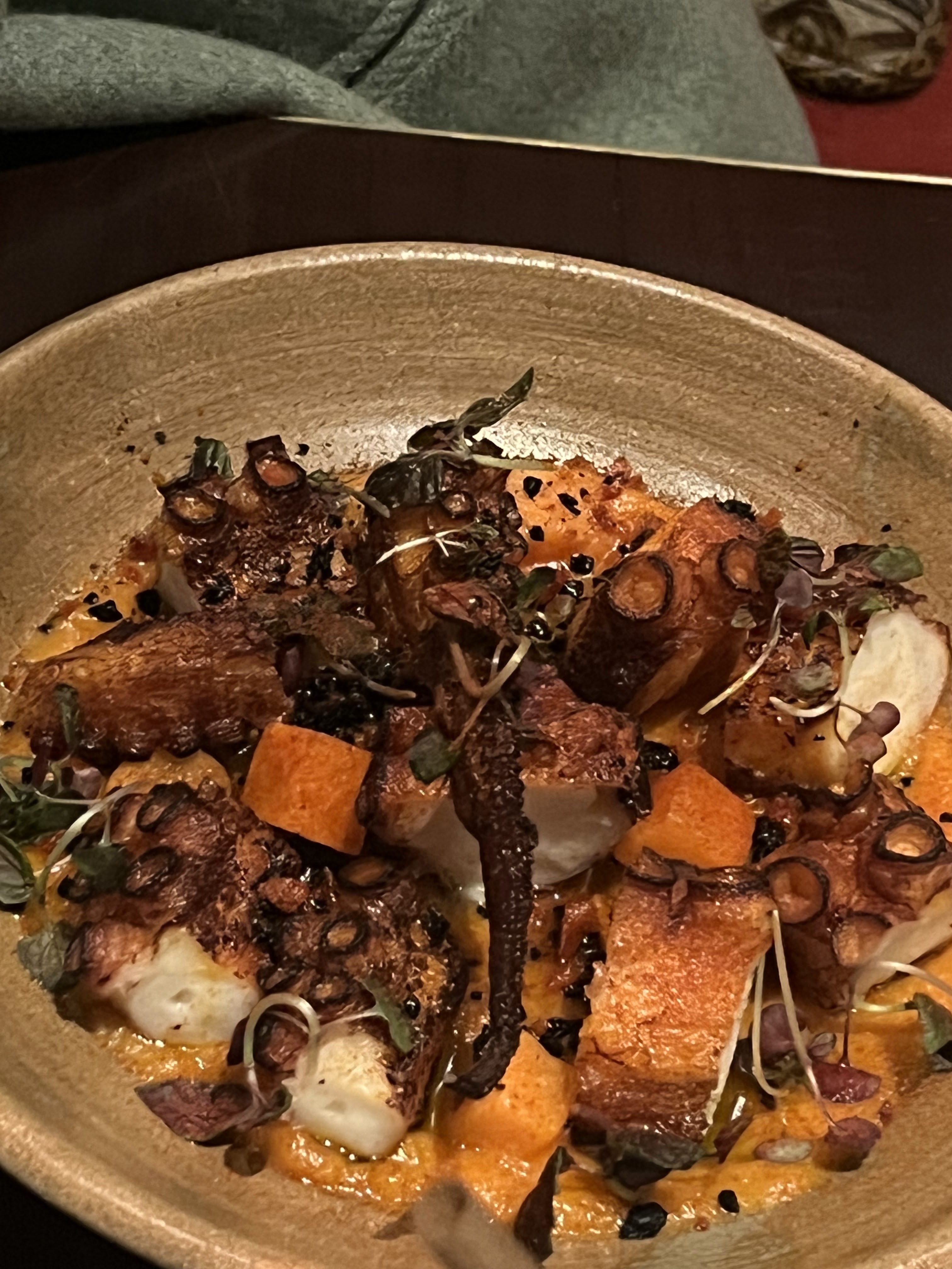 Le plus : J'ai adoré le tataki de thon et le poulpe grillé au paprika chorizo accompagné de patates douces. Le moins : J'ai trouvé les prix élevés pour la quantité servie, par exemple 2 brochettes grillées coûtent 14€. Aussi, j'ai été déçue par les tacos au tostada de thon car il ne s'agissait pas de tortillas mais de chips garnies d'ingrédients. Ce plat aussi ne vaut donc pas ses 15€. Dans l'ensemble, j'ai quand même passé un bon moment et le personnel était aimable.