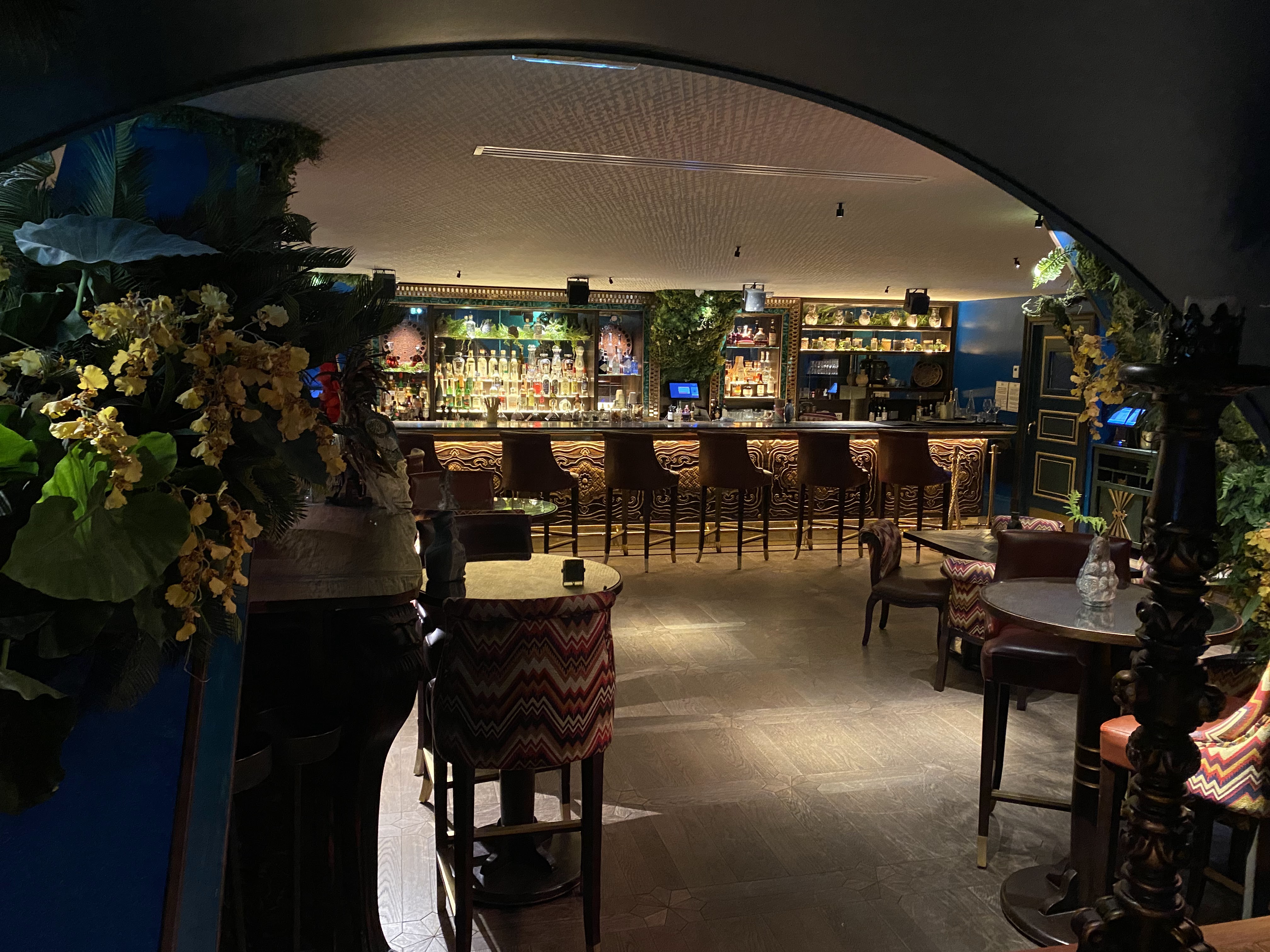 L'atmosphère au bar est les cocktails sont bons mais pas assez des chaises au bar DC les gens se battaient pour avoir l place. Après consultation de carte au resto impossible de rentrer l'intérieur voir a quoi ressemble le restaurant. Selon vigile il faut aller sur internet et consulter les photos en ligne ou réserver et après voir l'intérieur. Ça donne pas envie de revenir et je comprends maintenant les mauvaises commentaires.