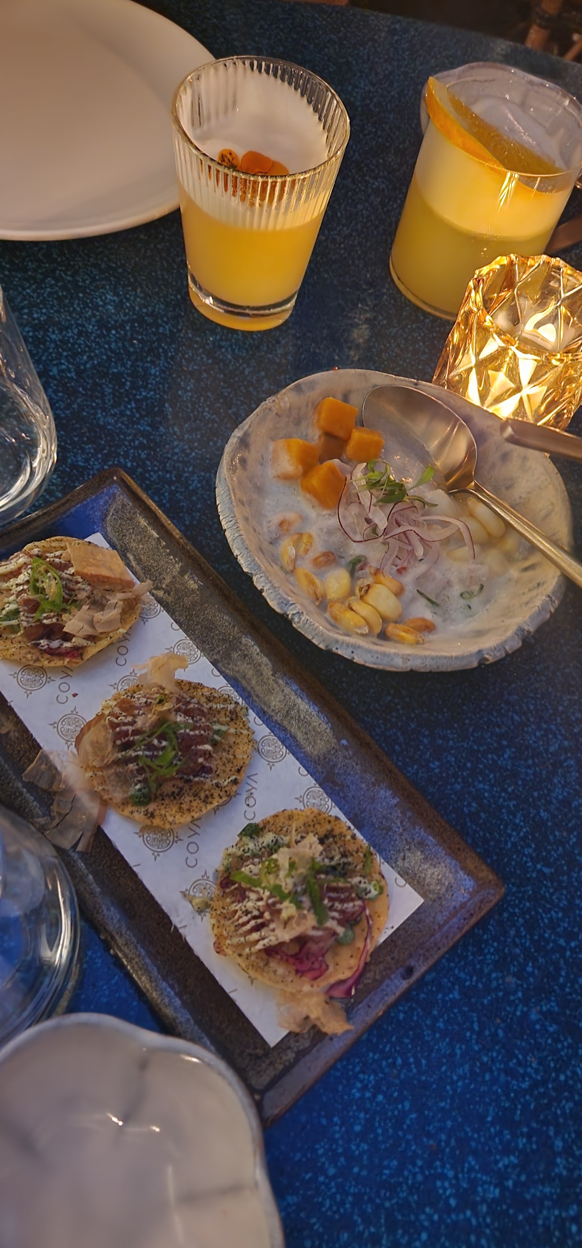 Dîner romantique un samedi soir, nous avons été conquis tant par la décoration, l'accueil, l'ambiance et bien évidemment par la nourriture de Coya Paris! Nous avions pris le menu dégustation, délicieux du début à la fin, avec des asaisonnements justes et un parfait équilibre des saveurs, le tout très bien présenté! Nous avons particulièrement apprécié la salade de 3 maïs et le cazuelo de poisson, un véritable voyage gustatif! Nous y retournerons avec plaisir!
