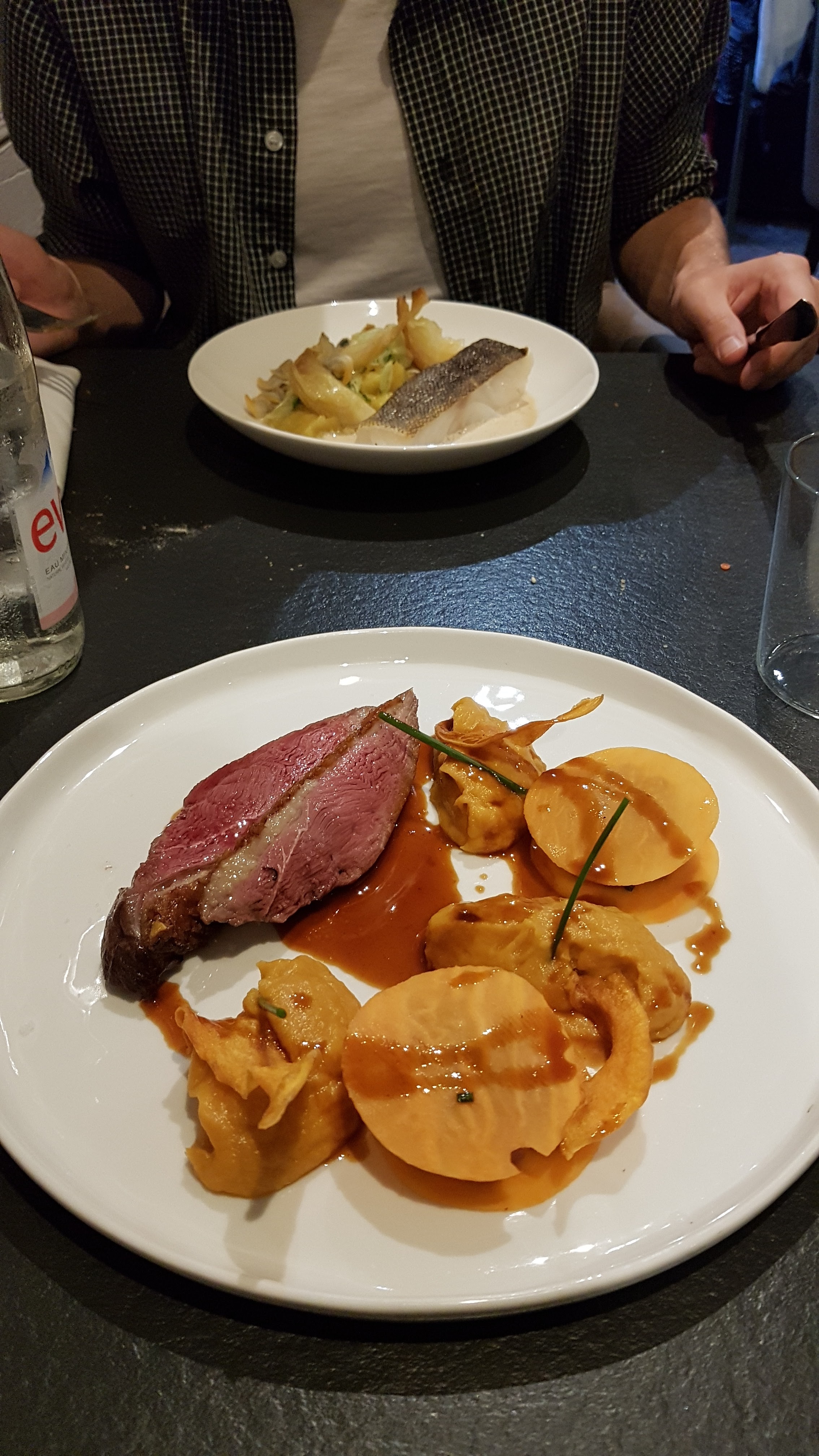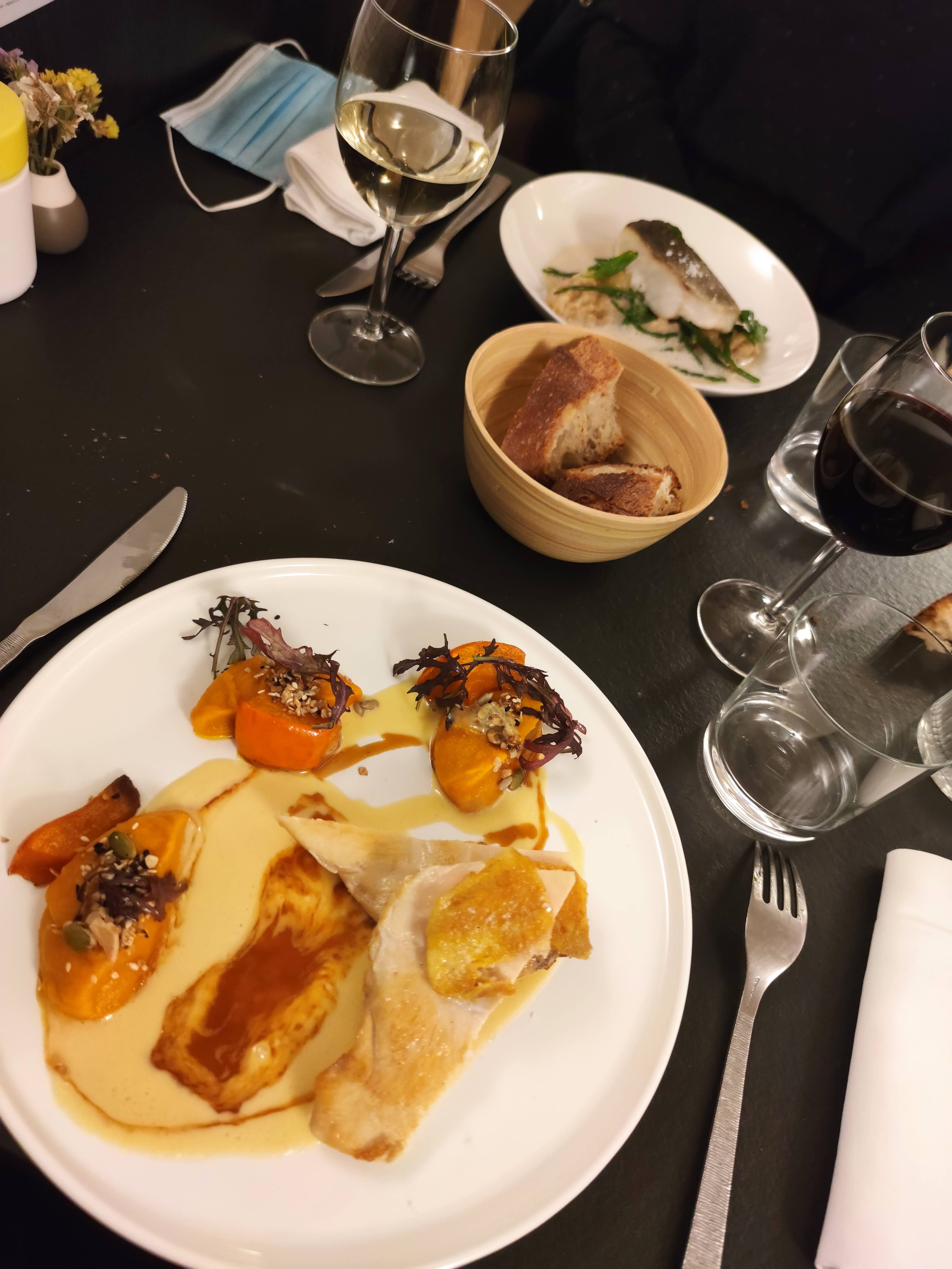 Les plats sont parfaitement élaborés, c’était délicieux. La carte des vins est courte mais avec des choix intéressants et celui que nous avons pris était très bon également. La décoration du restaurant est chaleureuse, et le service est très agréable. Le seul bémol a été le temps d’attente entre le plat et le dessert (30/45mn), qui avait pourtant été commandé au début. Mais le service avait été plutôt rapide entre les autres plats. Cela ne nous empêchera pas d’y revenir ou de le recommander !