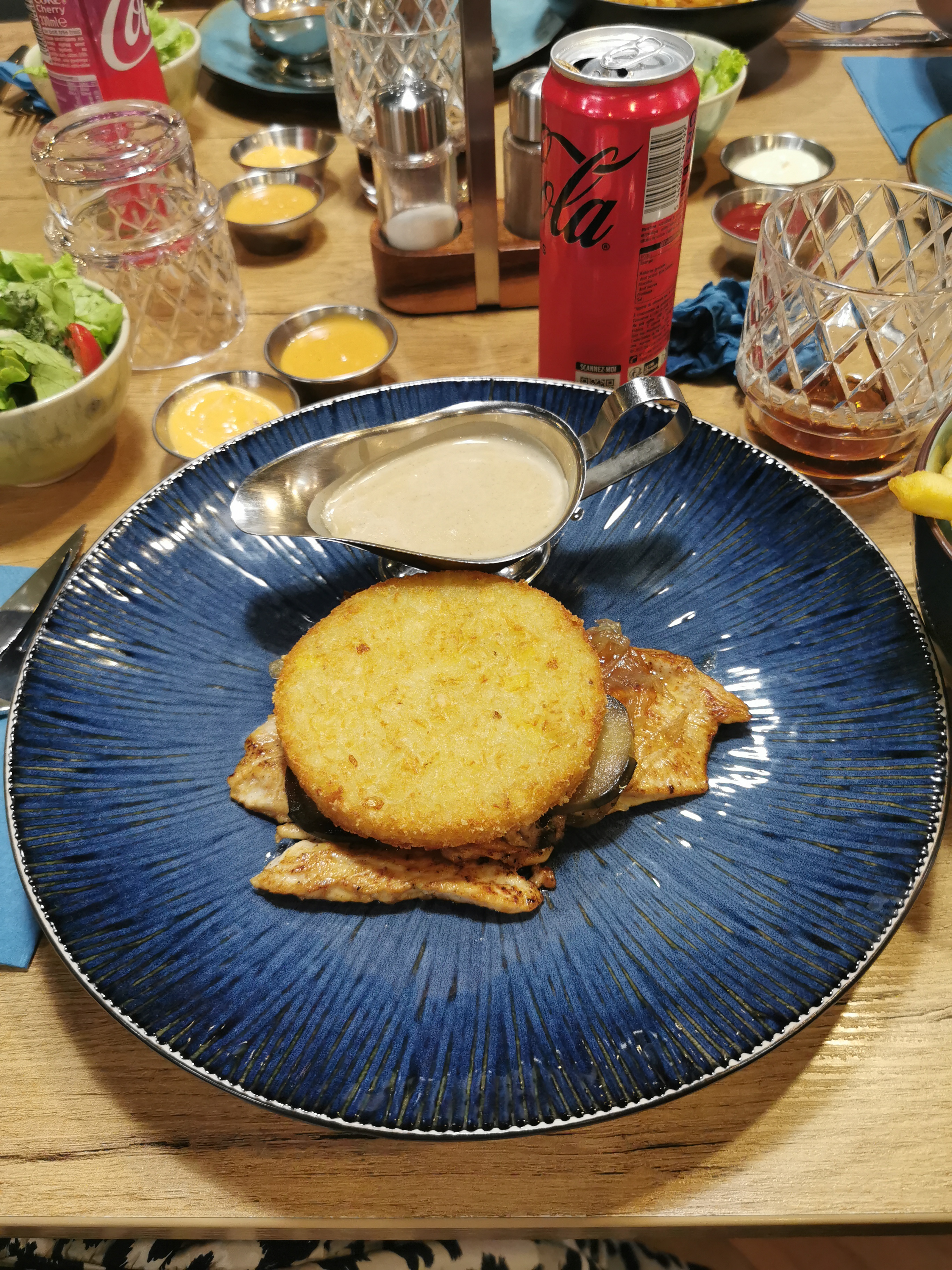 La sauce champignons avait un goût acide et pas très bonne du tout. L’escalope était pas très bien cuite et très sec. Le burger était bon sans + au même niveau qu’un fast food. Très déçu car nous avons à peine entamé l’escalope et les pâtes. C’était mieux avant. Le nouveau serveur est tout de même très accueillant.