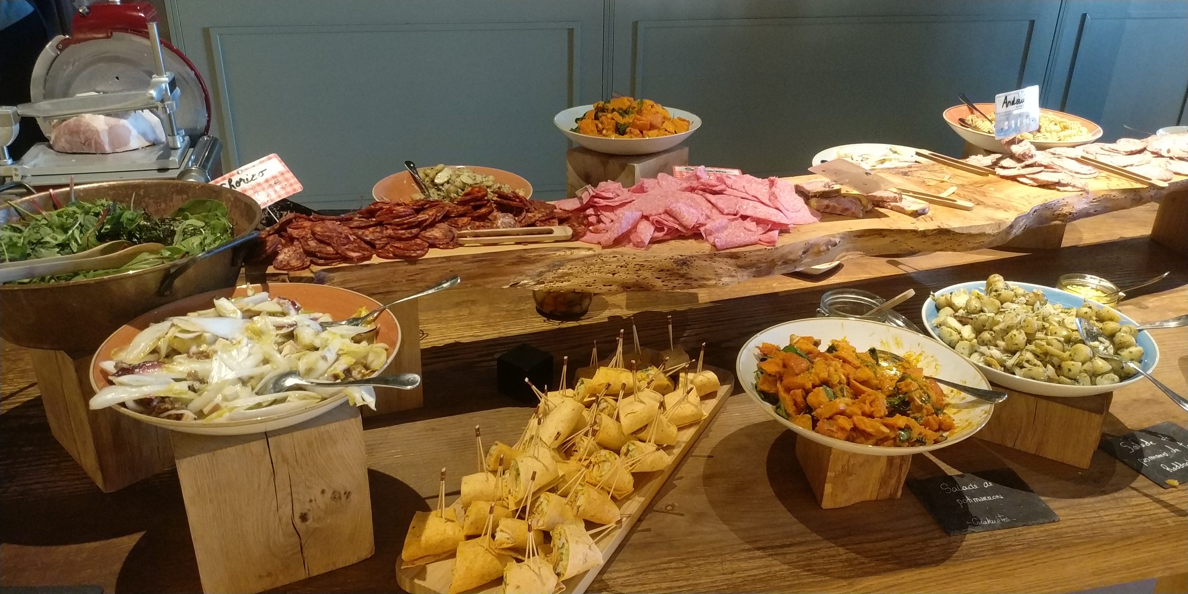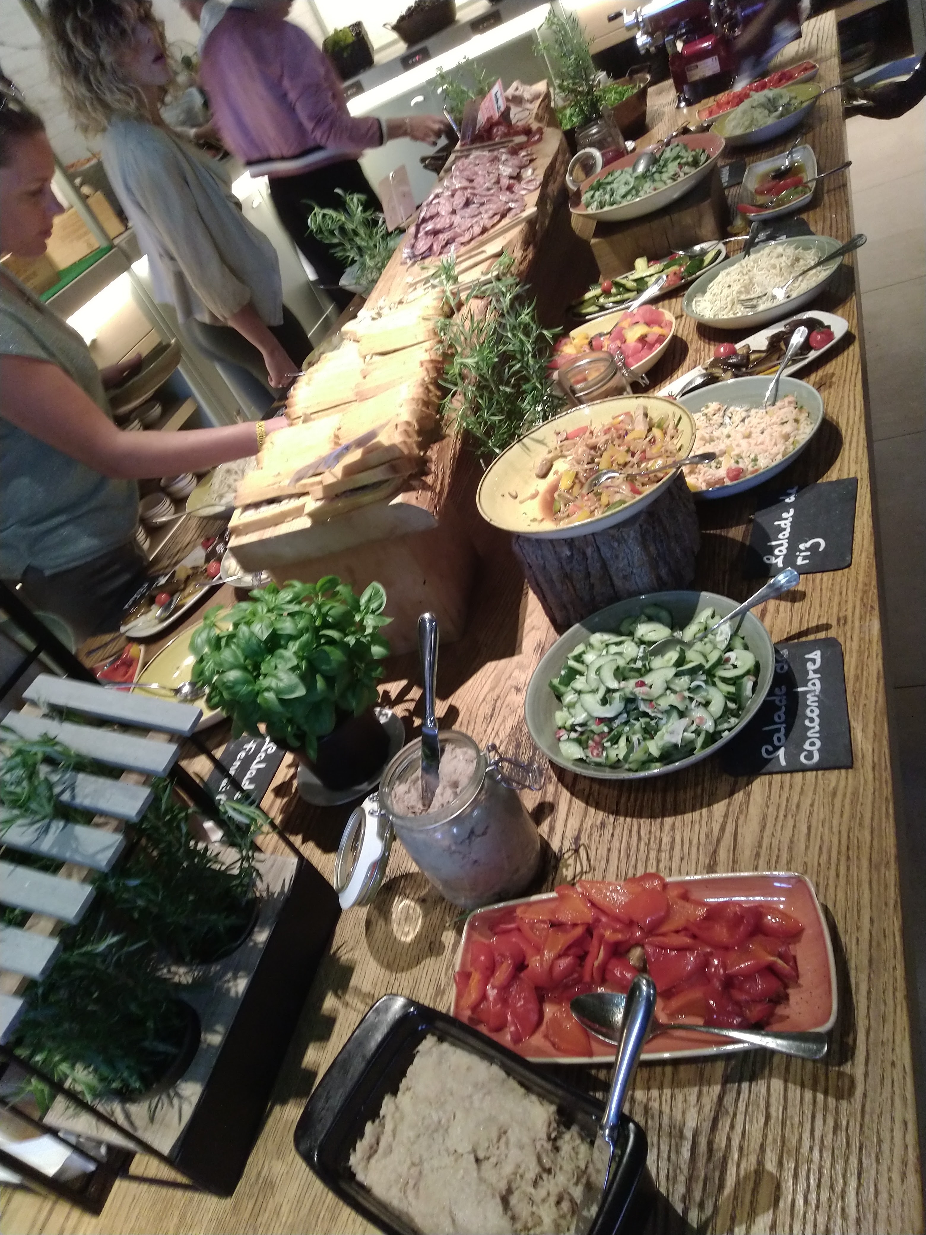 Le buffet du midi (en semaine)est superbe. De.nombreuses salades, charcuterie, fruits de mer... et j'en passe. Très bon, très beau. Une belle découverte. Je pense y revenir pour le brunch