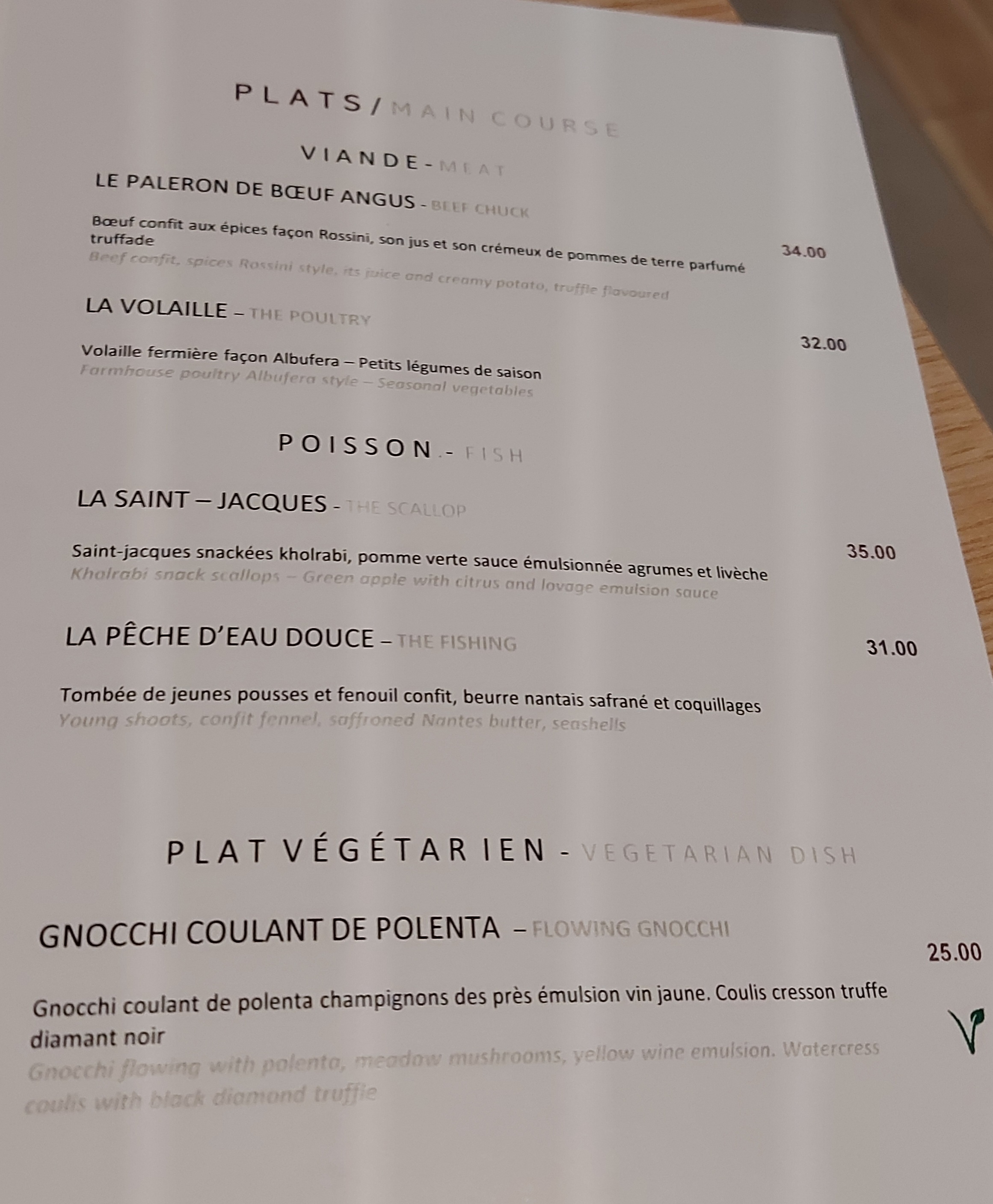 Concernant le restaurant pas de problème c est bon, raffinée, fait maison. Pour le service, omniprésence des serveurs qui au lieu de nous servir bien nous dérangent plus.