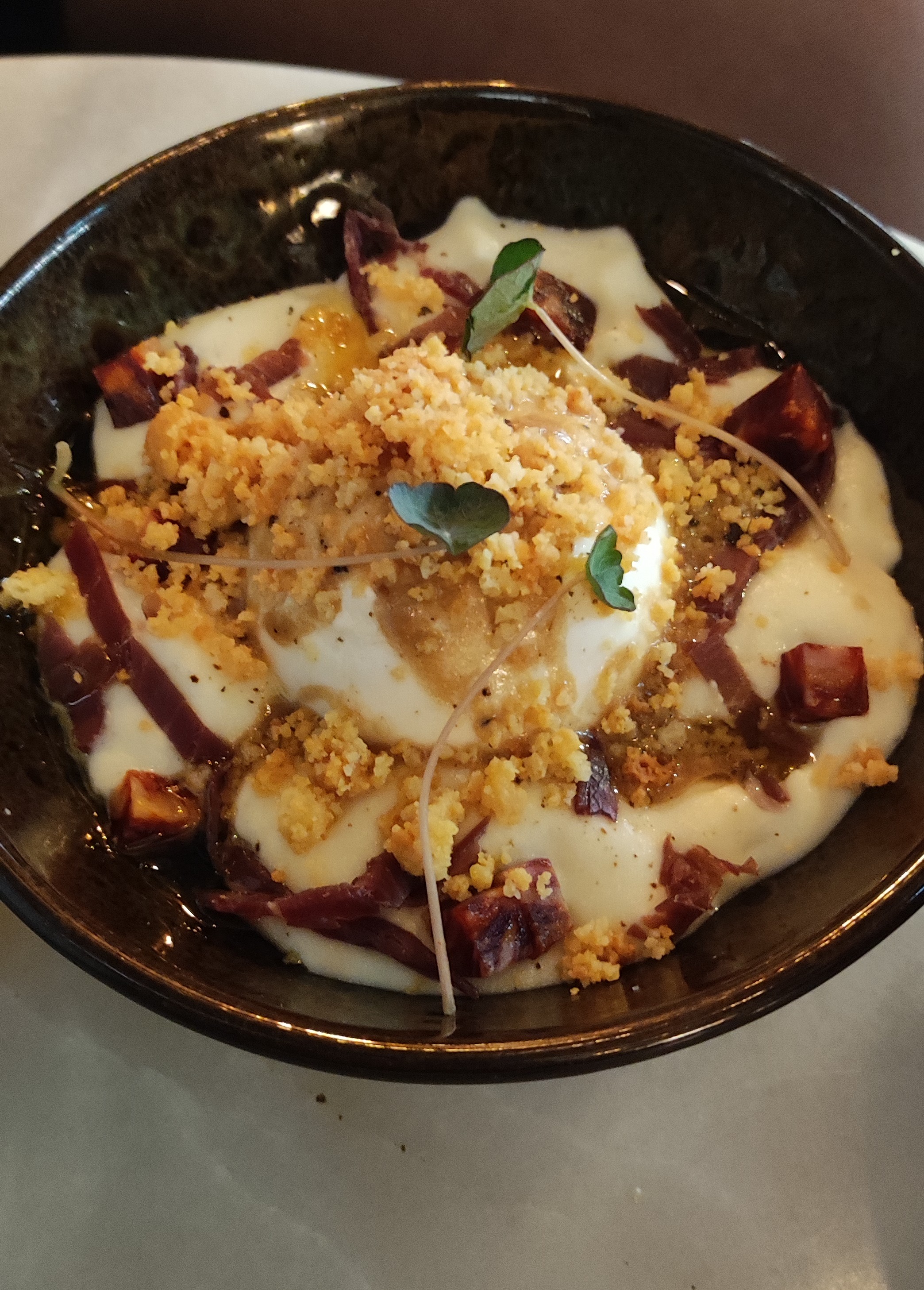 Des ingrédients de qualité mais à un prix très élevé. 18€ pour 3 boulettes de porc et une purée de céleri... Humm... accueil agréable mais service assez long.