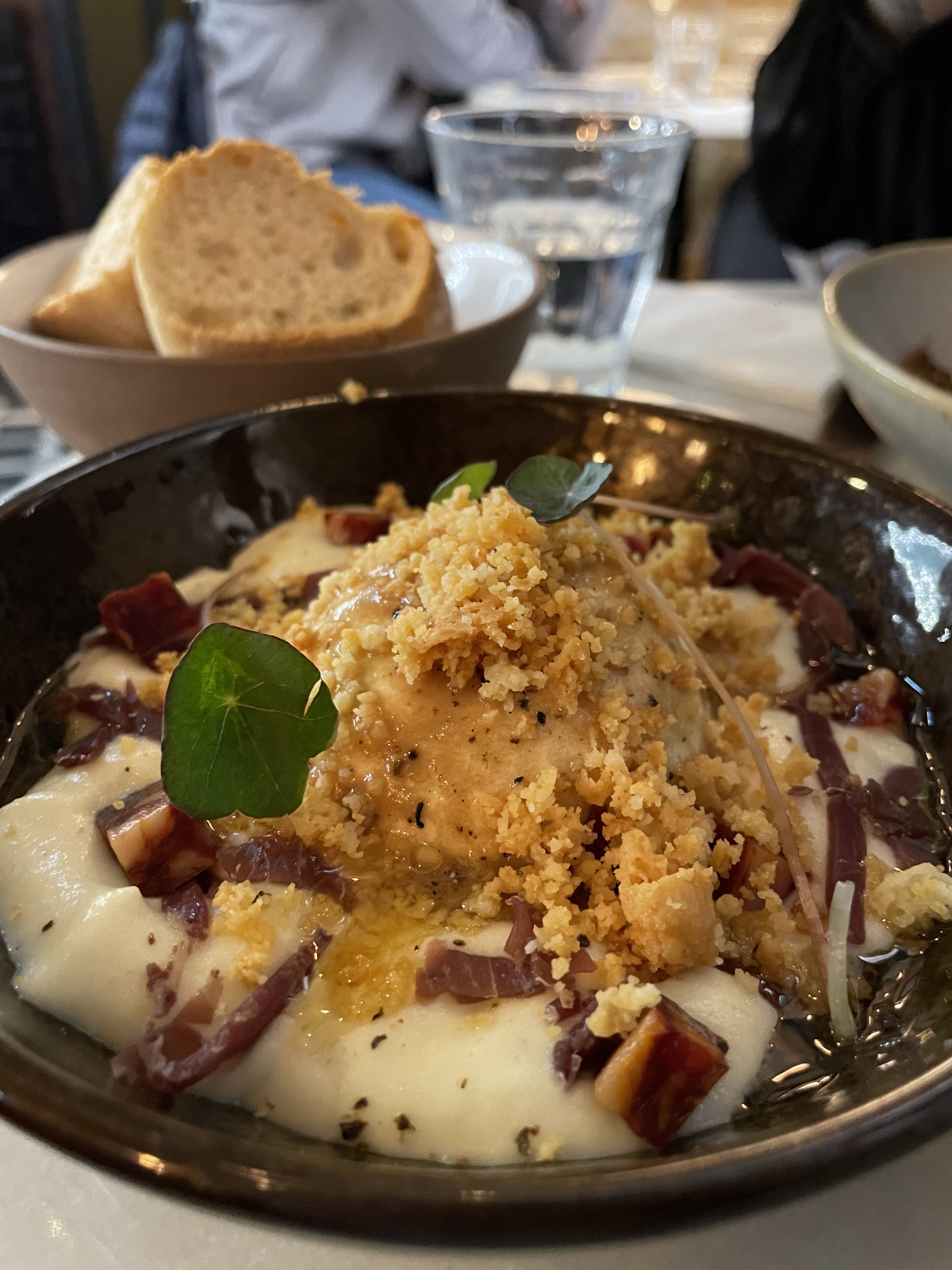 Je suis venue chez Crème sur conseil d’un ami et j’ai clairement pas été déçue. D’abord, concernant la cuisine, j’ai pris pour ma part le plat de ravioles au ragoût de bœuf et les saveurs sont au rendez vous. Le plat est suffisamment copieux et très très bon. Et ensuite concernant l’ambiance, le service et l’accueil, rien à redire. Nous sommes dans une ambiance chaleureuse et souriante. C’est très agréable. Je recommanderais a mon tour cet endroit.