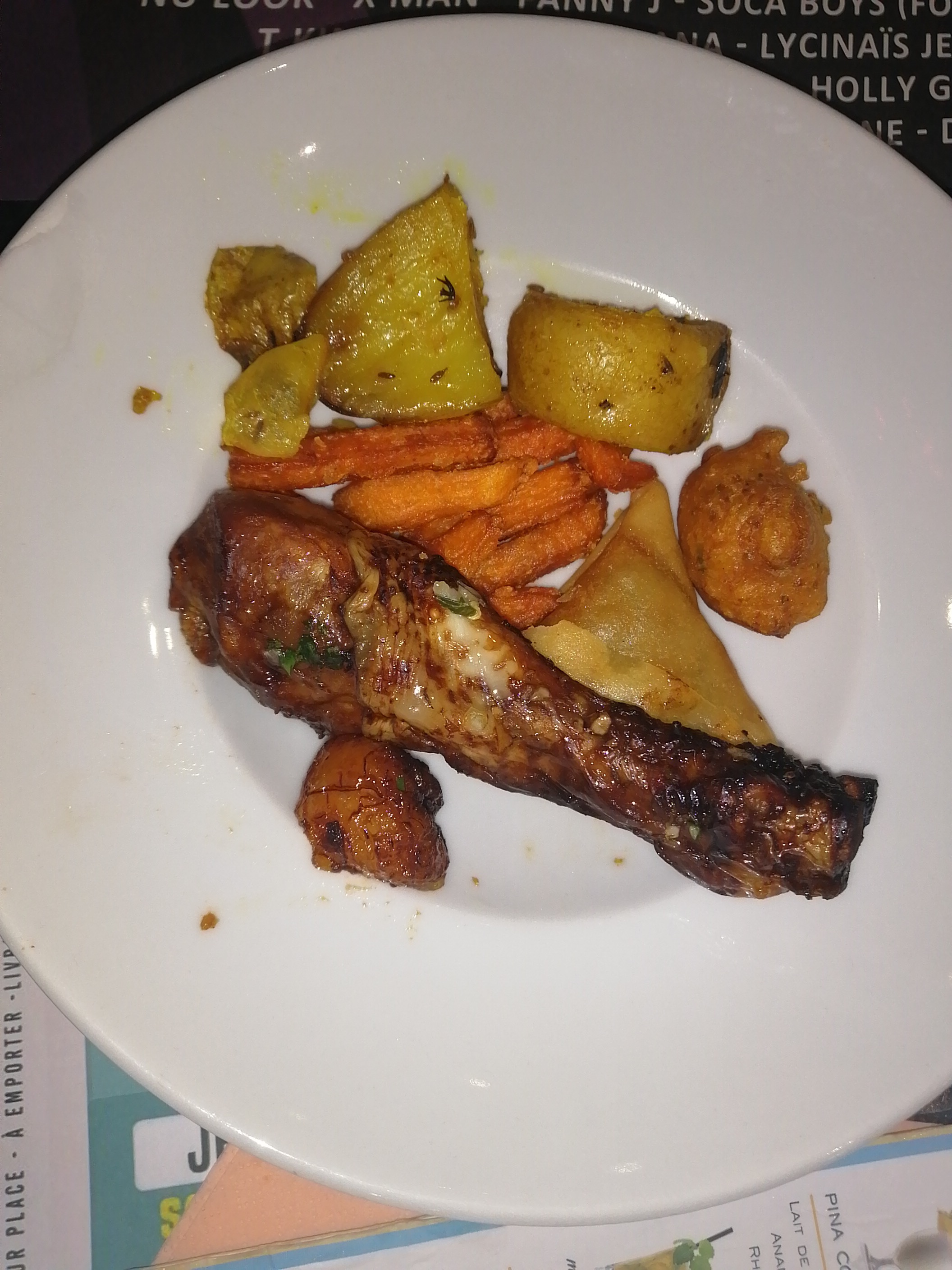 Plats emportés car il fallait réserver et cela n est pas précisé. L accueil est sympathique ni plus, ni moins. Les plats sont très bons mais manquent un peu d assaisonnement sûrement pour convenir aux palets délicats. Rapport qualité/quantité/prix à emporter raisonnable. Les saveurs antillaises sont là! A refaire...en réservant!