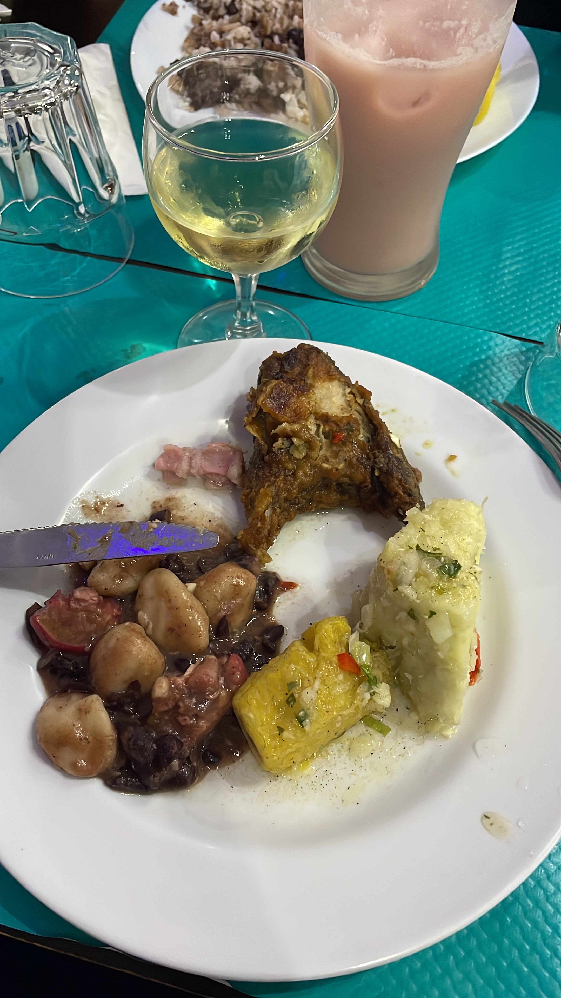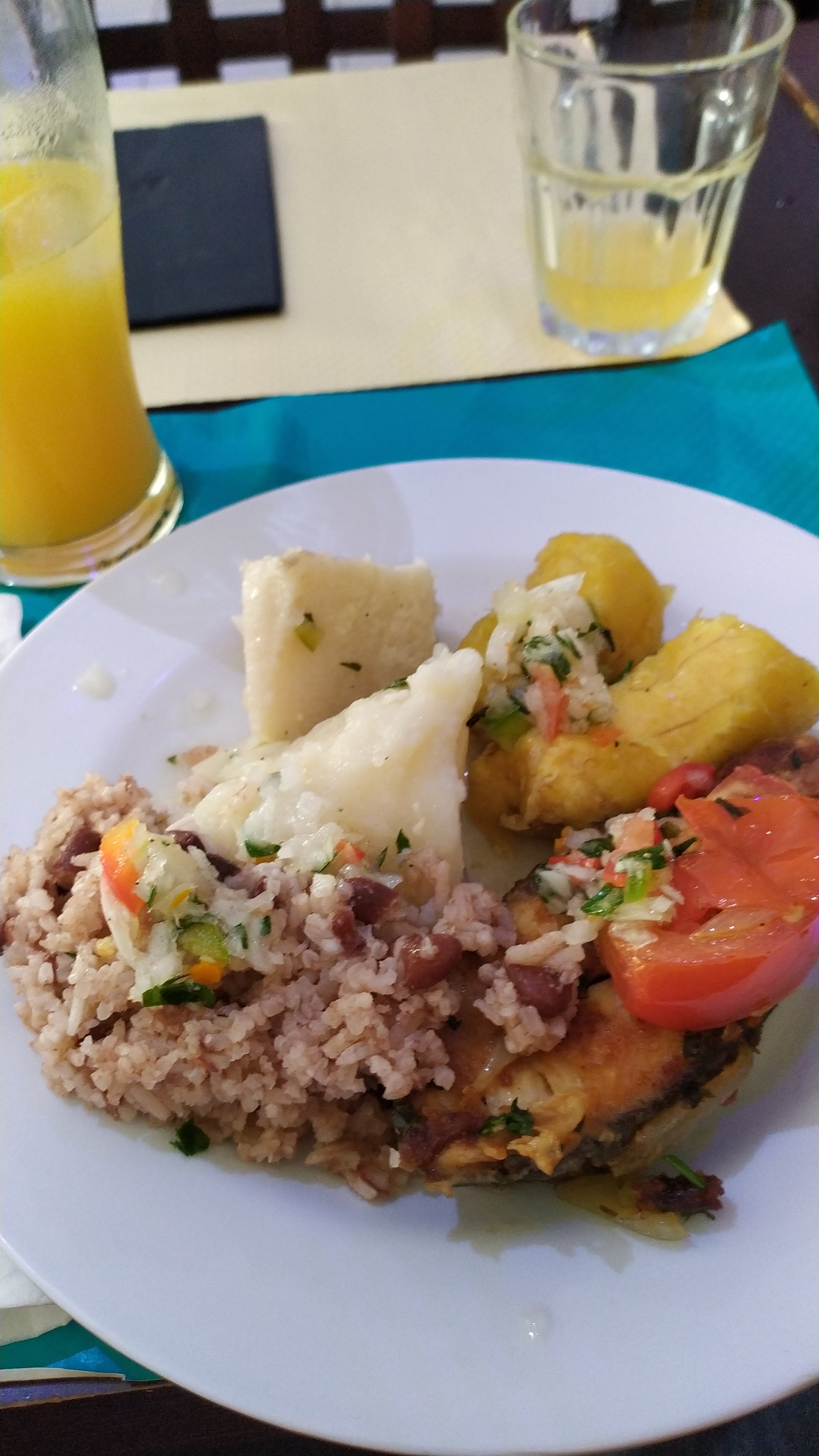 Restaurant à volonté, où l'on paye à l'entrée...jamais vu 😂 Sinon ambiance sympa, on n'y va pas pour discuter, mais petit groupe de musique pour se mettre dans l'ambiance caribéenne, plats et qualité proposés assez variés et sympas, recommandé si l'on ne connait pas la cuisine des îles!