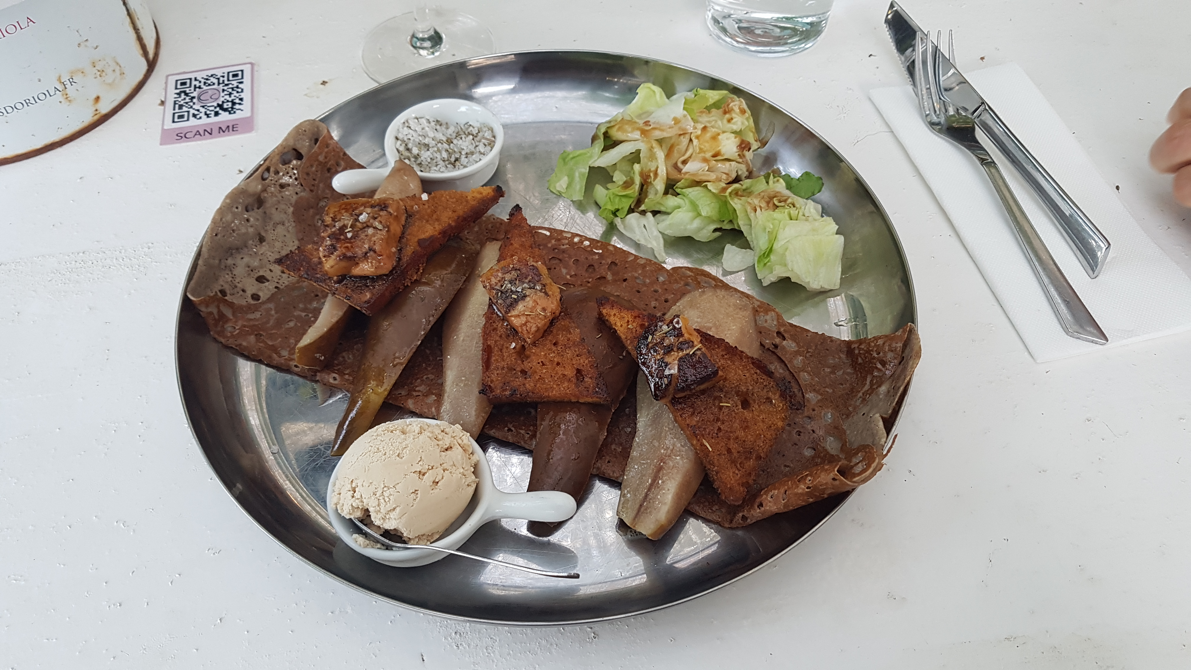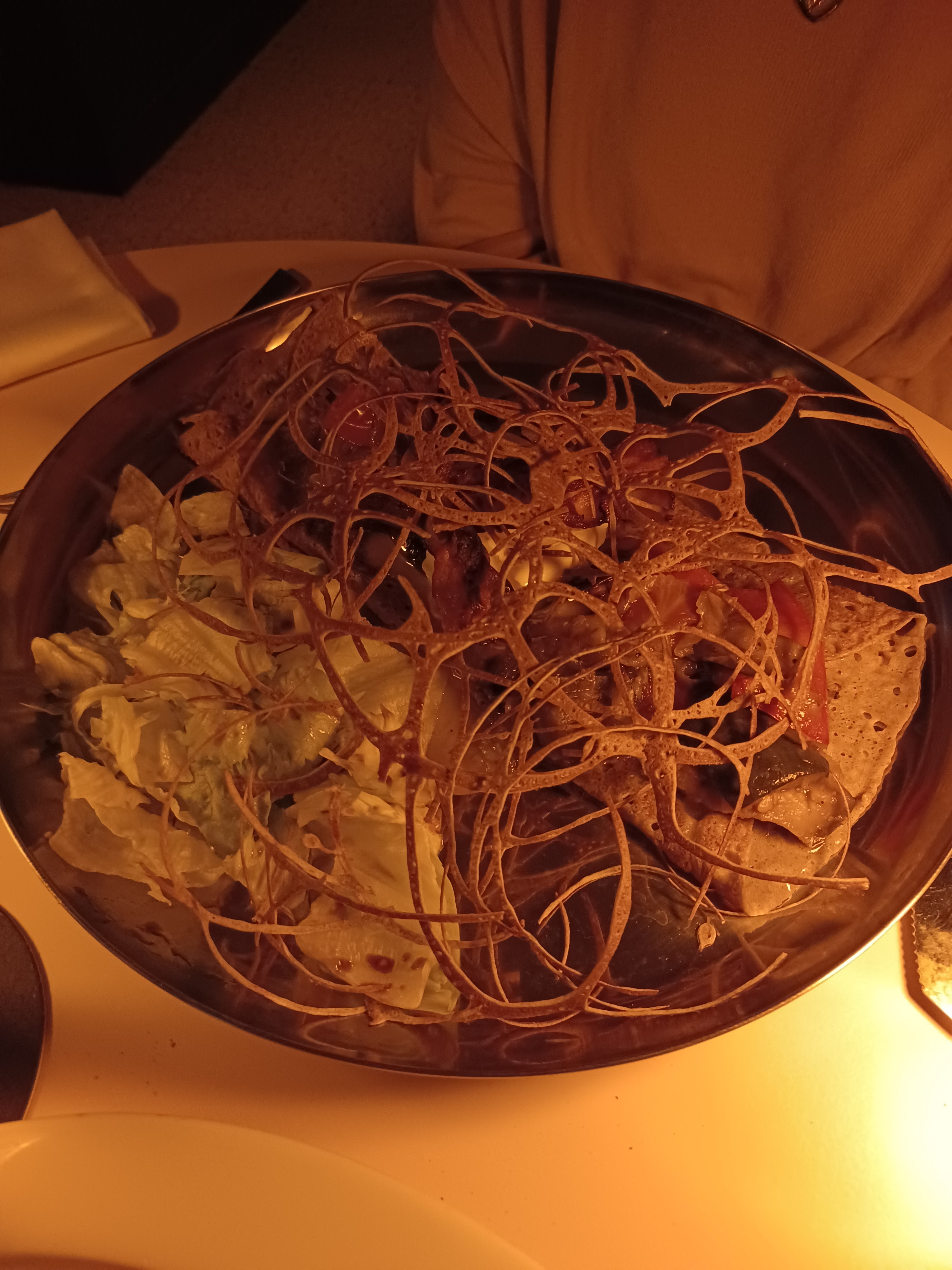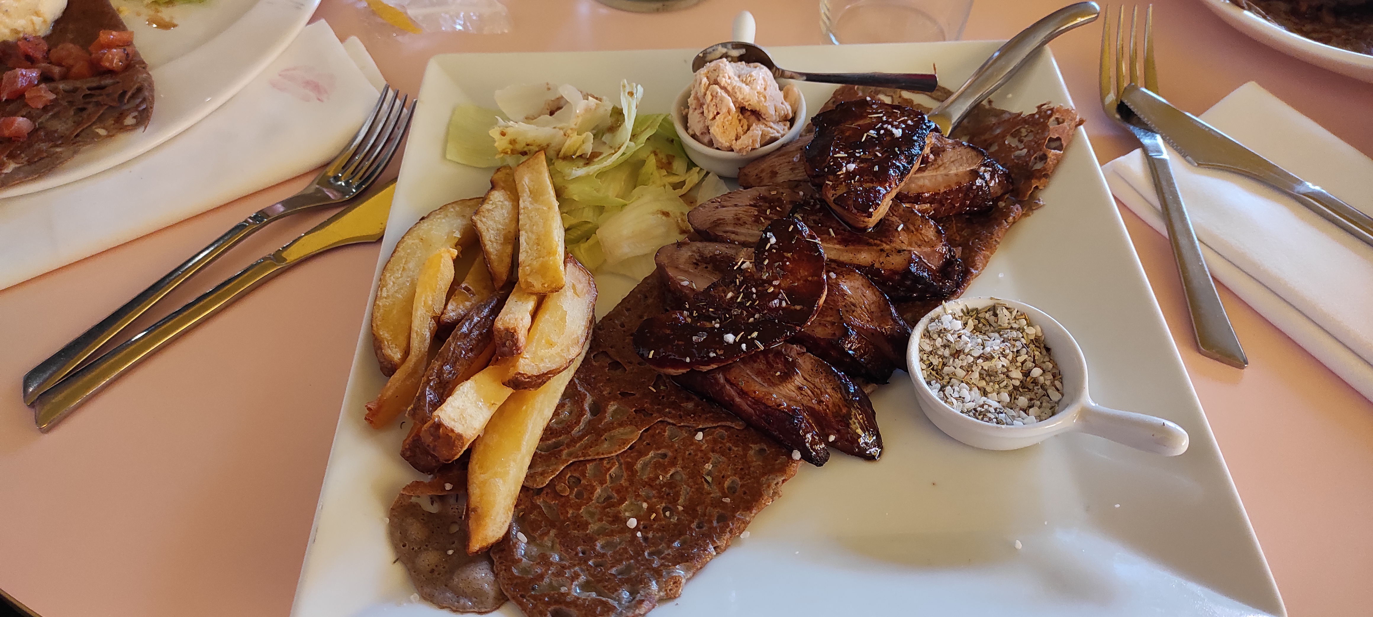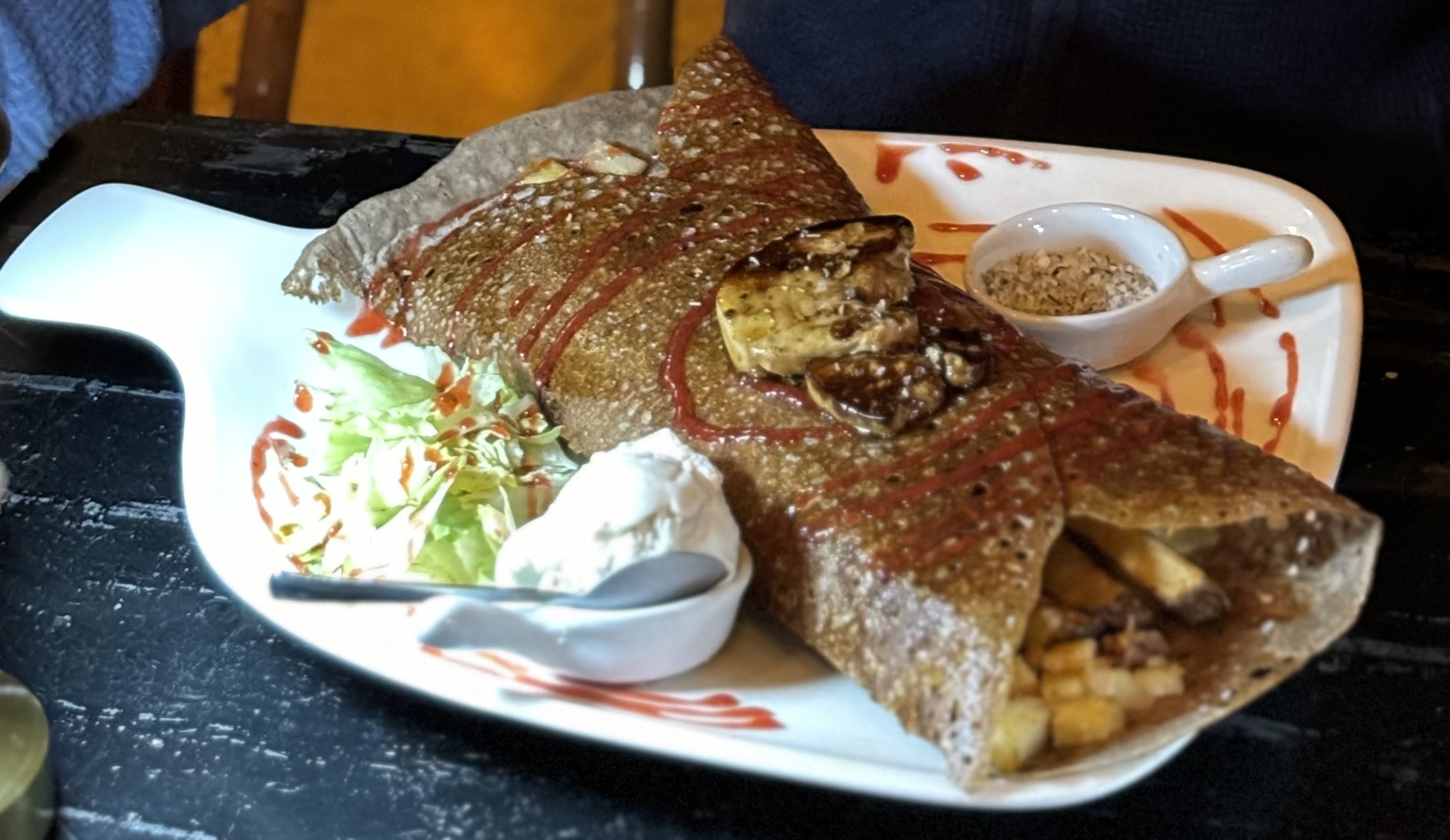 Belle découverte, crêpes originales et délicieuses ! Vaisselle un peu surdimensionnée ! 😉