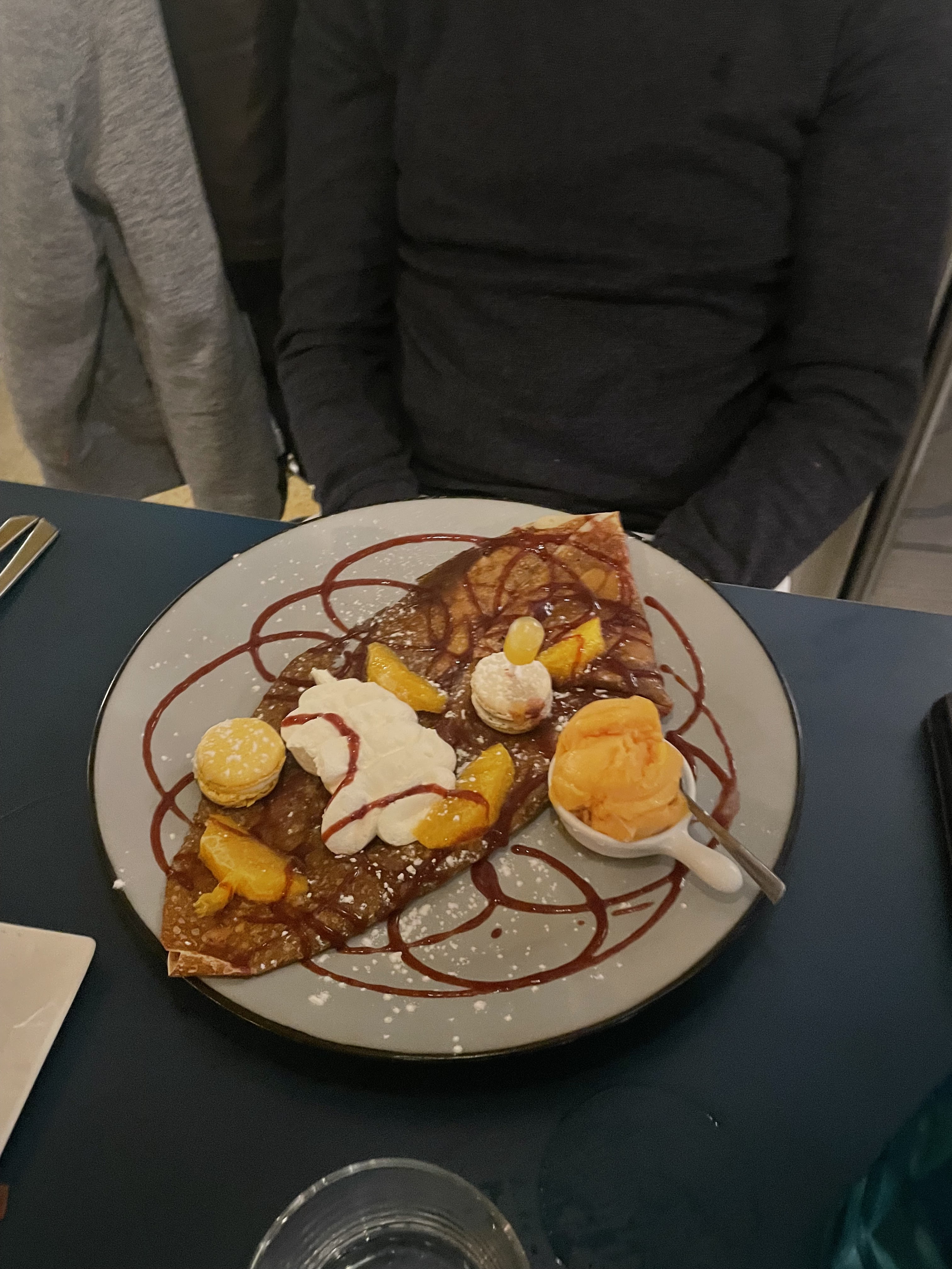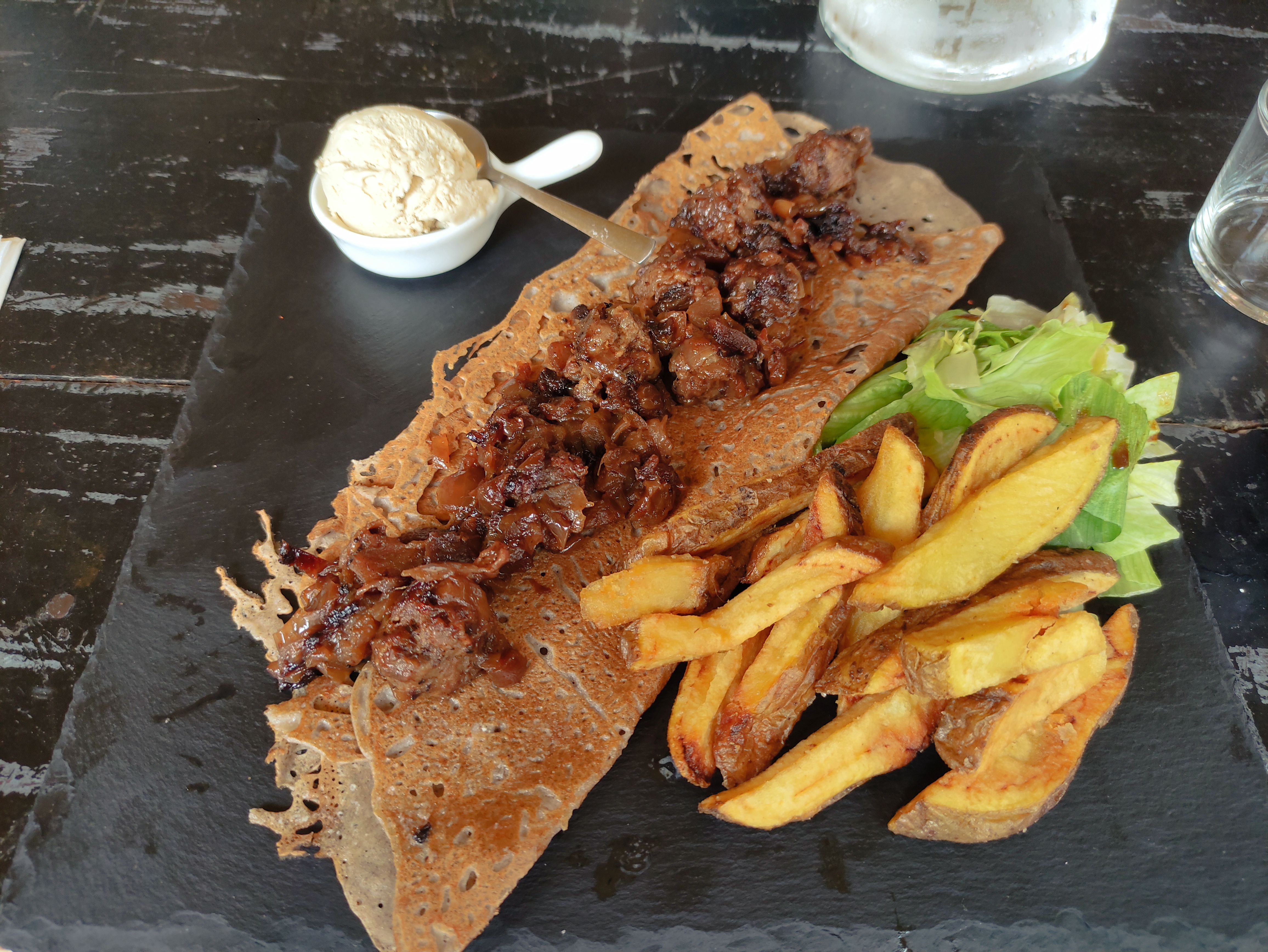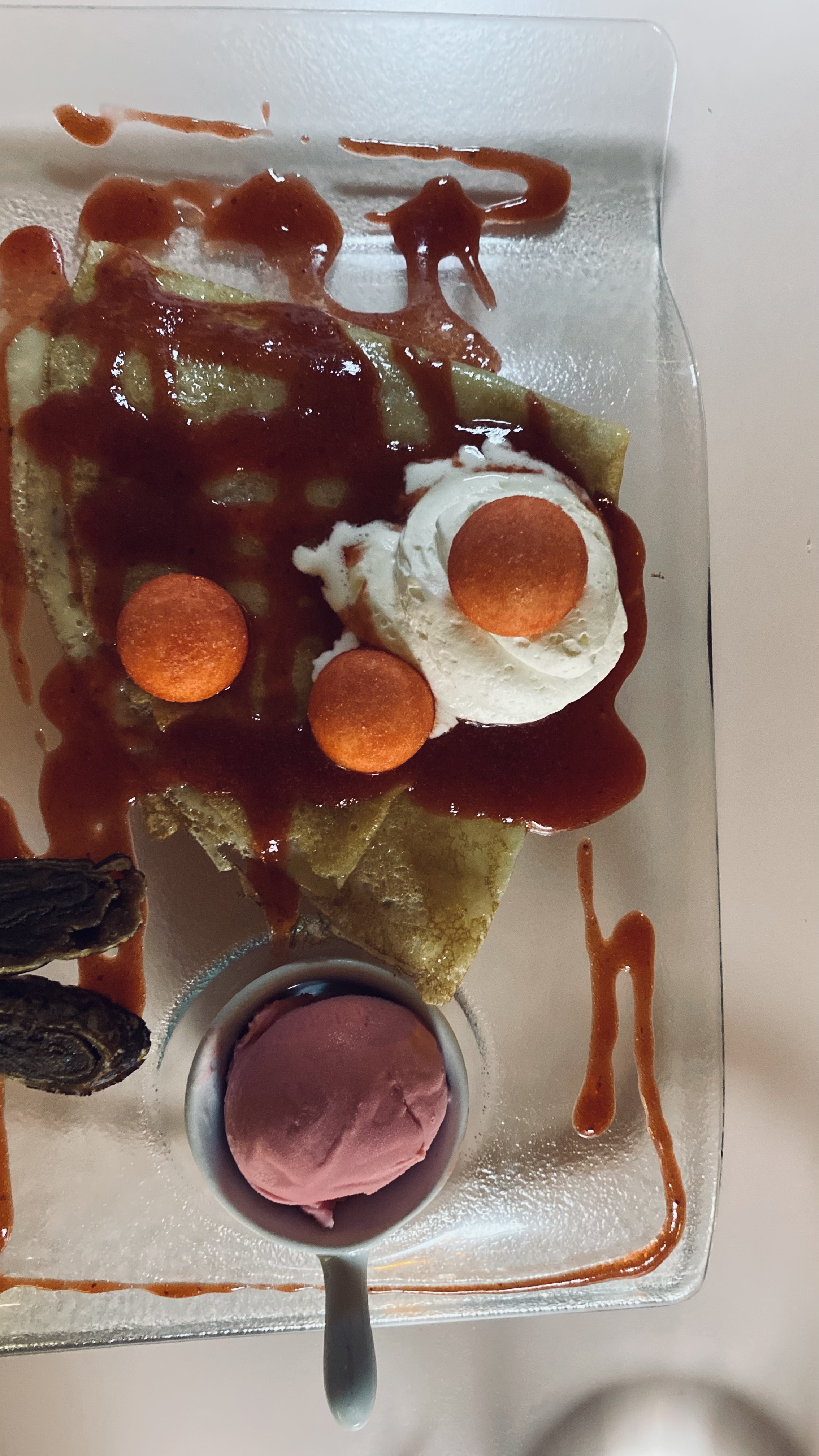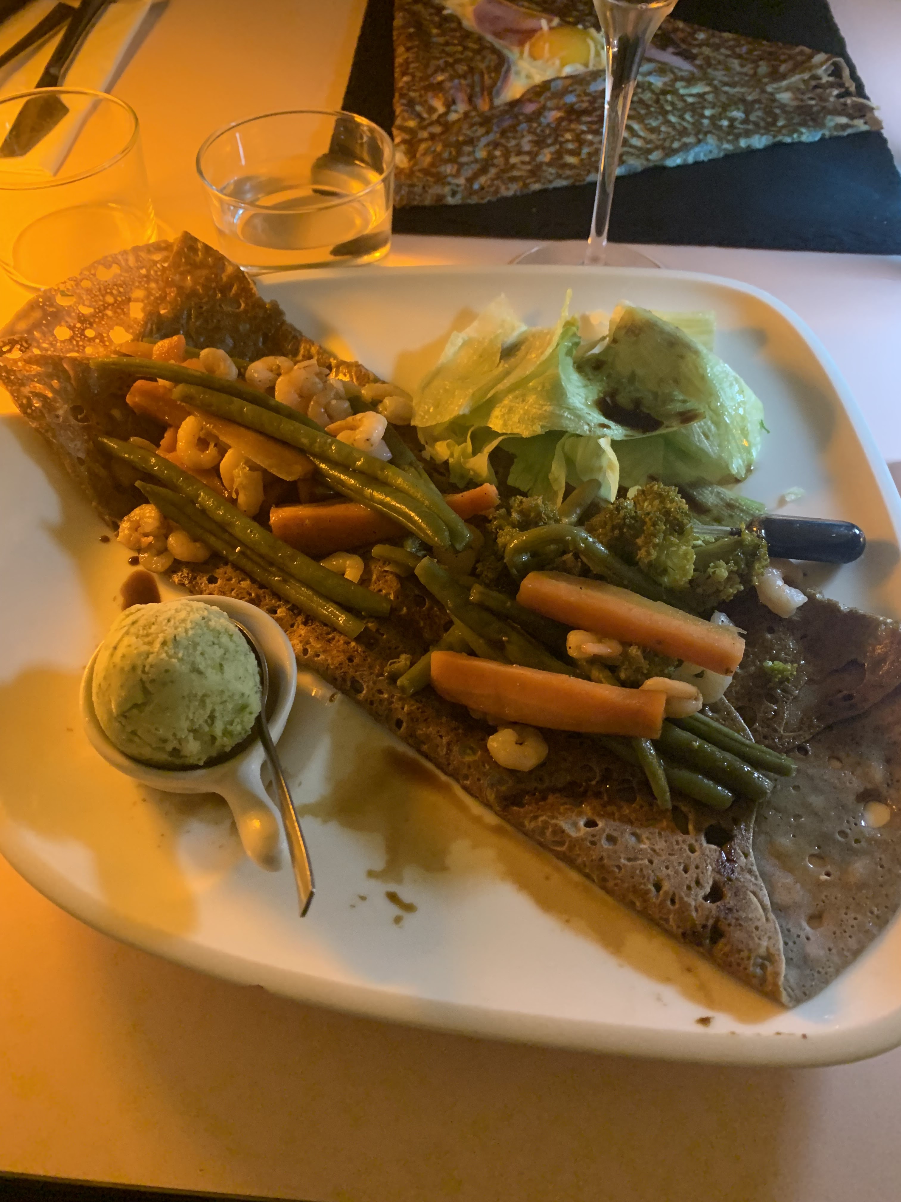 Tout était parfait: crêpes gastronomiques et délicieuses. Nous vous conseillons de prendre les glaces en suggestions très original et surtout très bon 😉. Service parfait: souriants et attentif. Nous recommandons vivement!