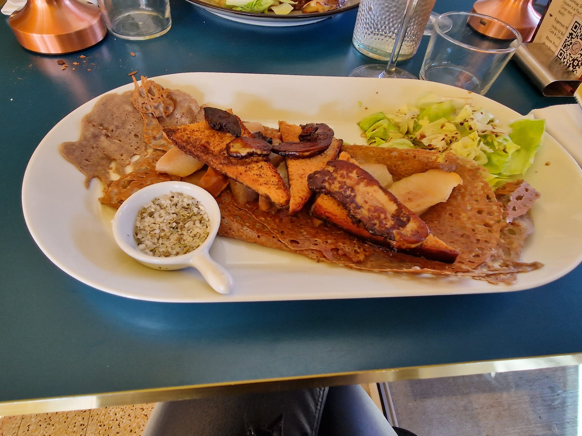 En repérage pour organiser un afterwork, j'ai déjeuné dans ce restaurant atypique où les crêpes 🥞 sont leurs spécialités. Je me suis régalée autant sur le salé que sur le sucré ! Vivement la semaine prochaine pour goûter aux tapas avec mes collègues.