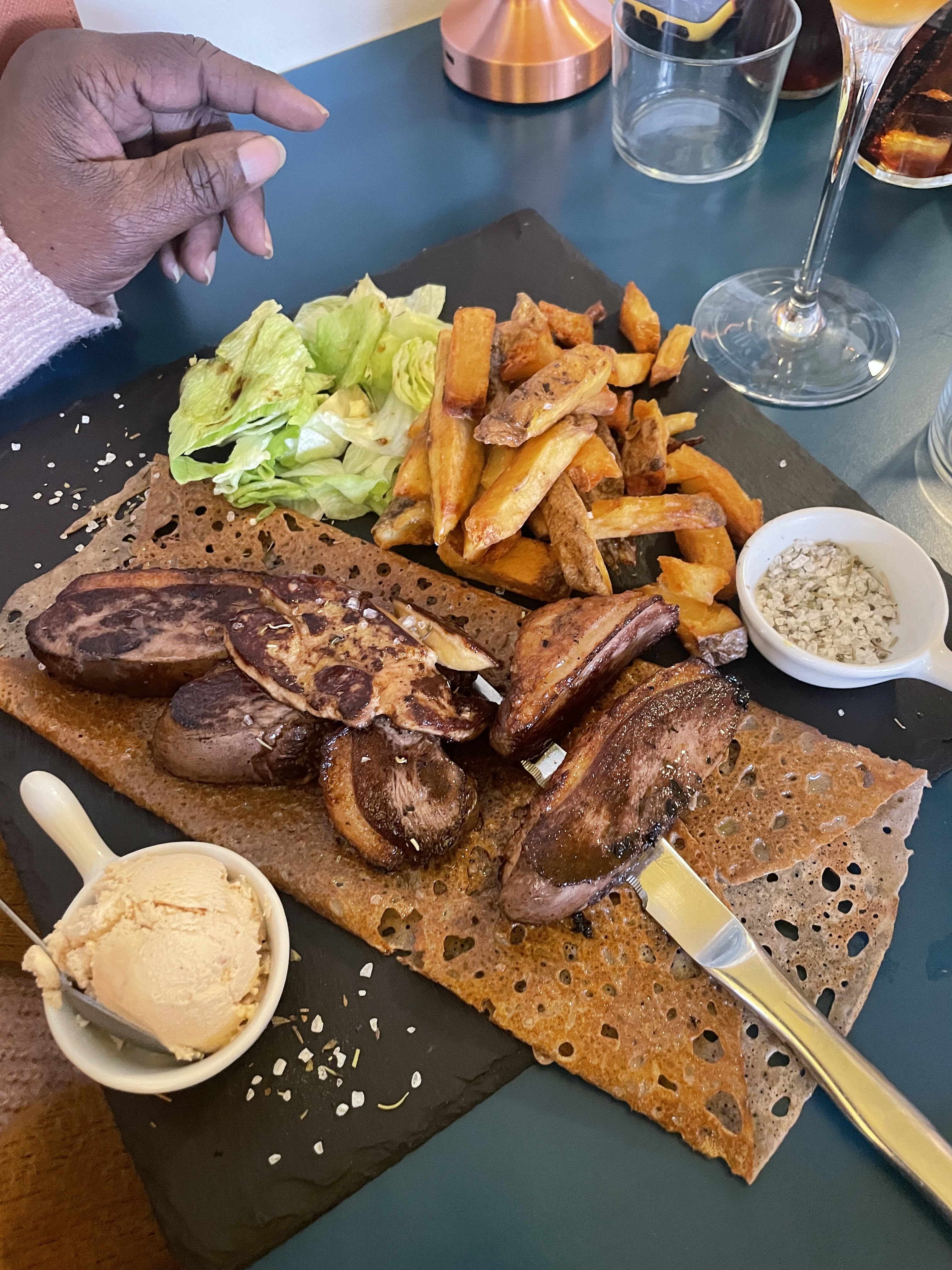Tout est vraiment top. Le restaurant est remplis de charme et très chaleureux. Le service très souriant et pro. Et pour finir la cuisine excellent ! Les produits sont vraiment d’une grande qualité la petite glace au foie gras se marié à merveille avec ma crêpe un délice. Je recommande ce restaurant les yeux fermé.