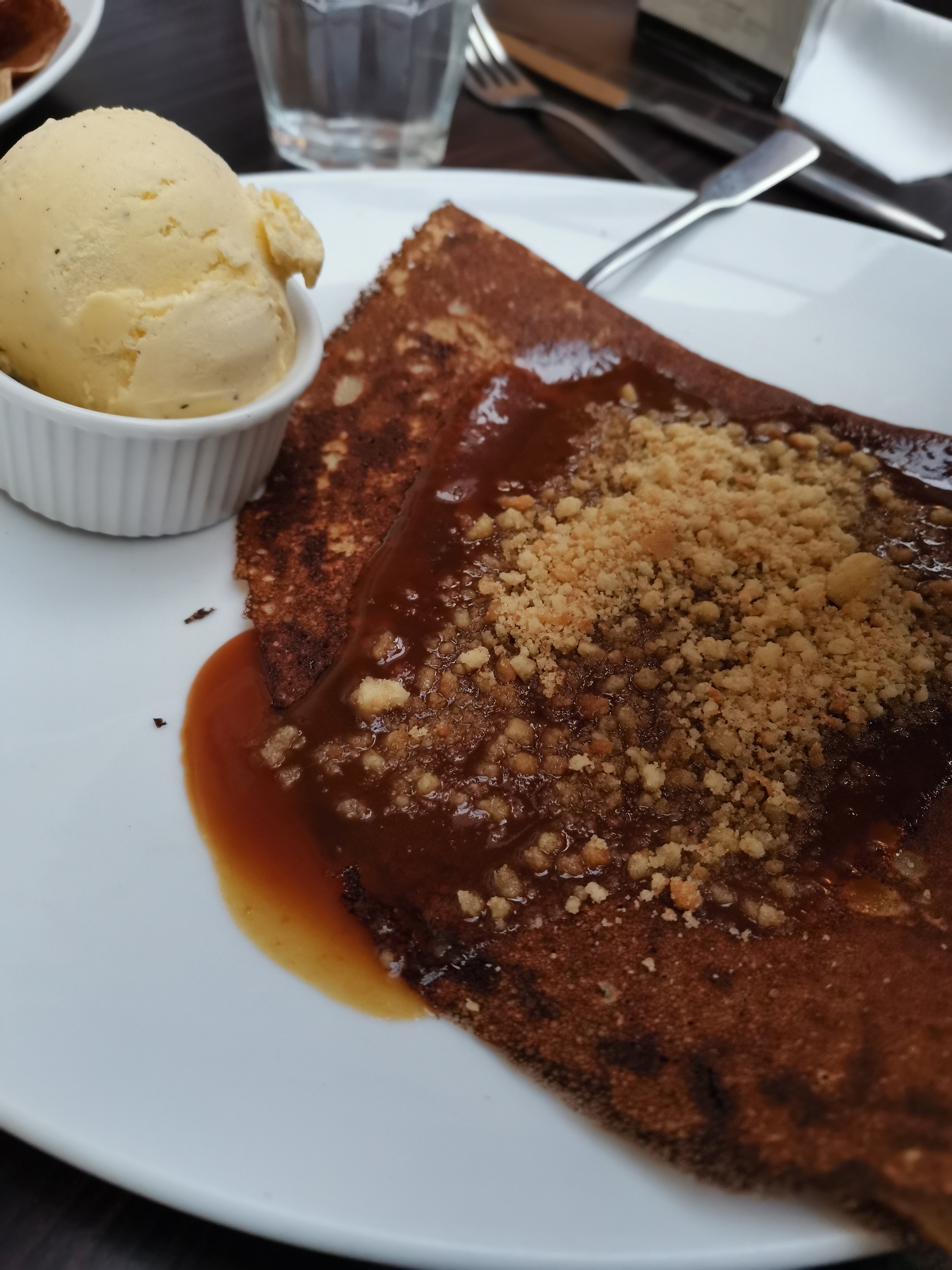Passage en déplacement pro, recommandé par l'hôtel et vraiment très bonne établissement, des crêpes copieuses, bonne et a un prix très correct rien à corriger c'est parfait.