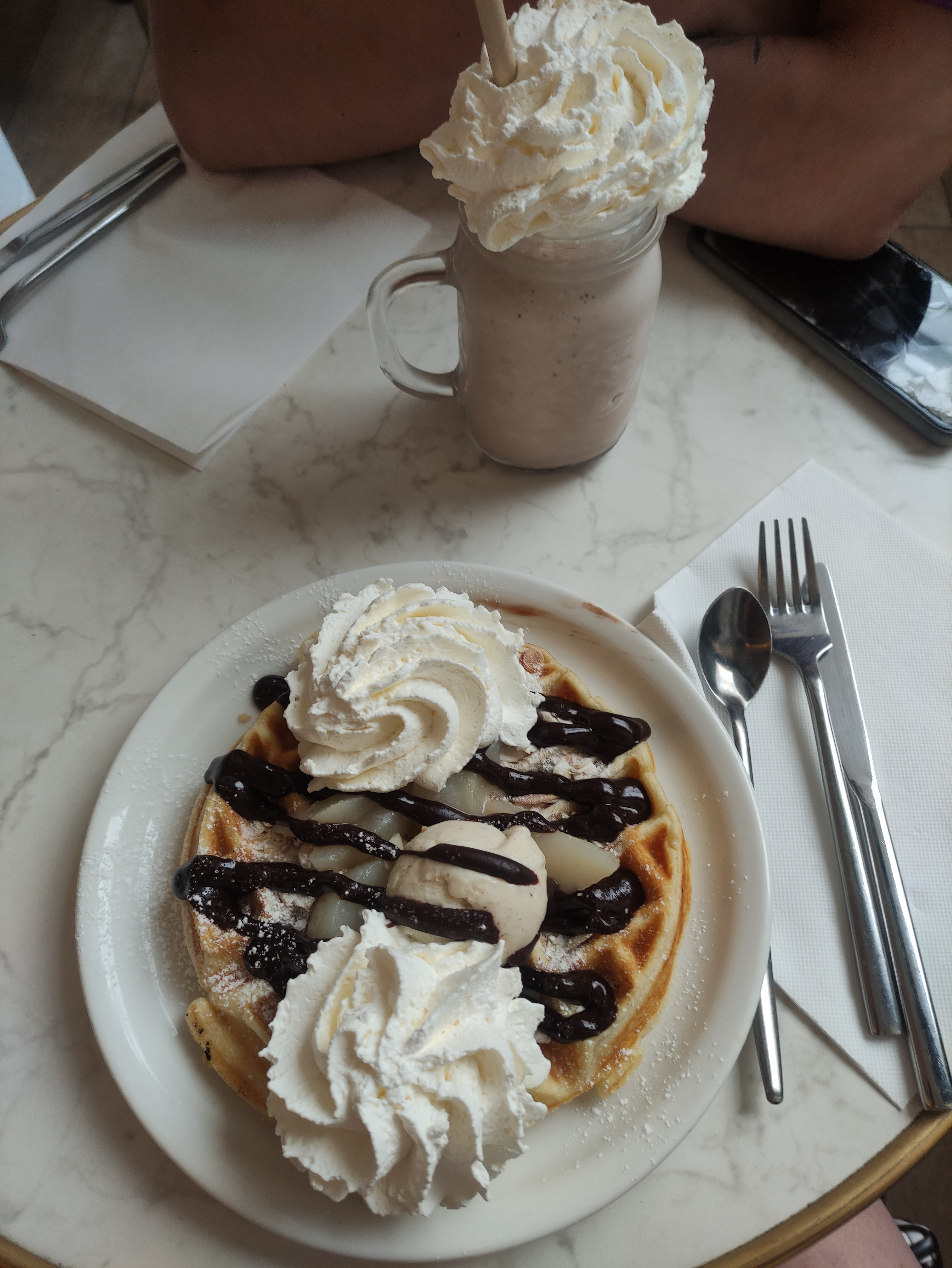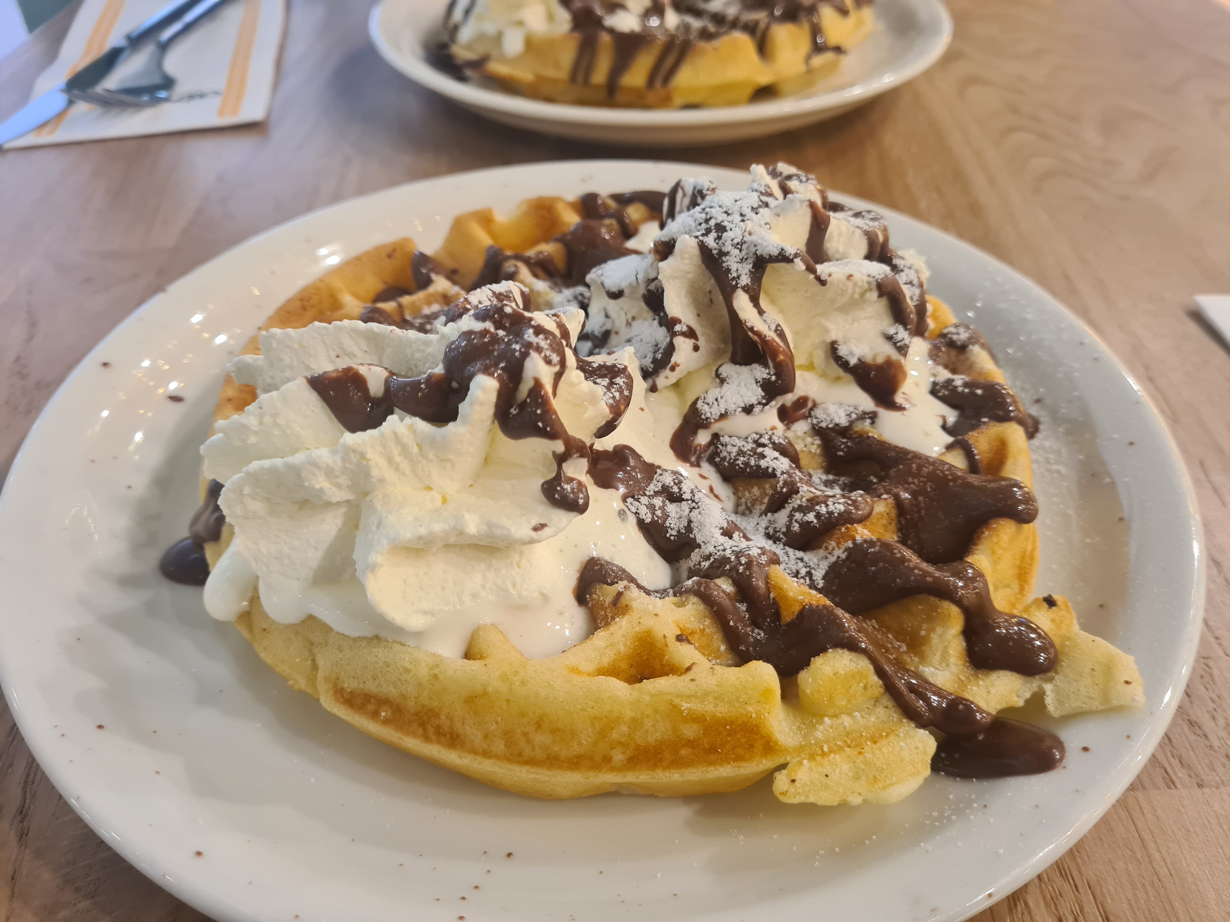 Personnel très agréable......gauffres chocolat chantilly bien copieuses excellentes....café délicieux.....on.y retournera....