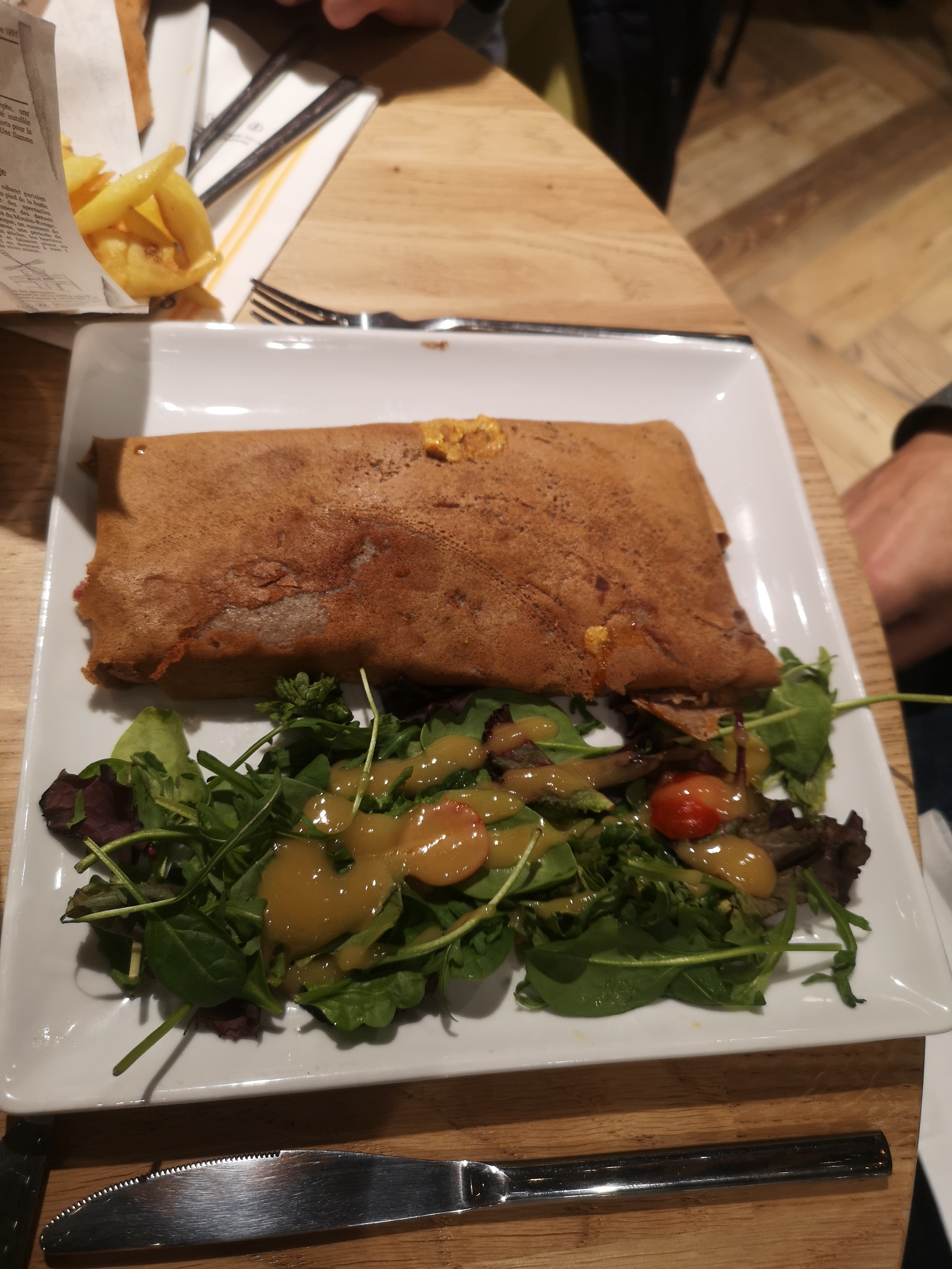nouveauté pour moi, cuisine et cadre très sympathique, crêpe sarrasin très bonne, manque juste un peu de sauce avec les ingrédients, et revoir le cheddar avec les frites (hyper coulant)