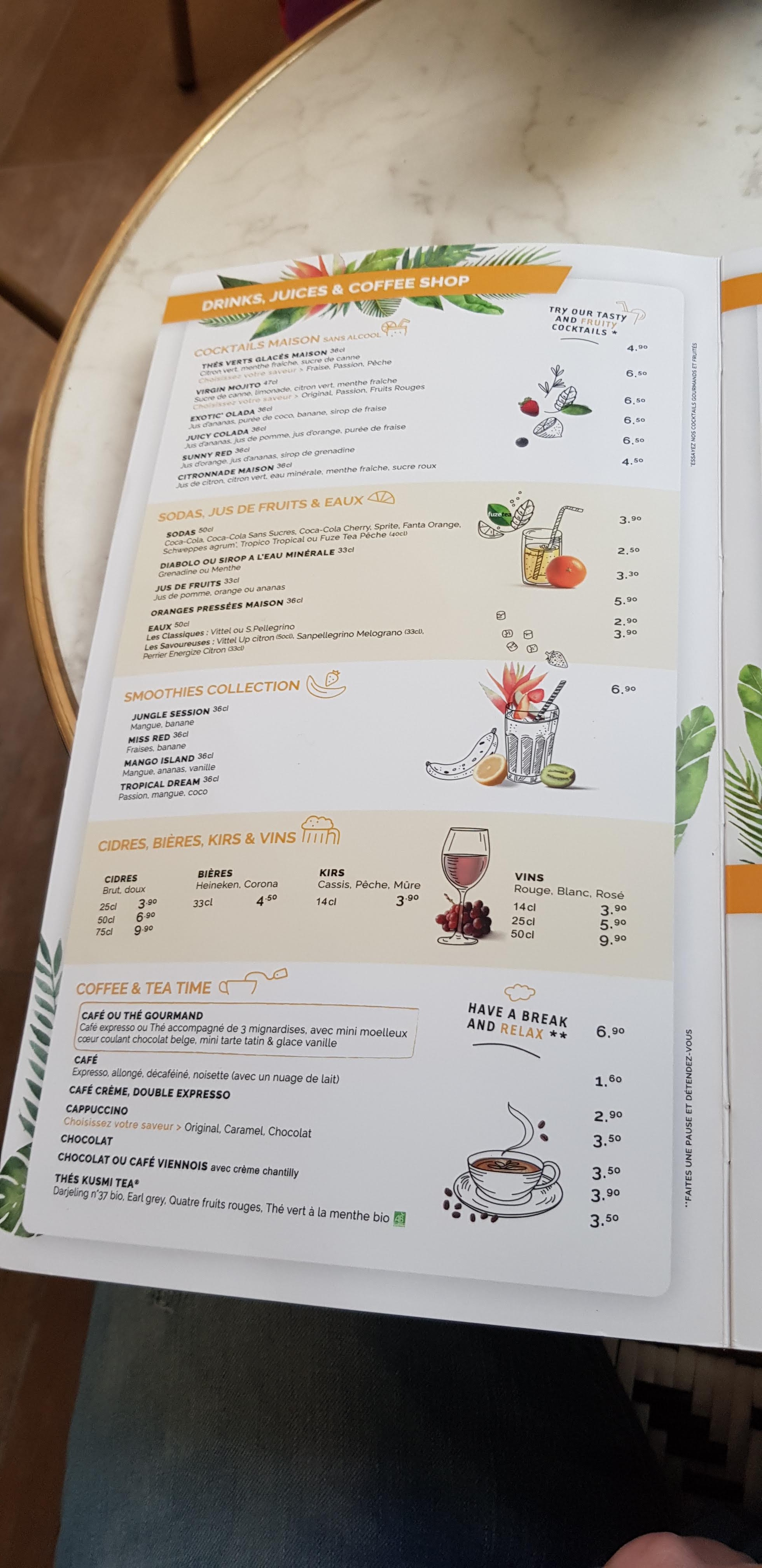 Serveuse nettoie les tables et passent devant sans demander si nous avons pris commande du coup obligé de l’interpeller froidement, ensuite commande d’une gaufre nutella mais presque sans nutella c’est bien parce que ma femme n’a pas voulu que je fasse scandale parce que je peux vous dire que je n’aurais pas été doux. On paie quand même un prix élevé il faut un minimum quand même. Revoyez la qualité de ce que vous servez sinon ça n’ira pas bien loin.