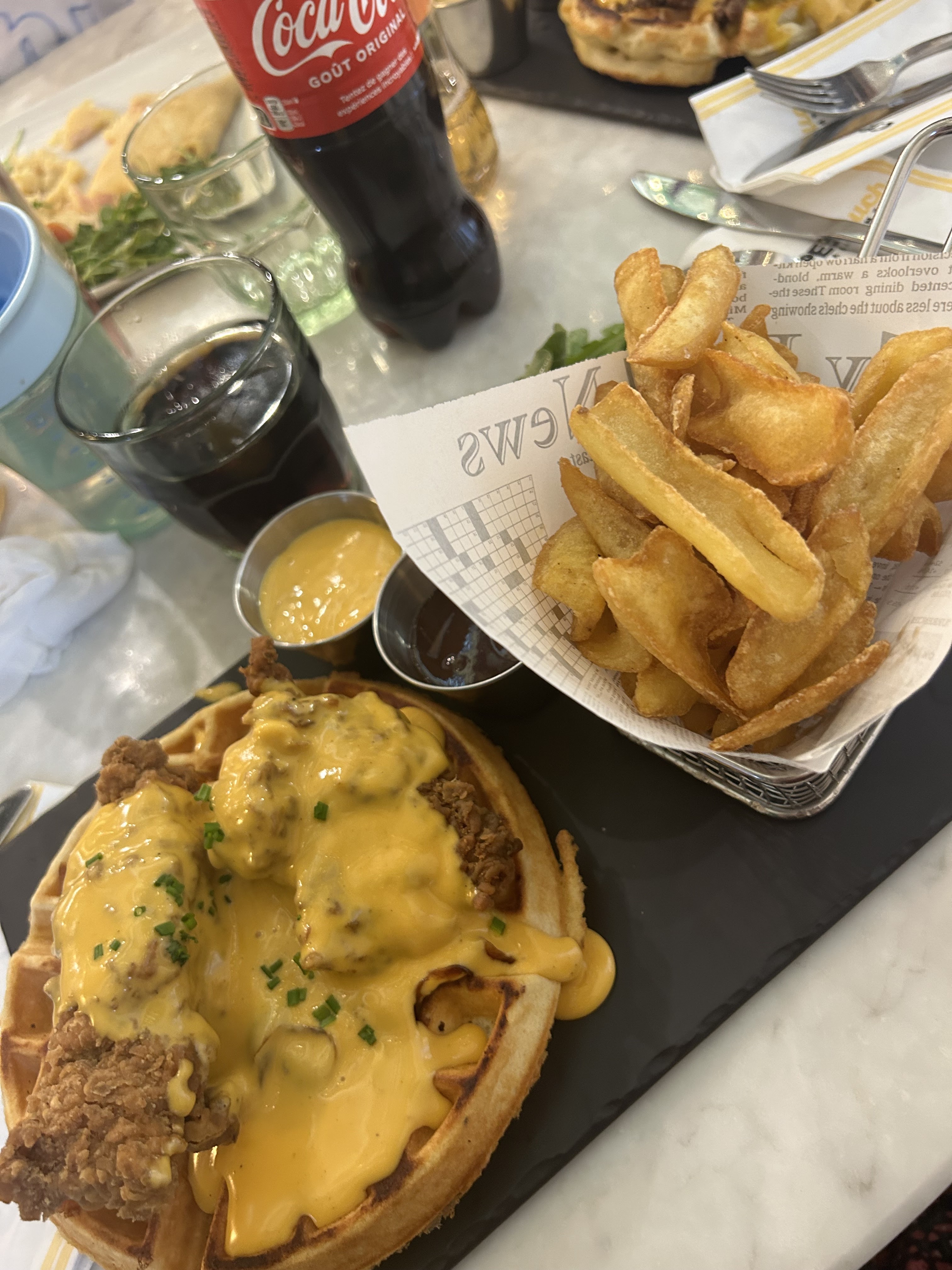 Nouveau concept à tester 😁 !! Service rapide et efficace. Nous avons testé les gauffres qui sont copieuses et délicieuses ! Plus de place dans le ventre pour goûter un dessert 😅 ce sera pour une prochaine fois !🥞🧇 Petit bémol sur le choix des boissons, pas d'alcool proposé... PS : Déco splendide 😍