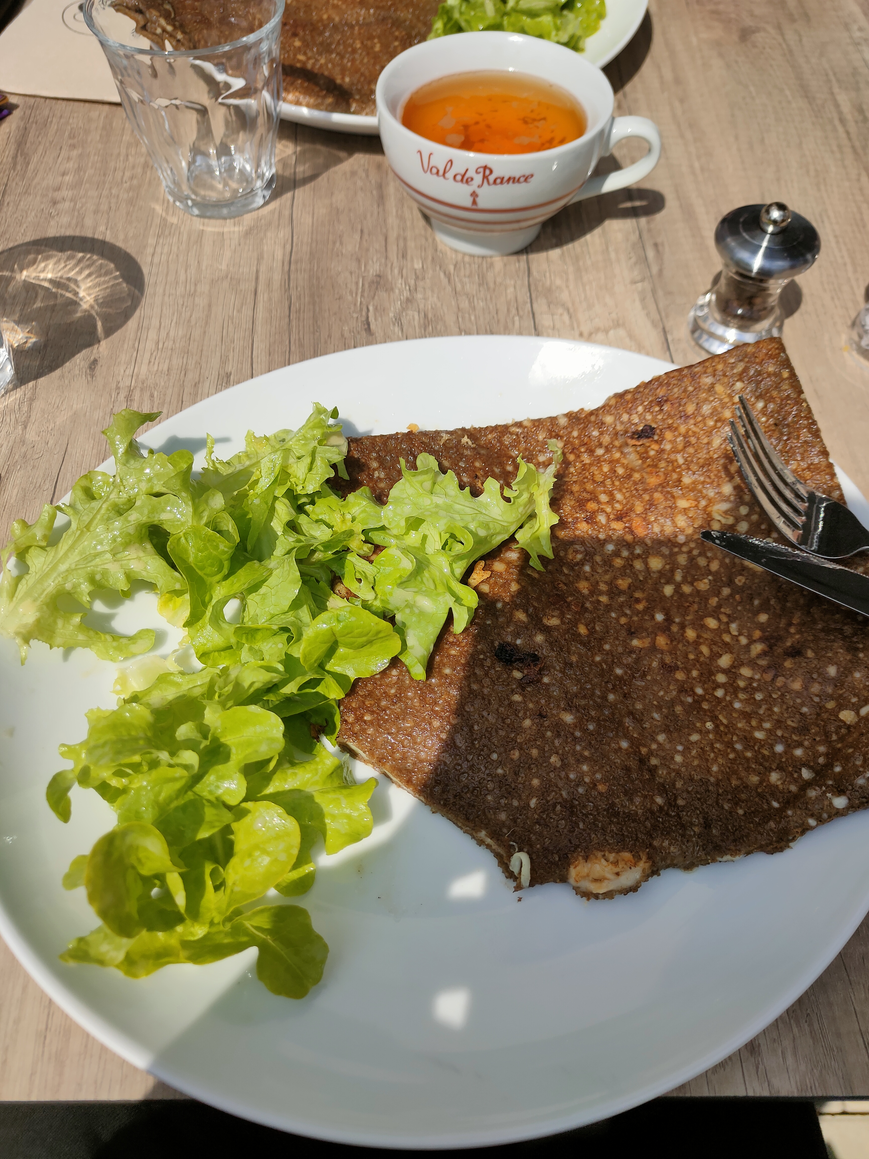 Des grains de sable dans la salade, une galette complète cuite uniformément avec un oeuf au plat posé dessus, et un dessert non mémorable. Le service est souriant et aimable. L'ambiance est quelconque. Ne venez pas pour un moment d'exception, mais un repas de midi entre collègues.