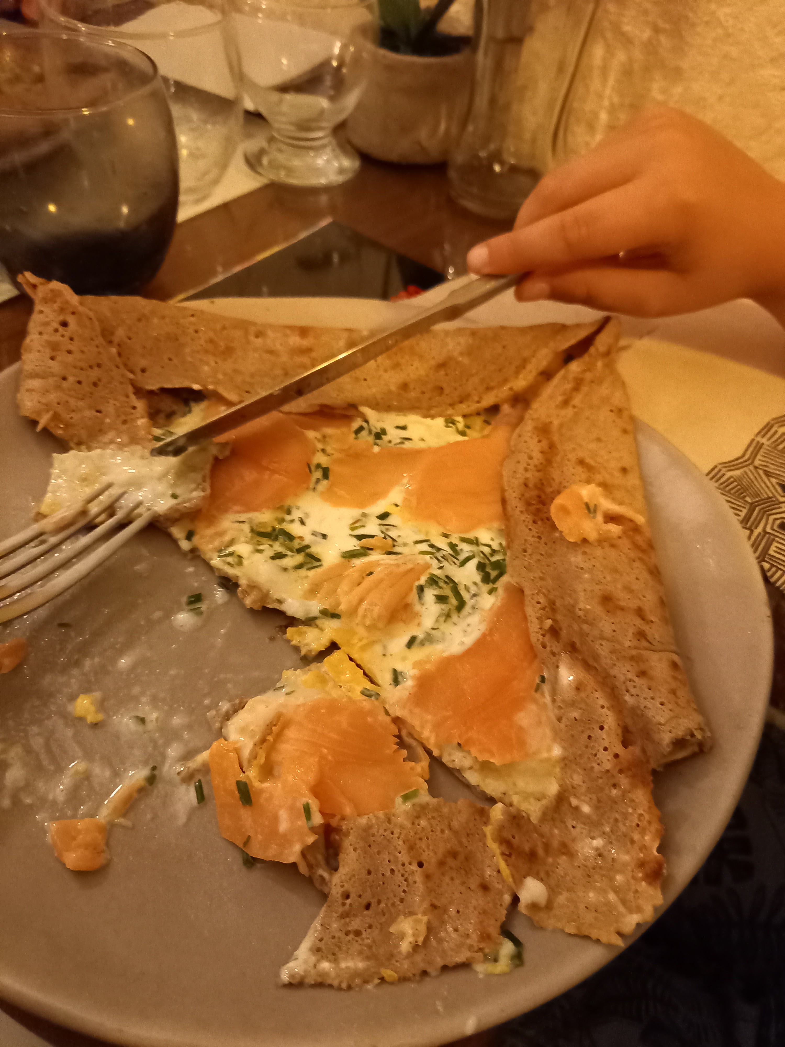Excellent ! L'accueil est chaleureux, le choix de crèpes est grand (une soixantaine de crèpes salées), qui sont délicieuses, avec une pate légère et pleine de saveurs. Le service est impécable. Le seul bémol serait la carte au format numérique, qui n'est pas très lisible sur téléphone. Heureusement le restaurant propose également la carte en version papier si besoin.