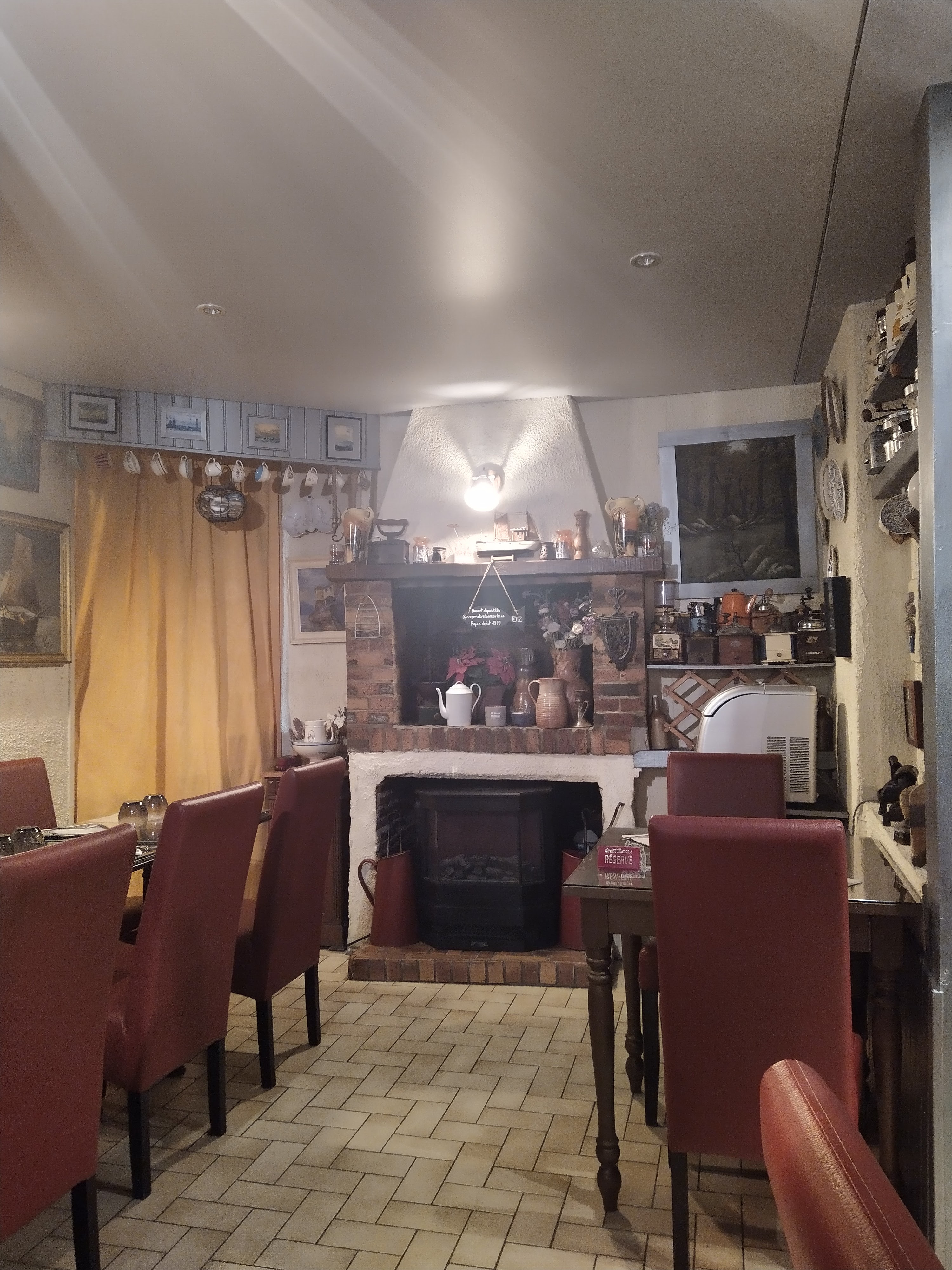 Nous avons passé une très bonne soirée, les galettes sont bonnes et les quantités sont généreuses. L'intérieur du restaurant offre un petit air de brocante bien chaleureux. Le service est très efficace, nous n'avons pas attendu bien que la terrasse ait fait le plein, nous ne pouvons que saluer la performance de notre serveur qui tient les deux espaces à lui seul.