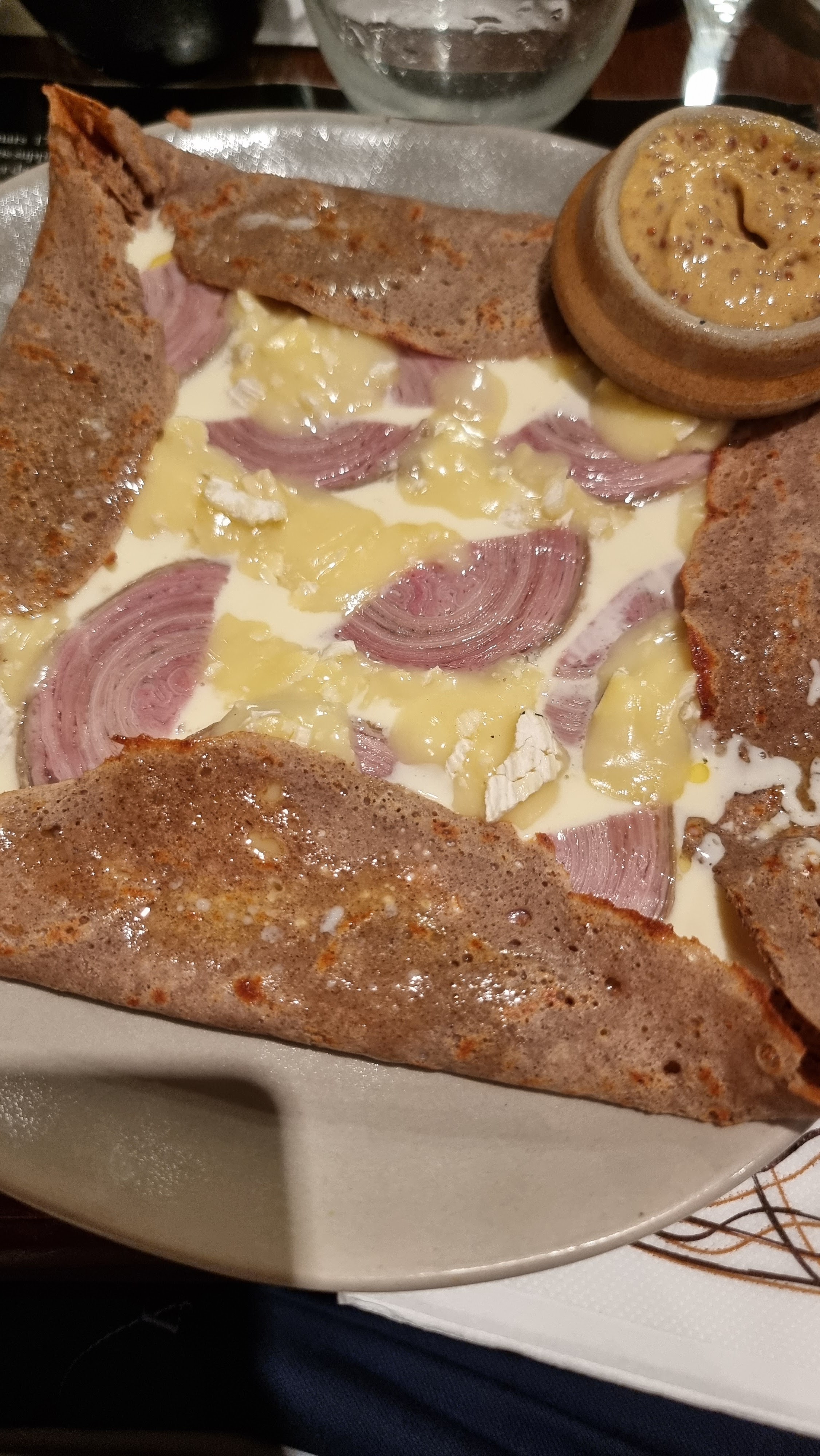 Je me suis régalée du début à la fin, j ai goûté la crêpe de mon conjoint cvetait aussi delicieux. Nous avons pris la normande supl champignon et lui tartiflette supplement oeuf. Dessert crepe carameo suplement glace au rhum .. un pure delice. Le serveur adorable et l apero kir parfait...super moment franchement