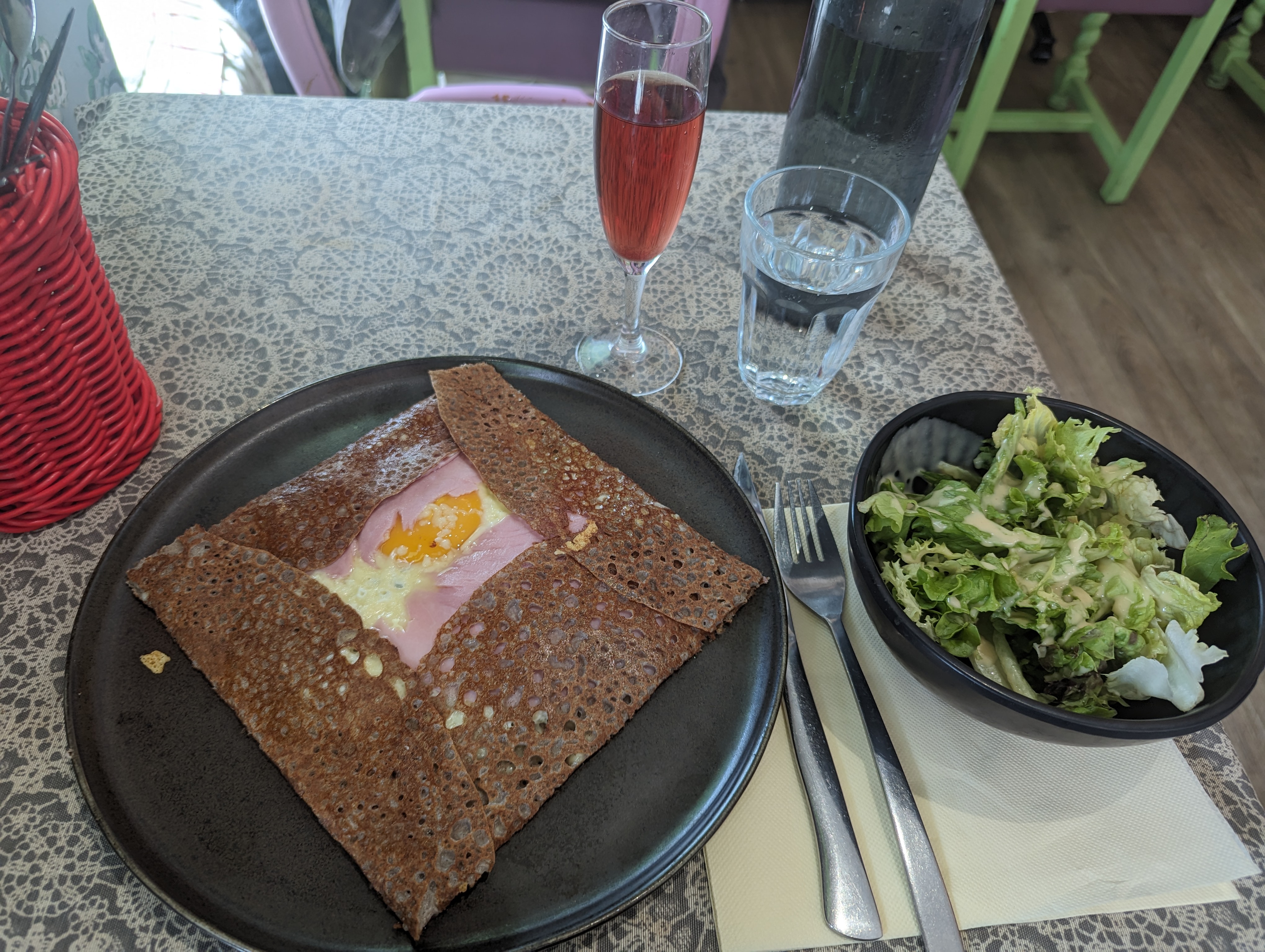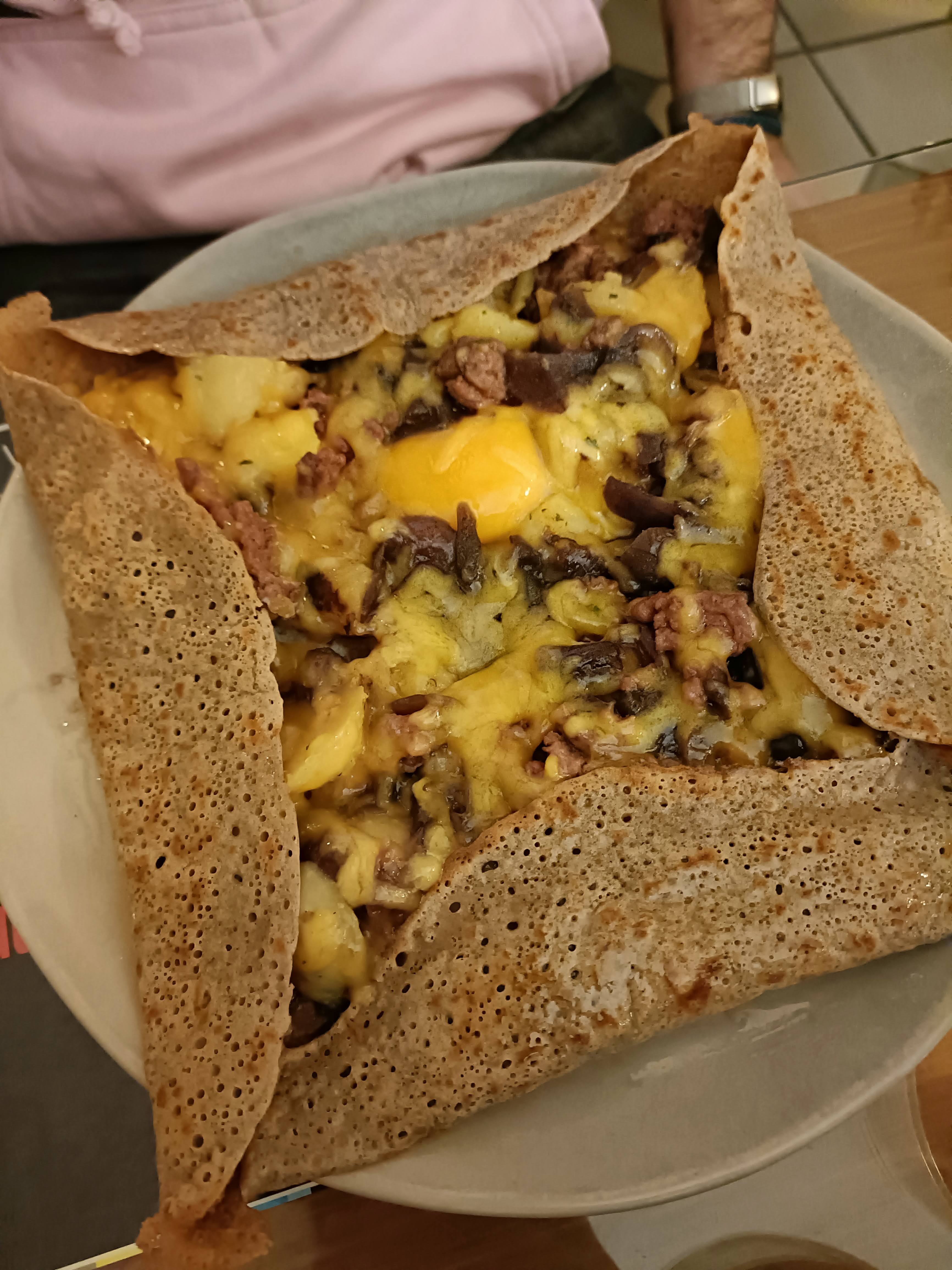 Galette délicieuse, garnie et servie bien chaude. Une petite déception pour le sucré plus classique mais ça reste très bon.