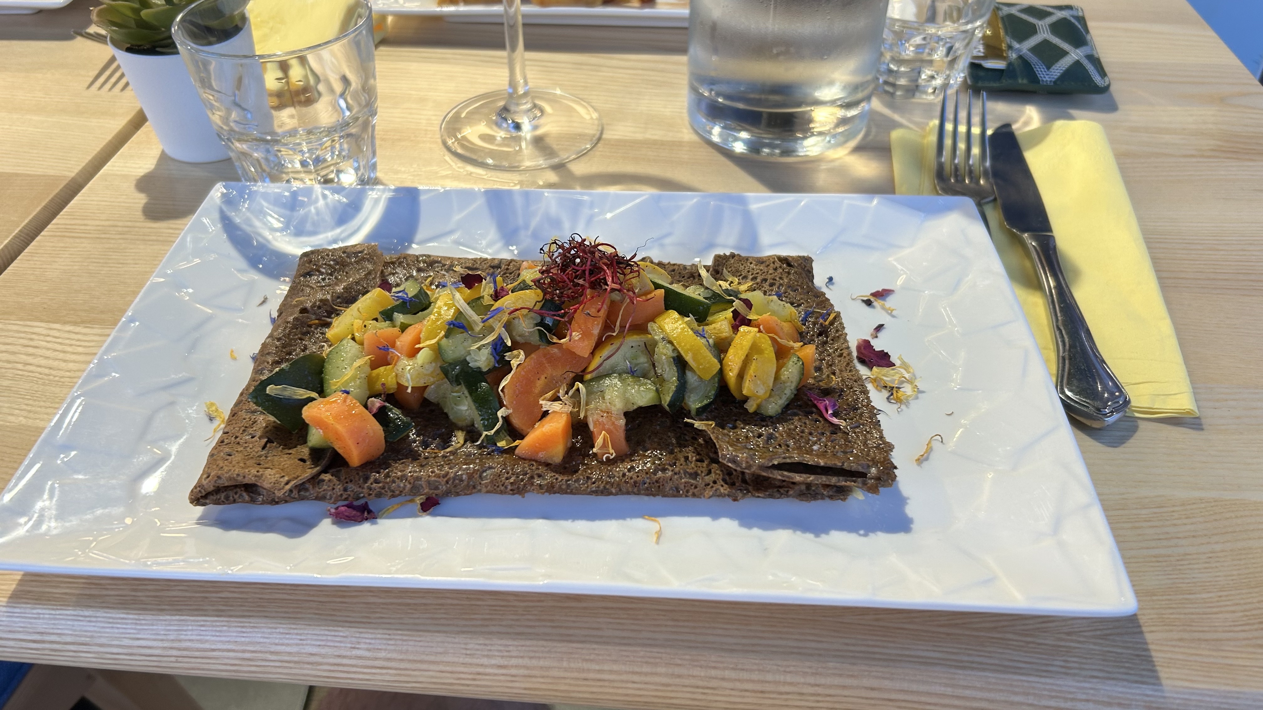 Une expérience INCROYABLE ! Des plats à tomber par terre (Galette La saumon et dessert avec la crêpe Pays d'auge). Des plats de très grande qualité et une grande qualité de service. Ce ne sera pas la dernière fois que je prendrai un coup de soleil 🤩🤩 Un grand merci !